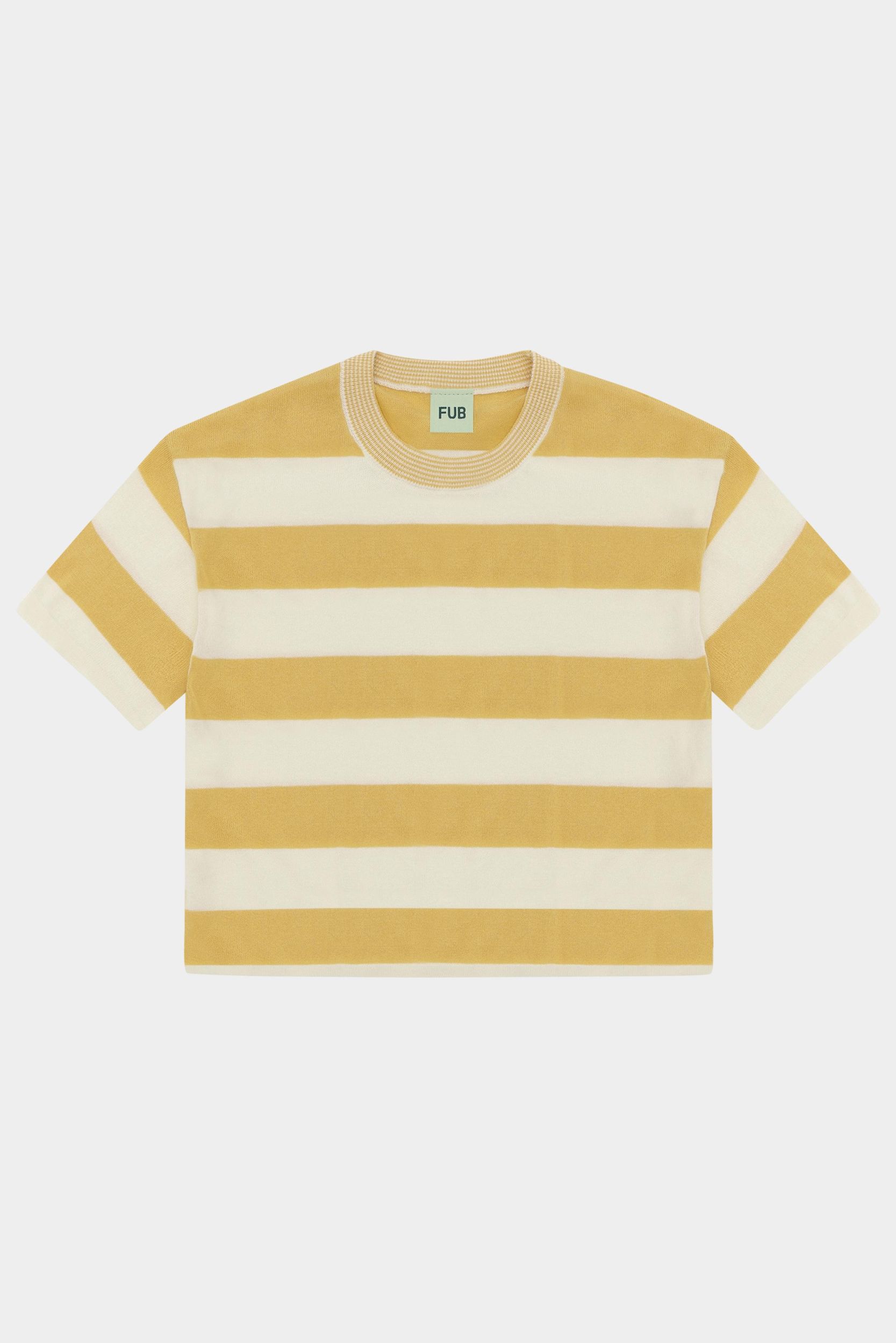 Denne kortærmede t-shirt er strikket i let single jersey og er designet med rund hals, ribstrikket halskant med smalle striber og ombukkede kanter. T-shirten har en let oversize pasform og brede striber. Den er lavet af økologisk bomuld.