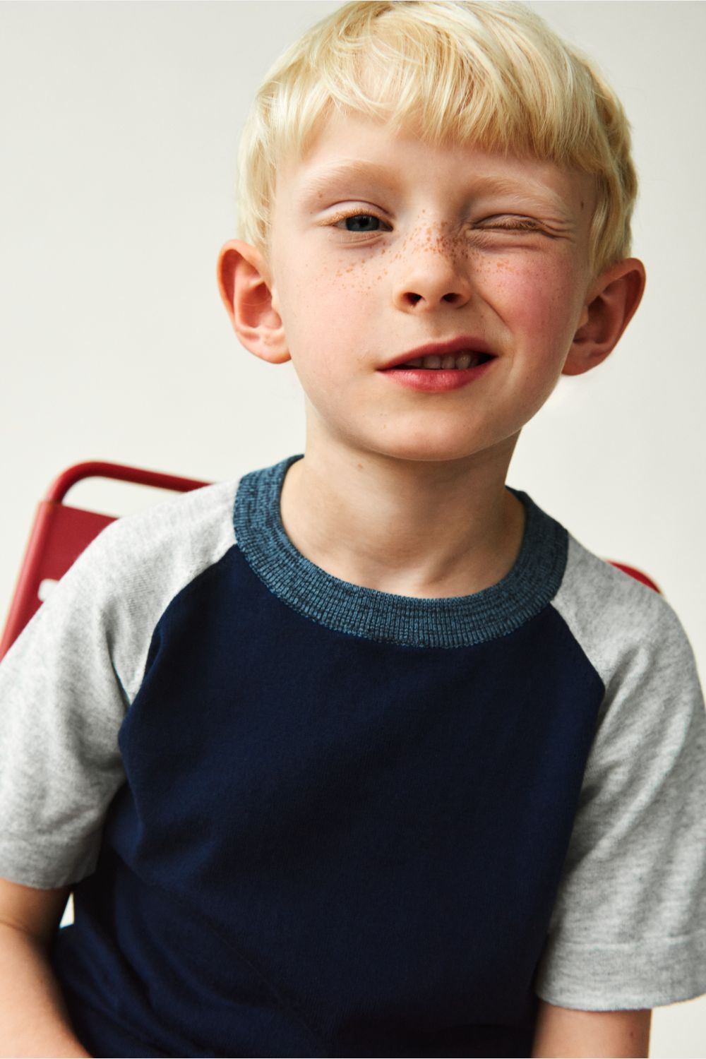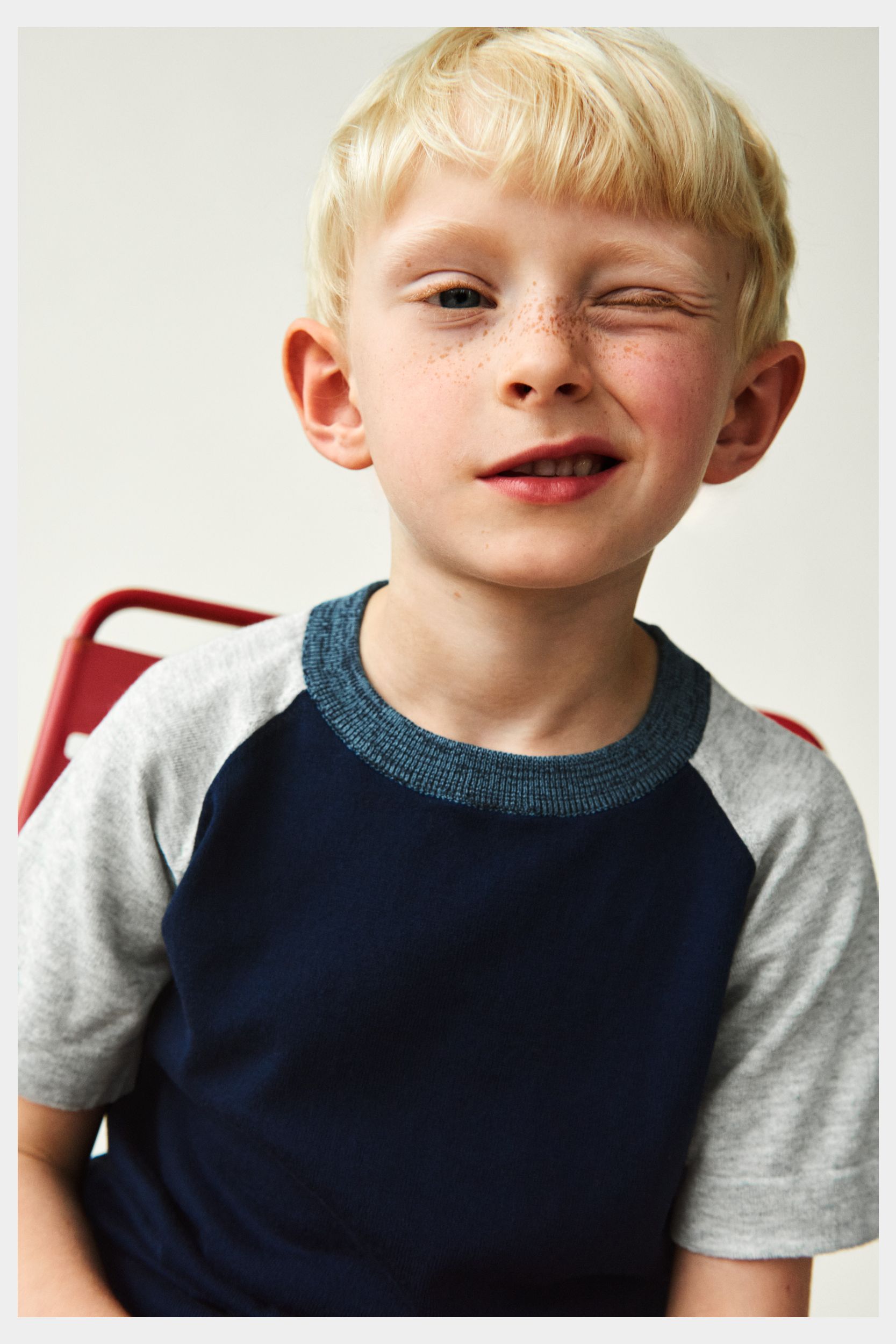 Denne T-shirt er strikket i let single jersey og har en let løs pasform. Den er designet med rund hals med en melangefarvet ribkant, ombukkede kanter og kontrastfarvede raglanærmer. Lavet af økologisk bomuld.