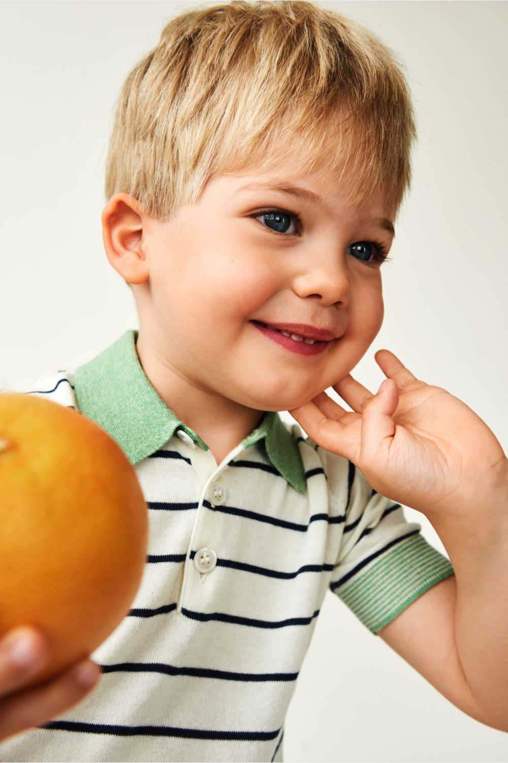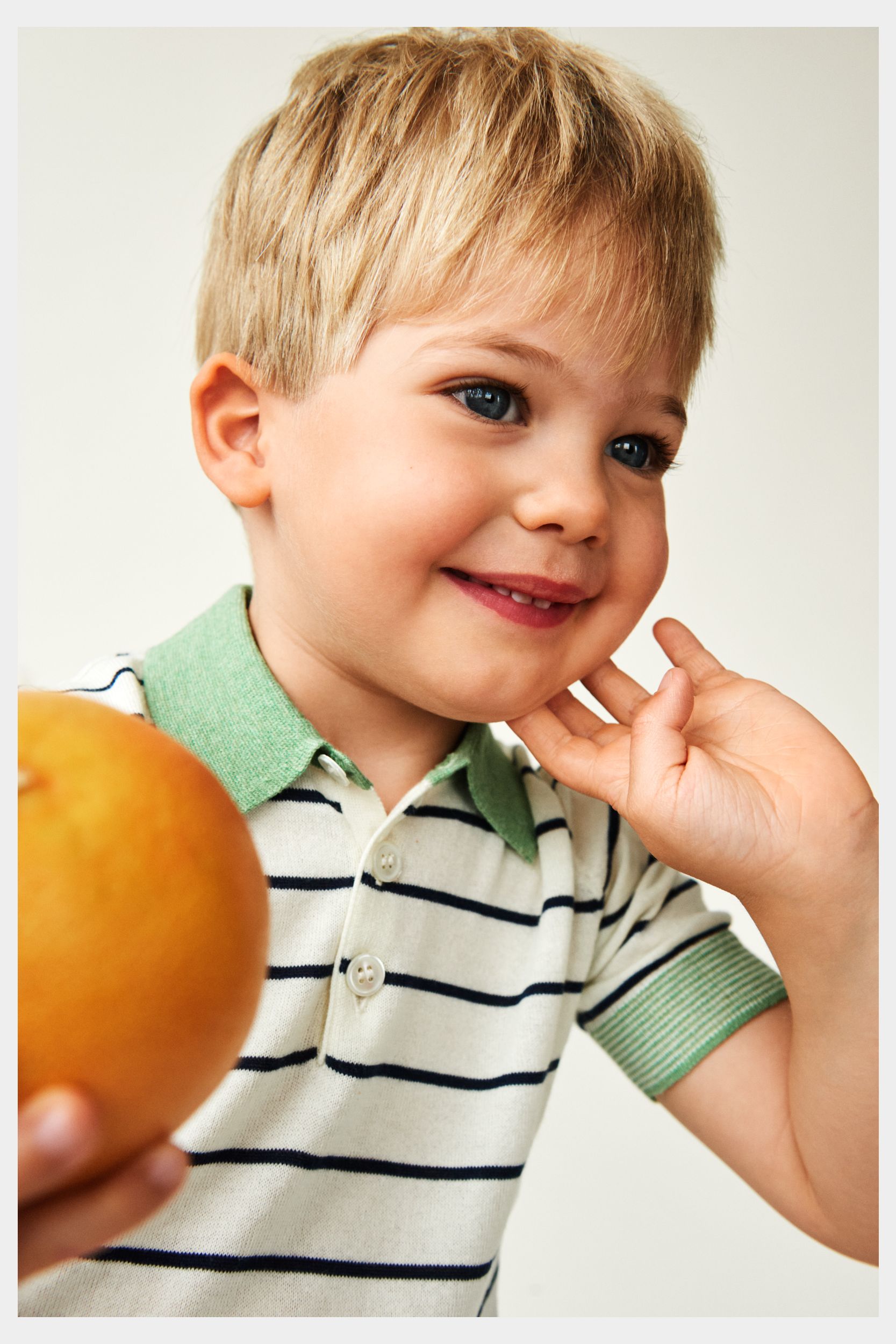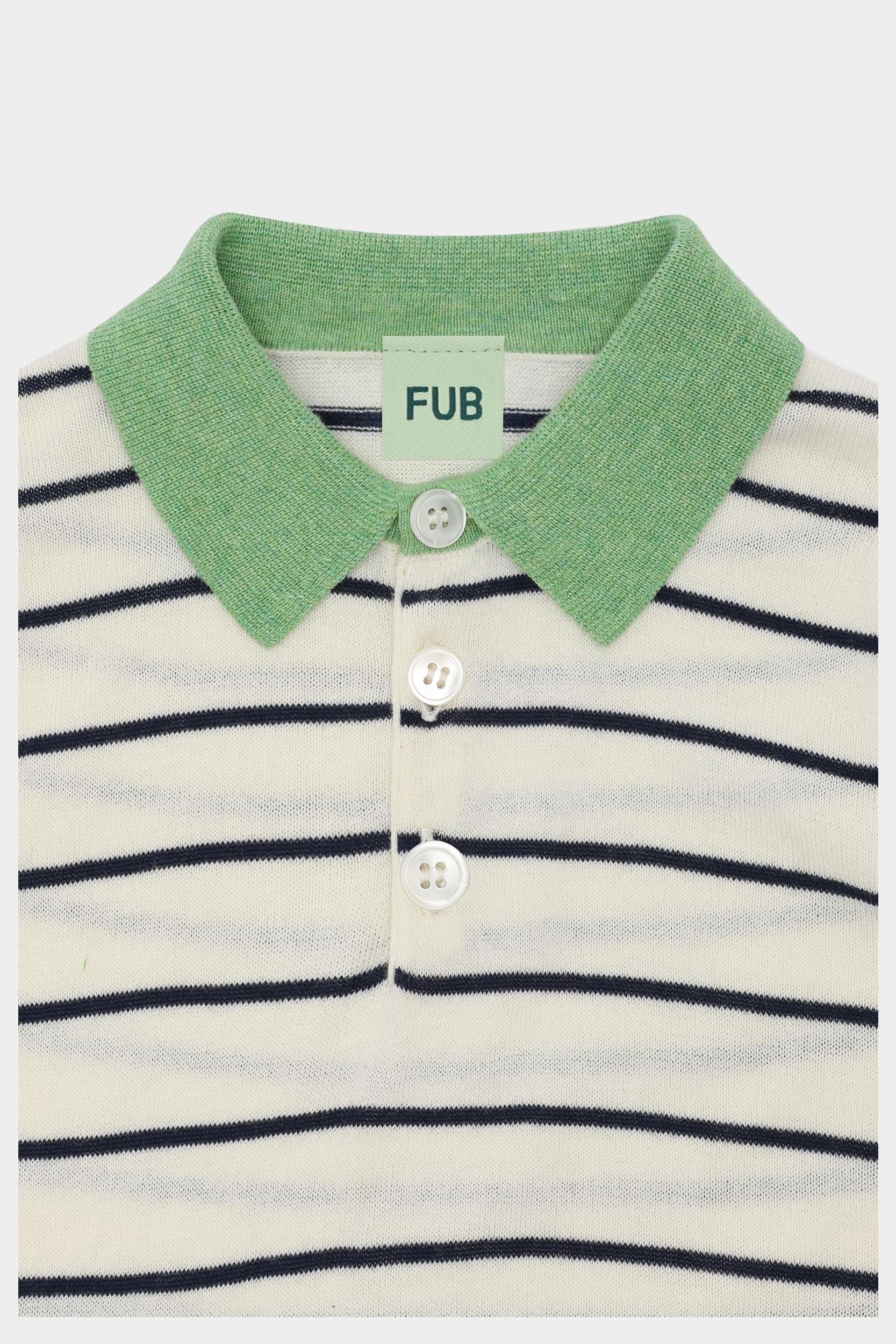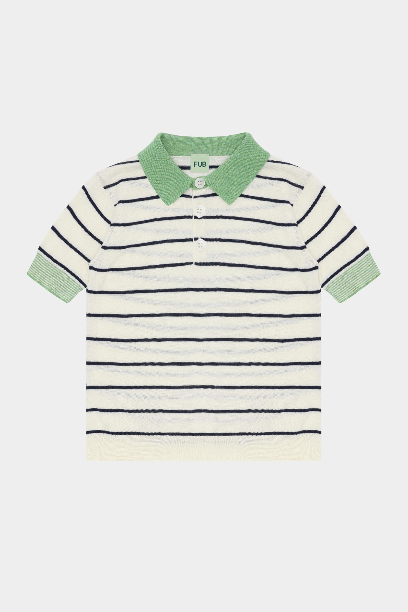 Denne kortærmede polo er strikket i blød single jersey med striber. Den er designet med korte ærmer med kontrastfarvet kant, en lille kontrastfarvet krave og perlemorsknapper. Poloen har en almindelig pasform og er lavet af økologisk bomuld.