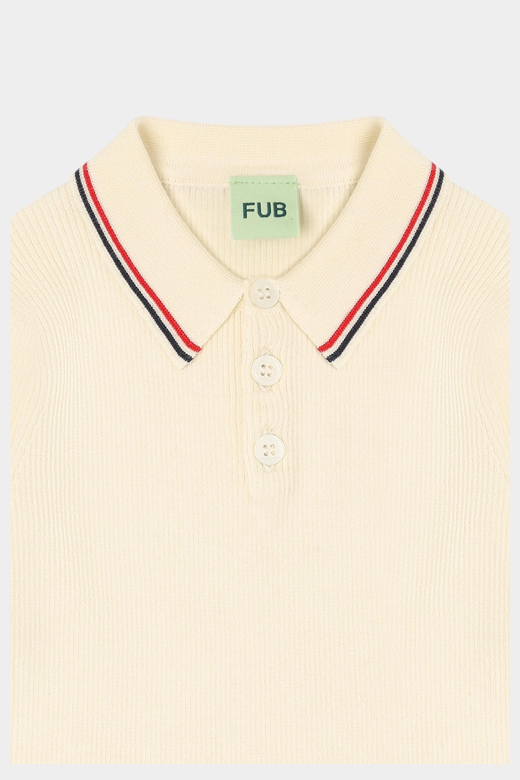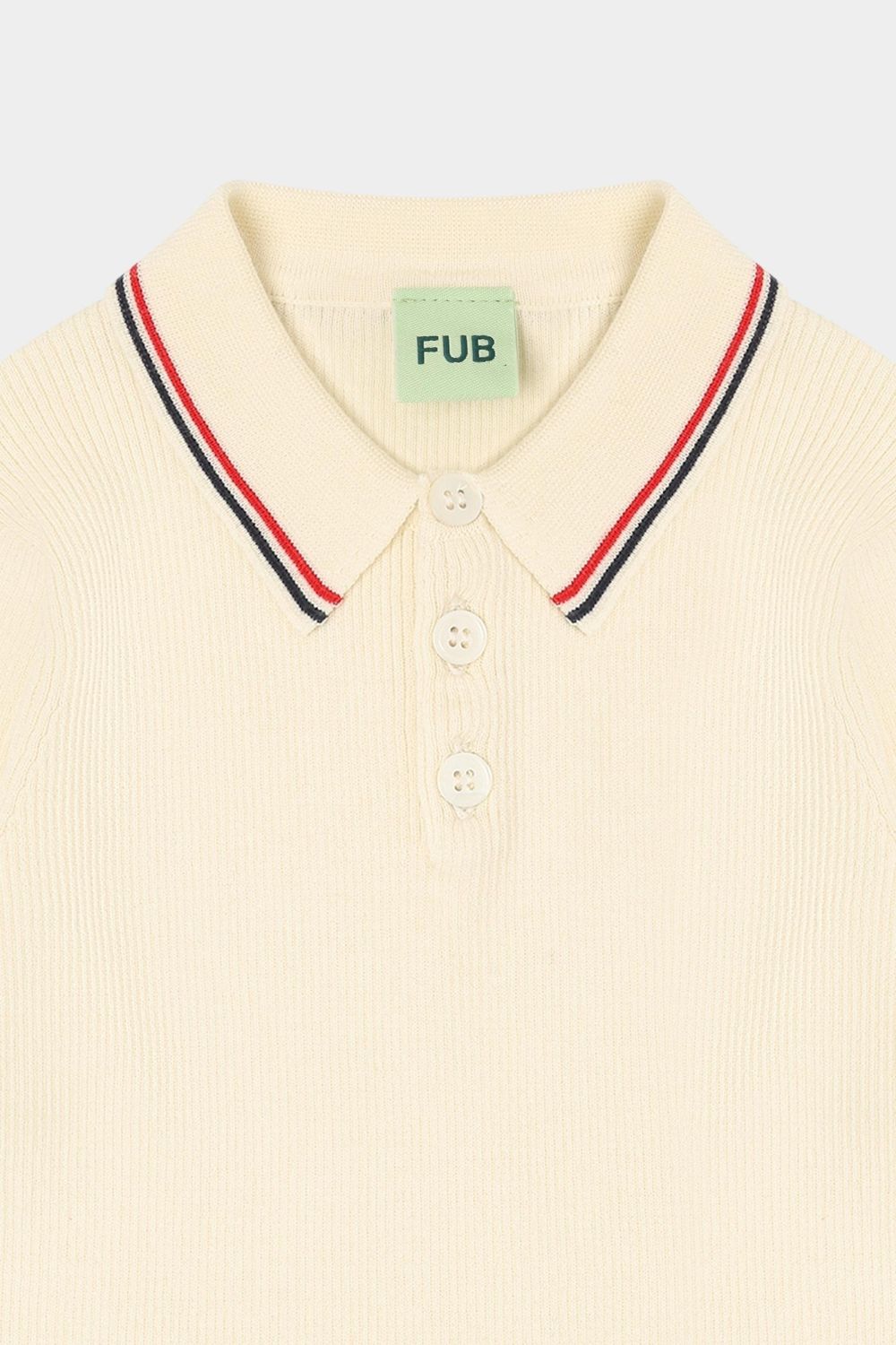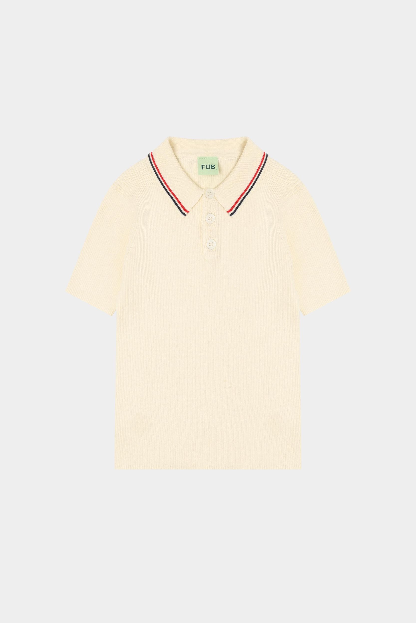 Denne kortærmede polo i økologisk bomuld er strikket i en klassisk ribstruktur. Den er designet med en lille krave og knaplukning med perlemorsknapper. Poloen har en lige pasform og fås i en ensfarvet variant og en variant med kontrastfarvet strib på kraven.