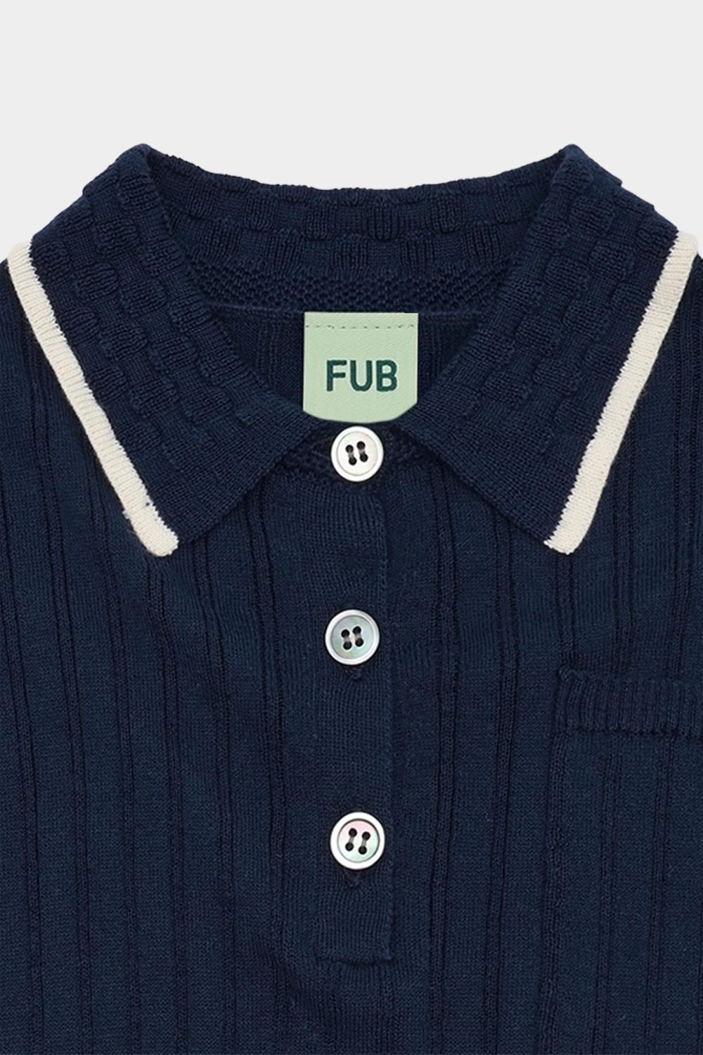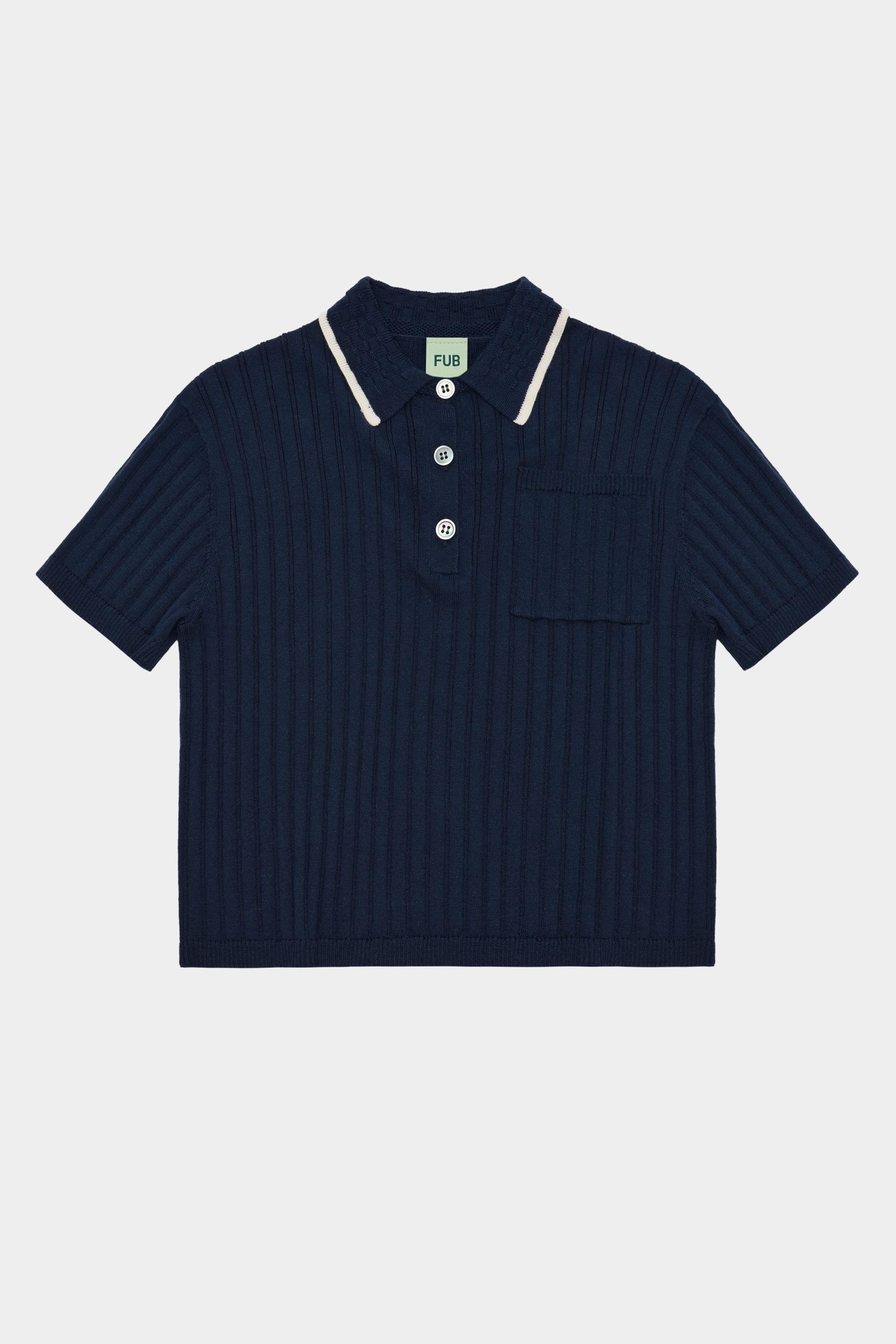 Denne kortærmede polo er strikket i ribstruktur og er designet med en lille krave i strikket ternstruktur med kontrastfarvet kant, perlemorsknapper og smalle ribkanter. Poloen har en let oversize pasform og er lavet af økologisk bomuld.