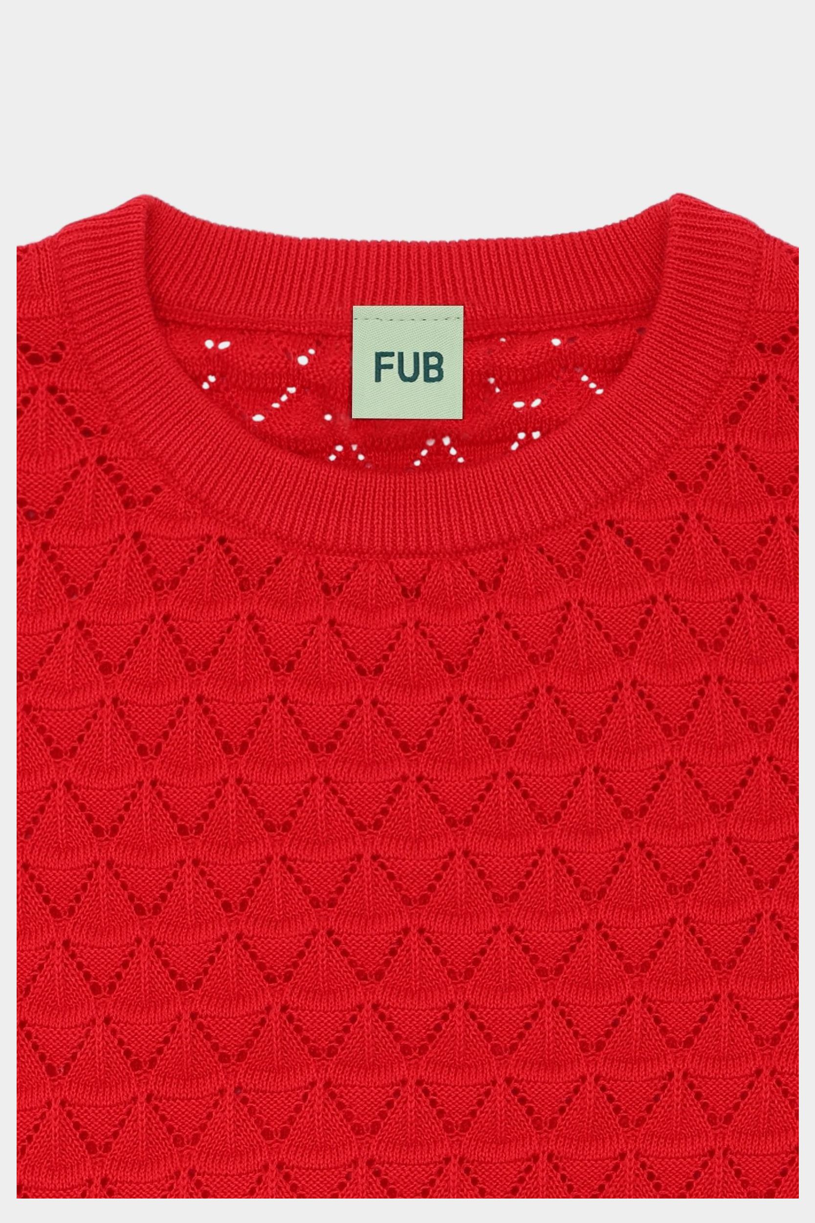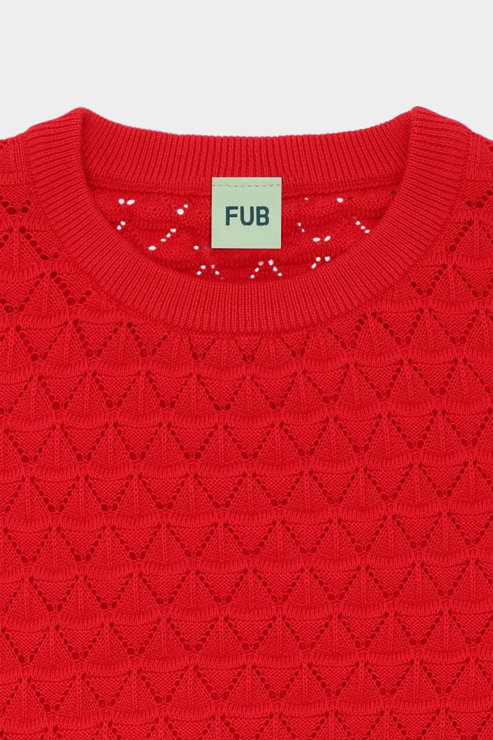 Denne kortærmede t-shirt er strikket i et dekorativt pointellemønster. Den er designet med flæsekanter og rund ribstrikket halskant. T-shirten har en lige pasform og er lavet af økologisk bomuld. Den fås i en stribet og en ensfarvet variant.