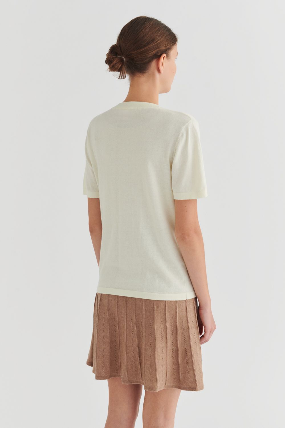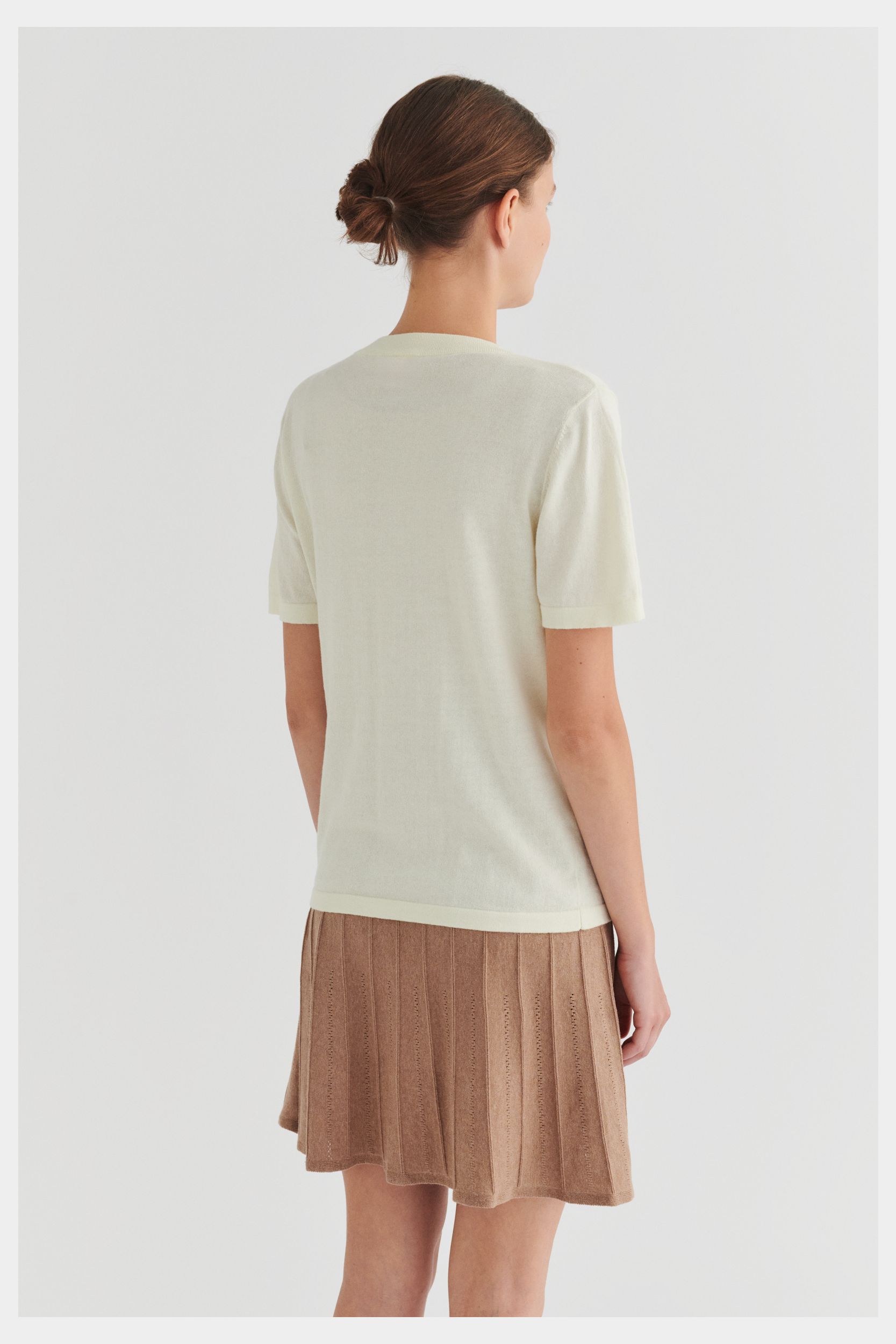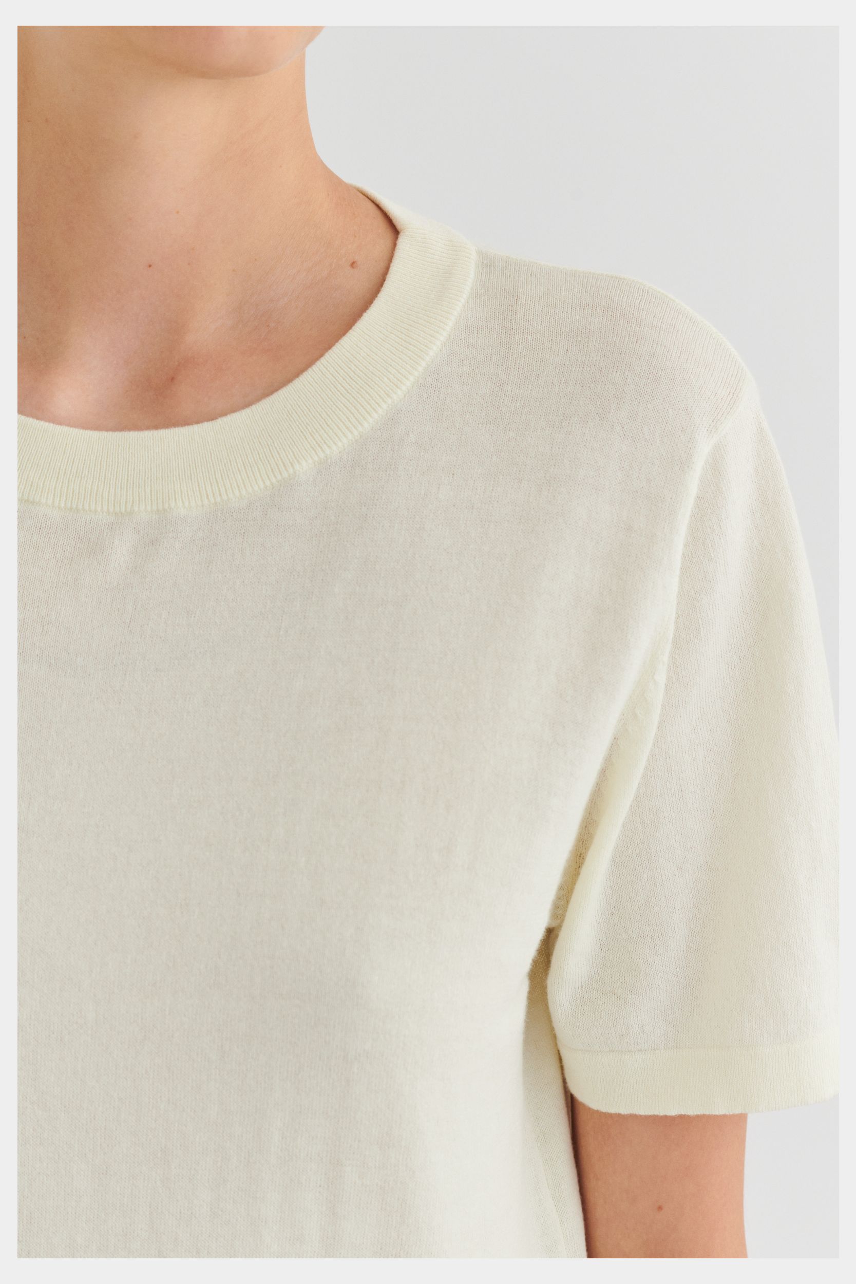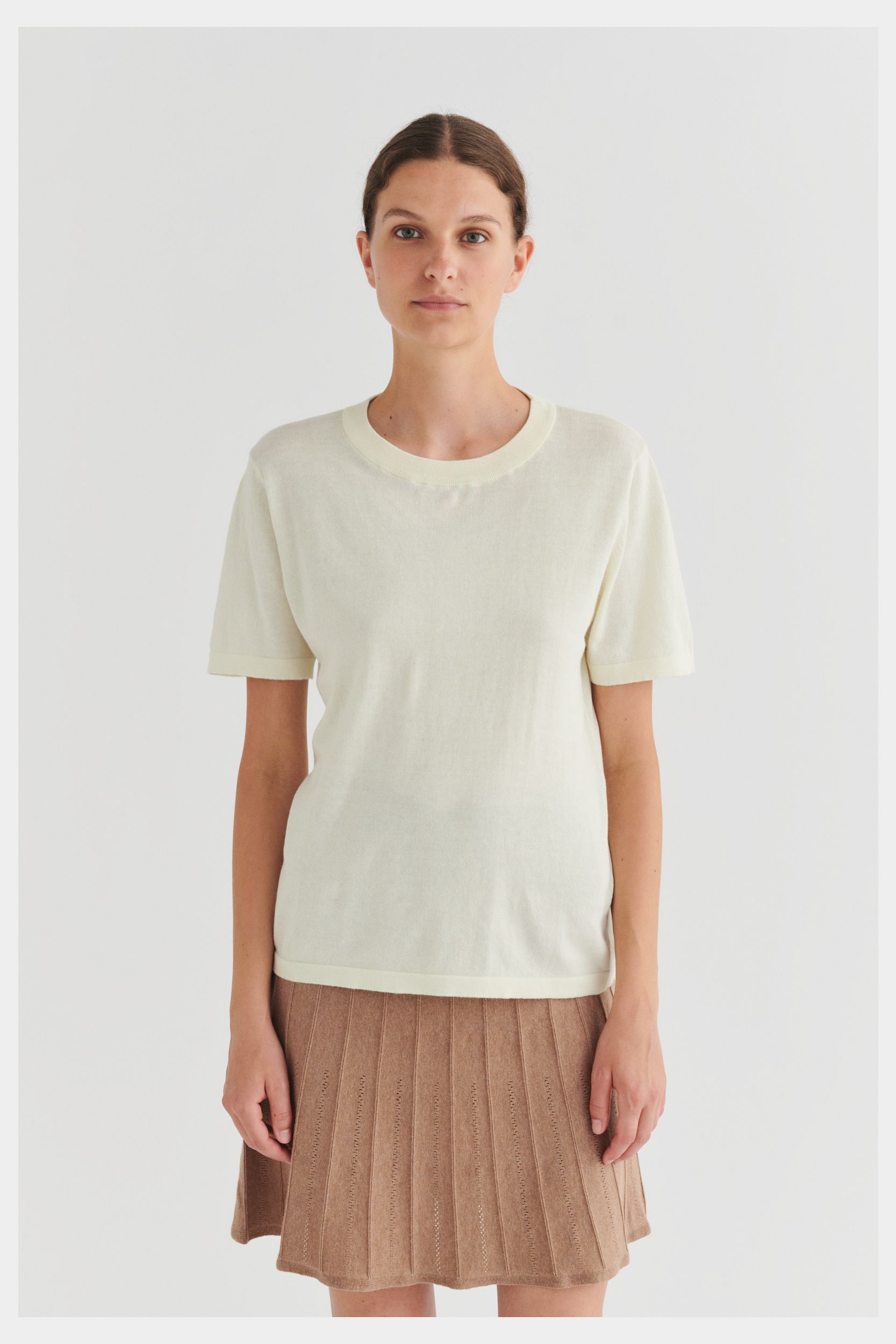 Denne klassiske T-shirt er strikket i en tynd single jersey-struktur og har en rummelig pasform. Den har ombukkede kanter, en ribstrikket halskant og er lavet i økologisk bomuld. T-shirten fås i ensfarvet og med striber.