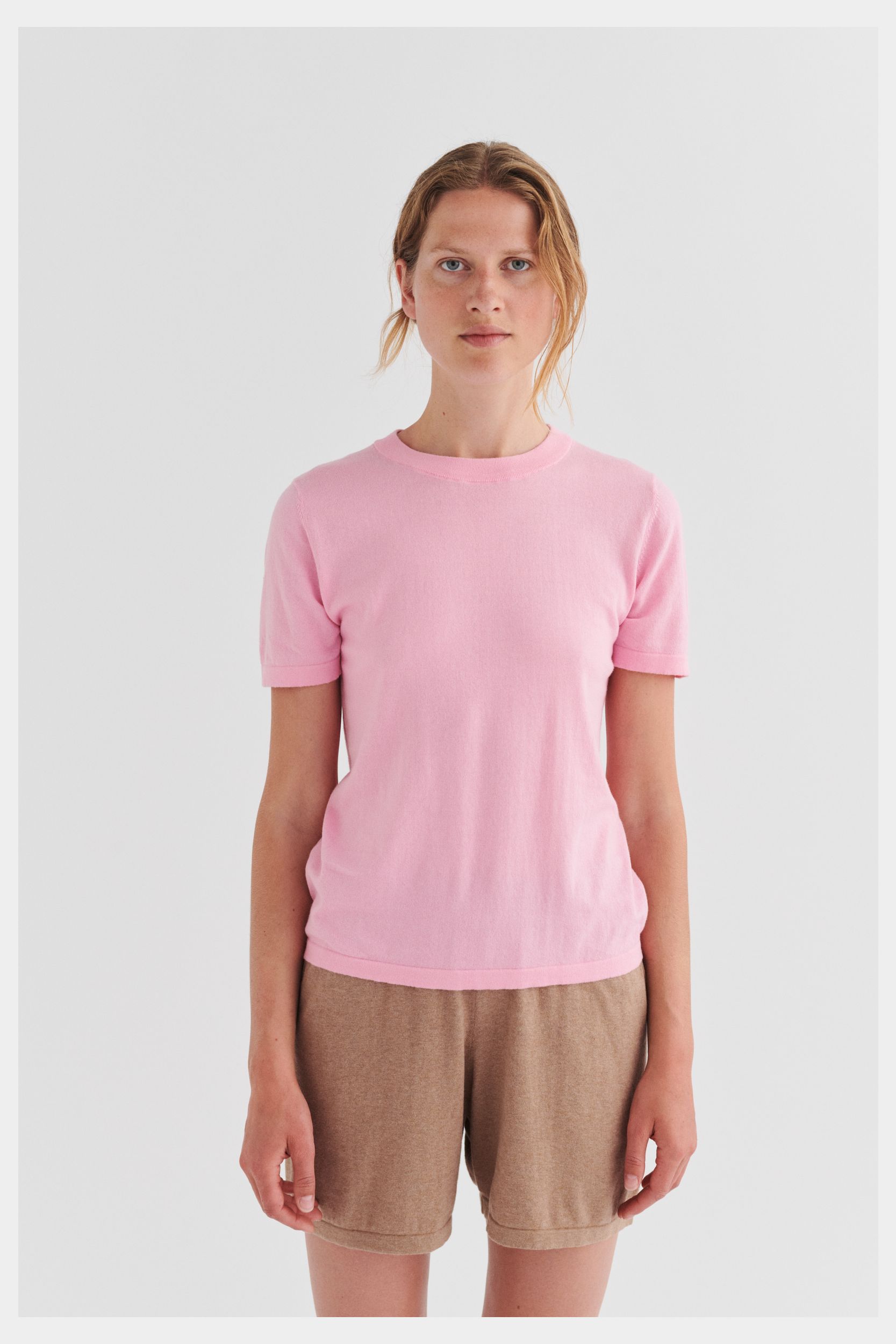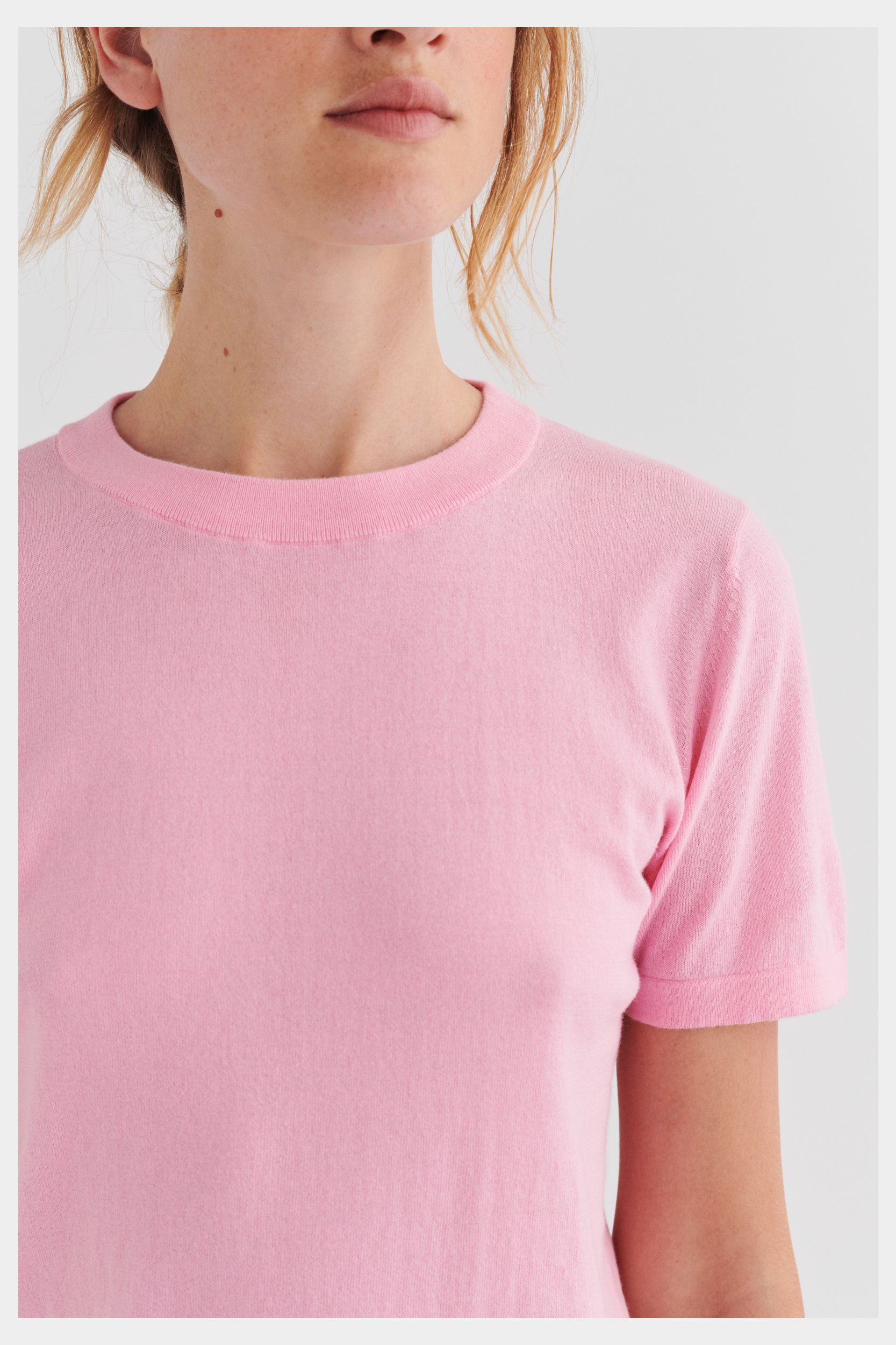 Denne klassiske T-shirt er strikket i en tynd single jersey-struktur og har en rummelig pasform. Den har ombukkede kanter, en ribstrikket halskant og er lavet i økologisk bomuld. T-shirten fås i ensfarvet og med striber.