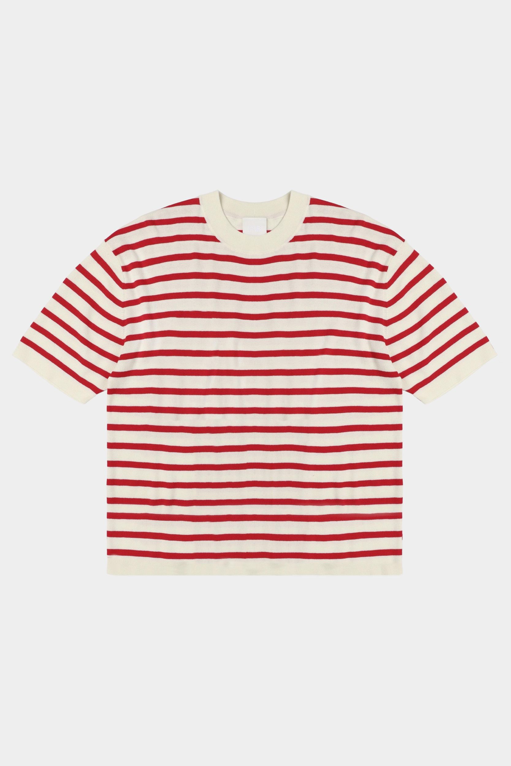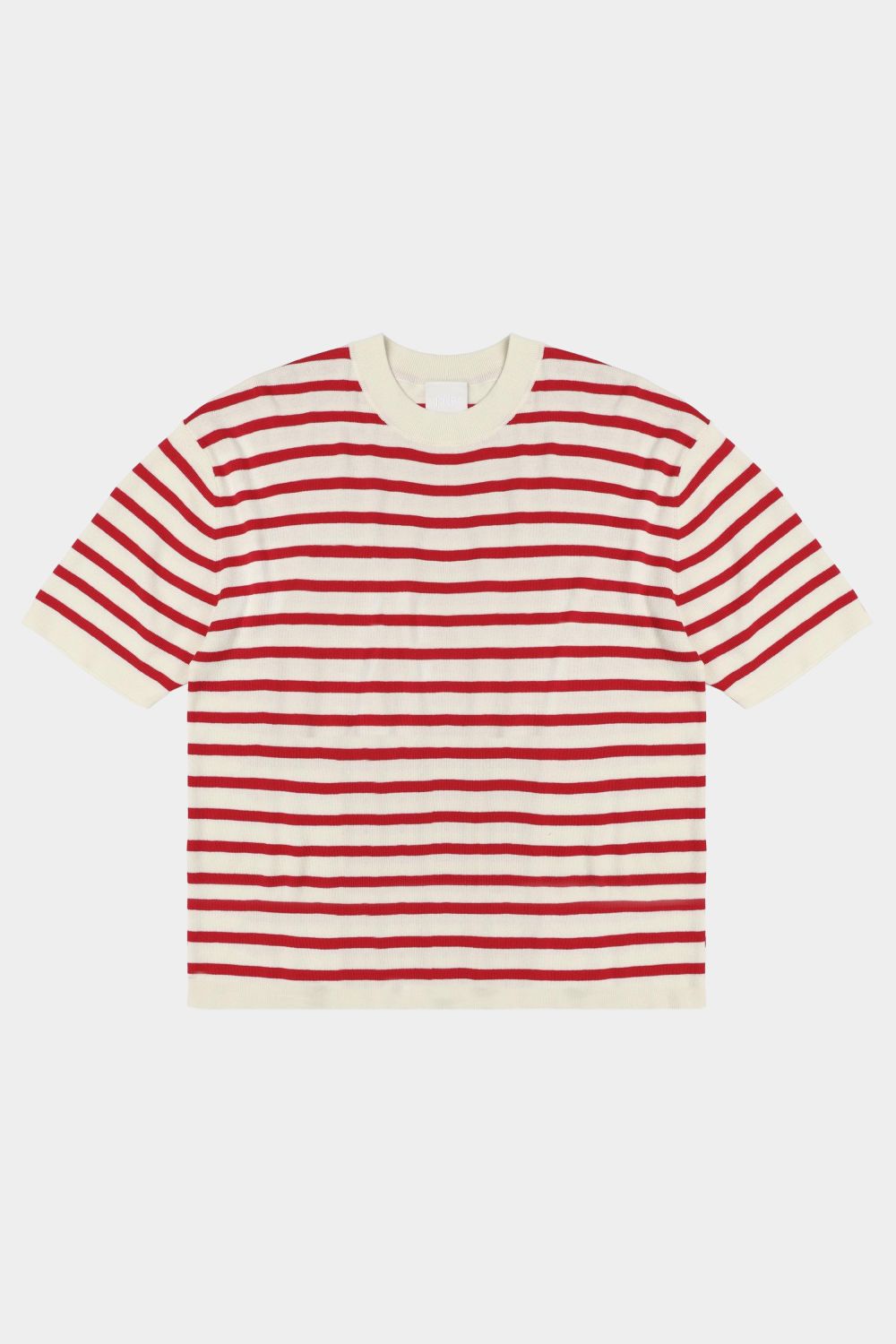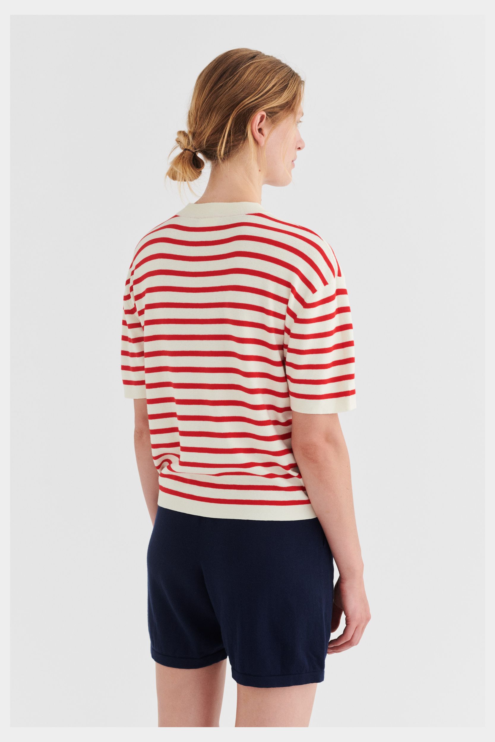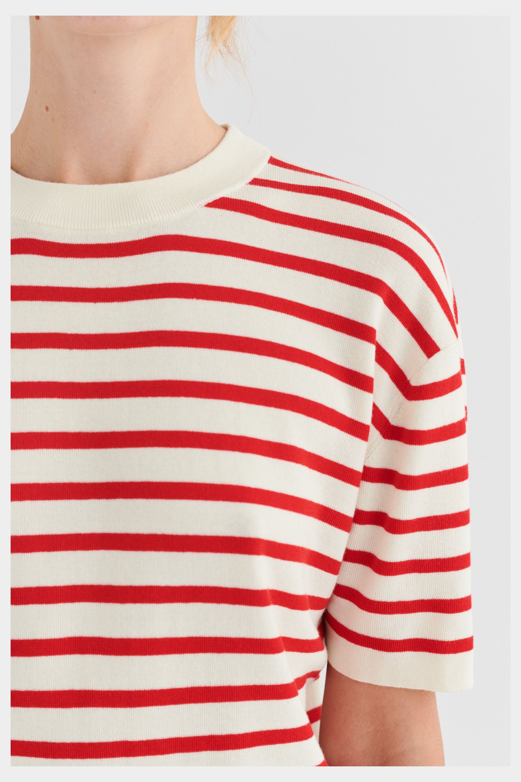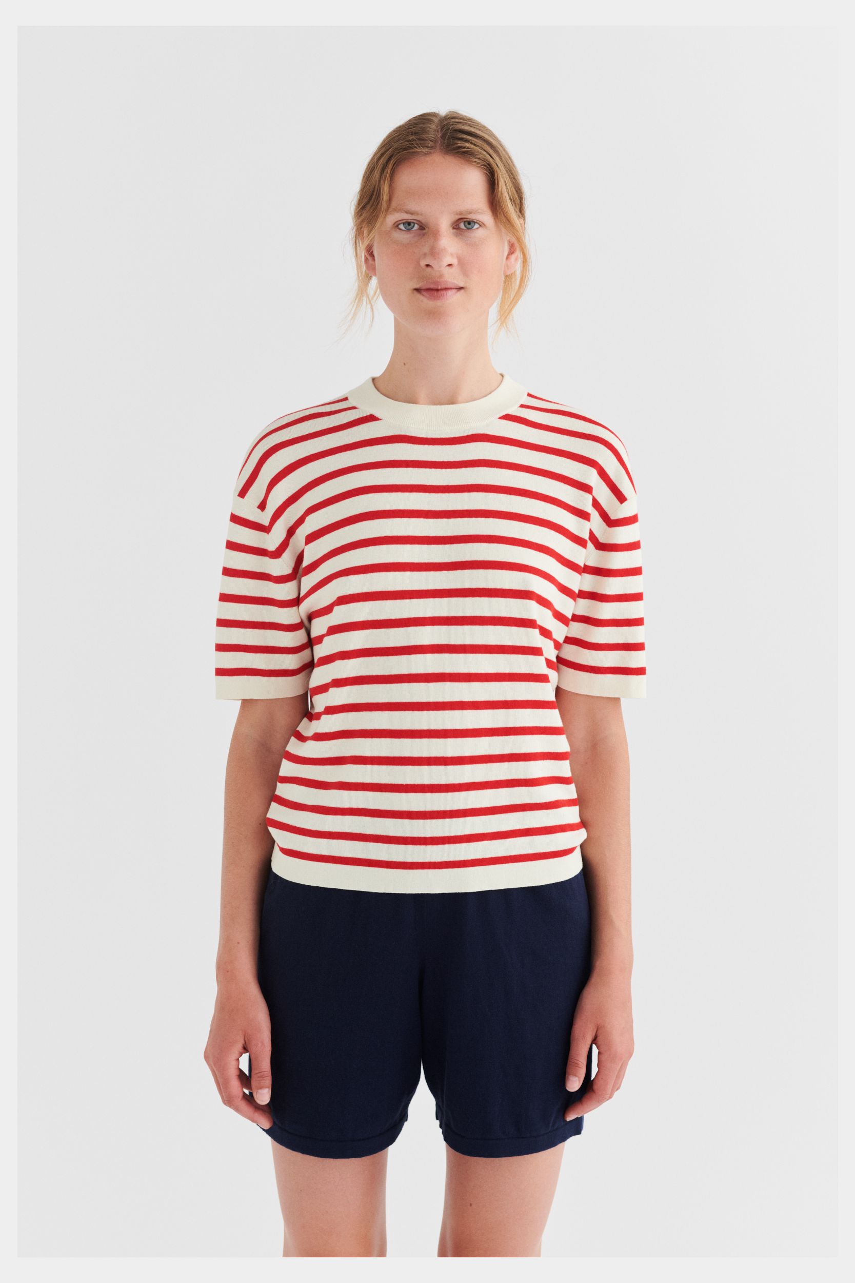 Denne stribede t-shirt er designet med korte ærmer, løs pasform og rund halsudskæring med bred rib i dobbelt lag. Den er lavet af økologisk bomuld og er strikket i en fast 1x1 ribstruktur.