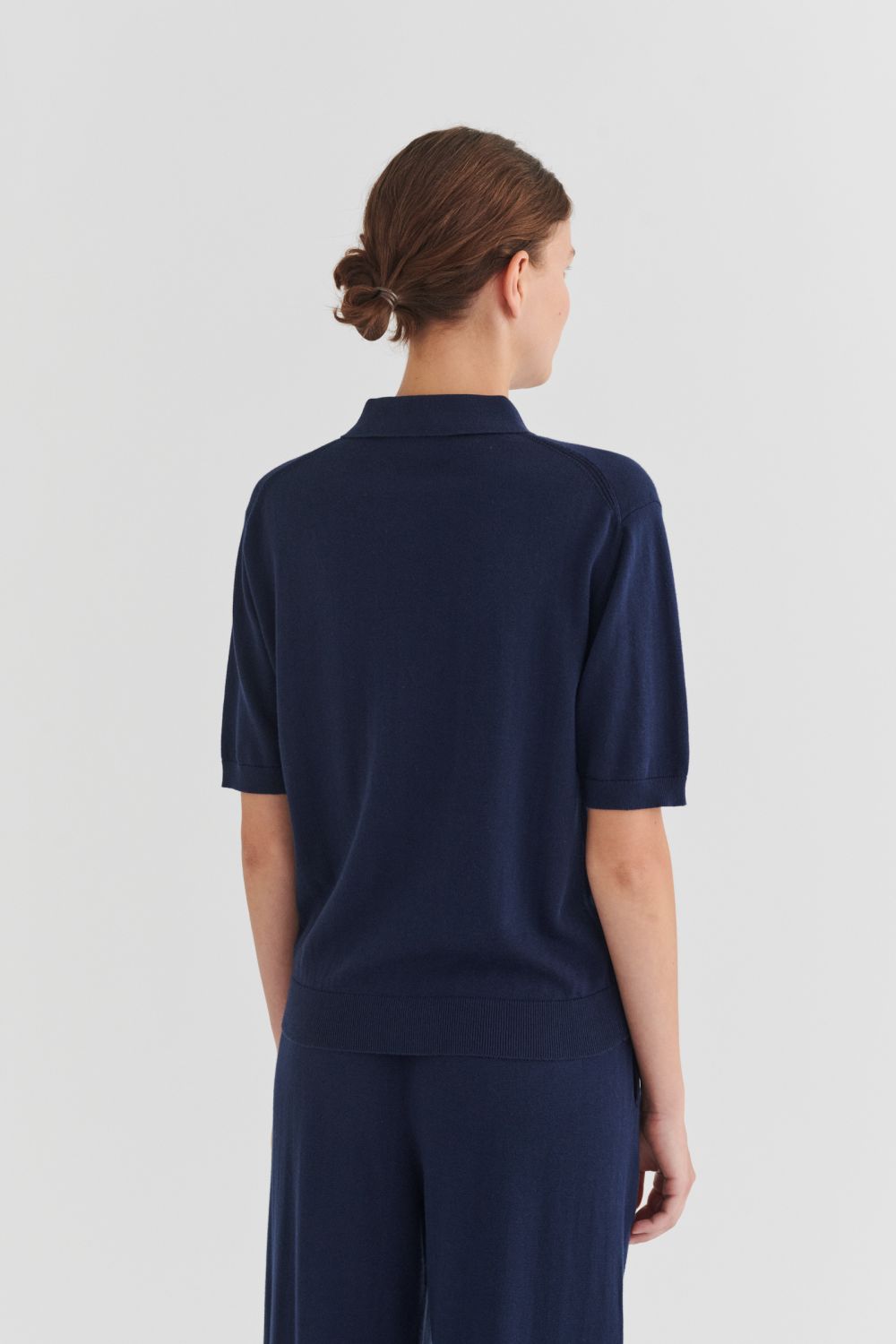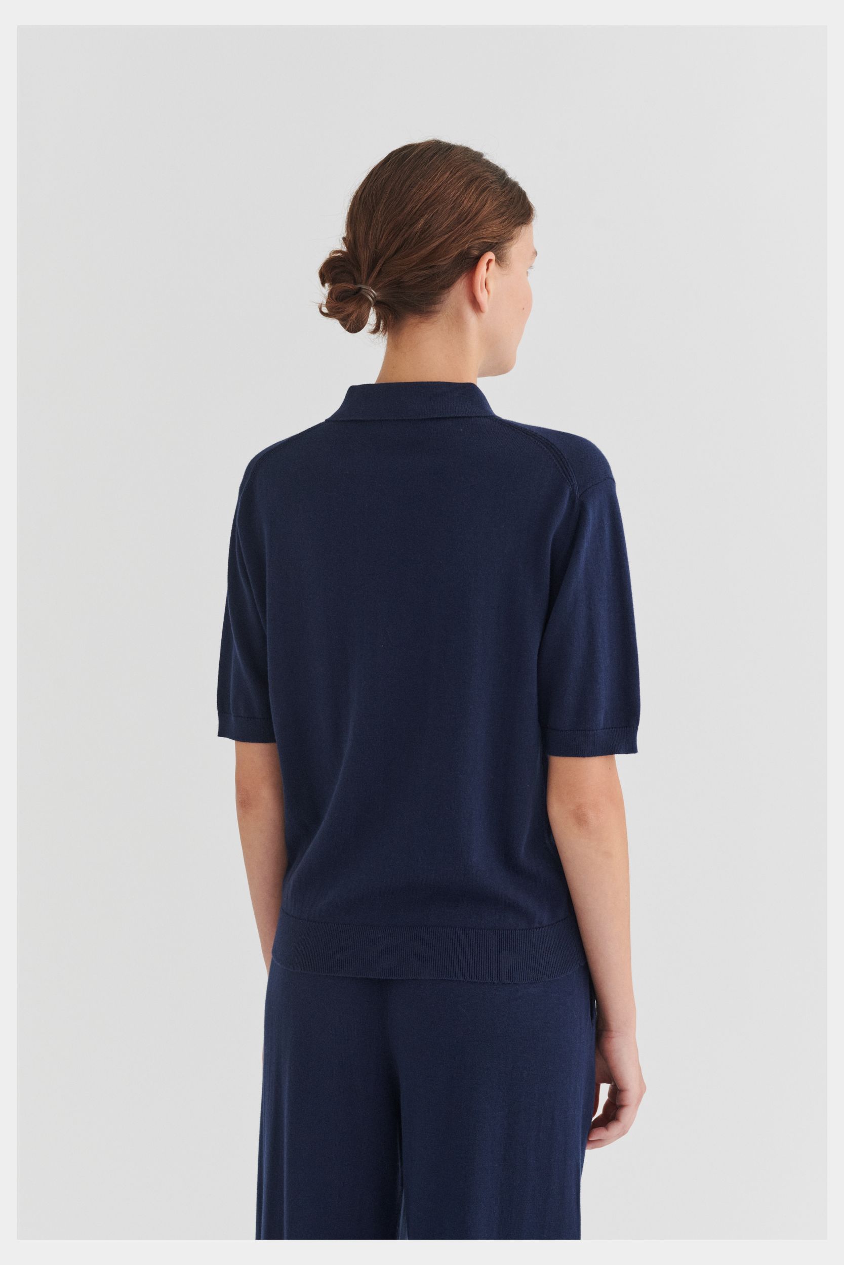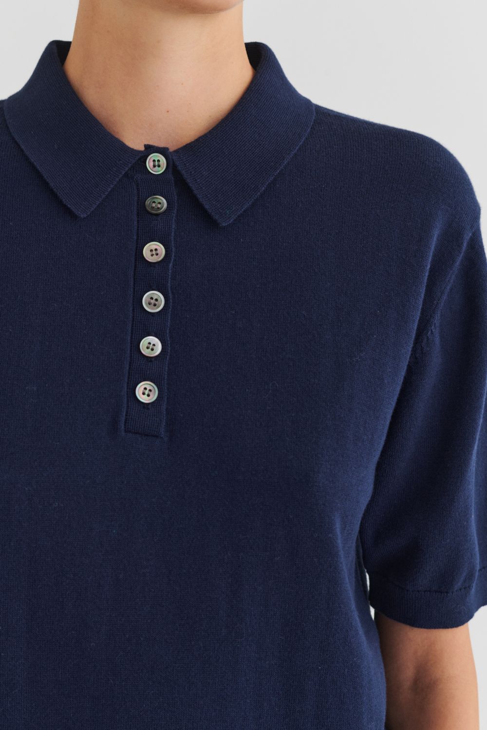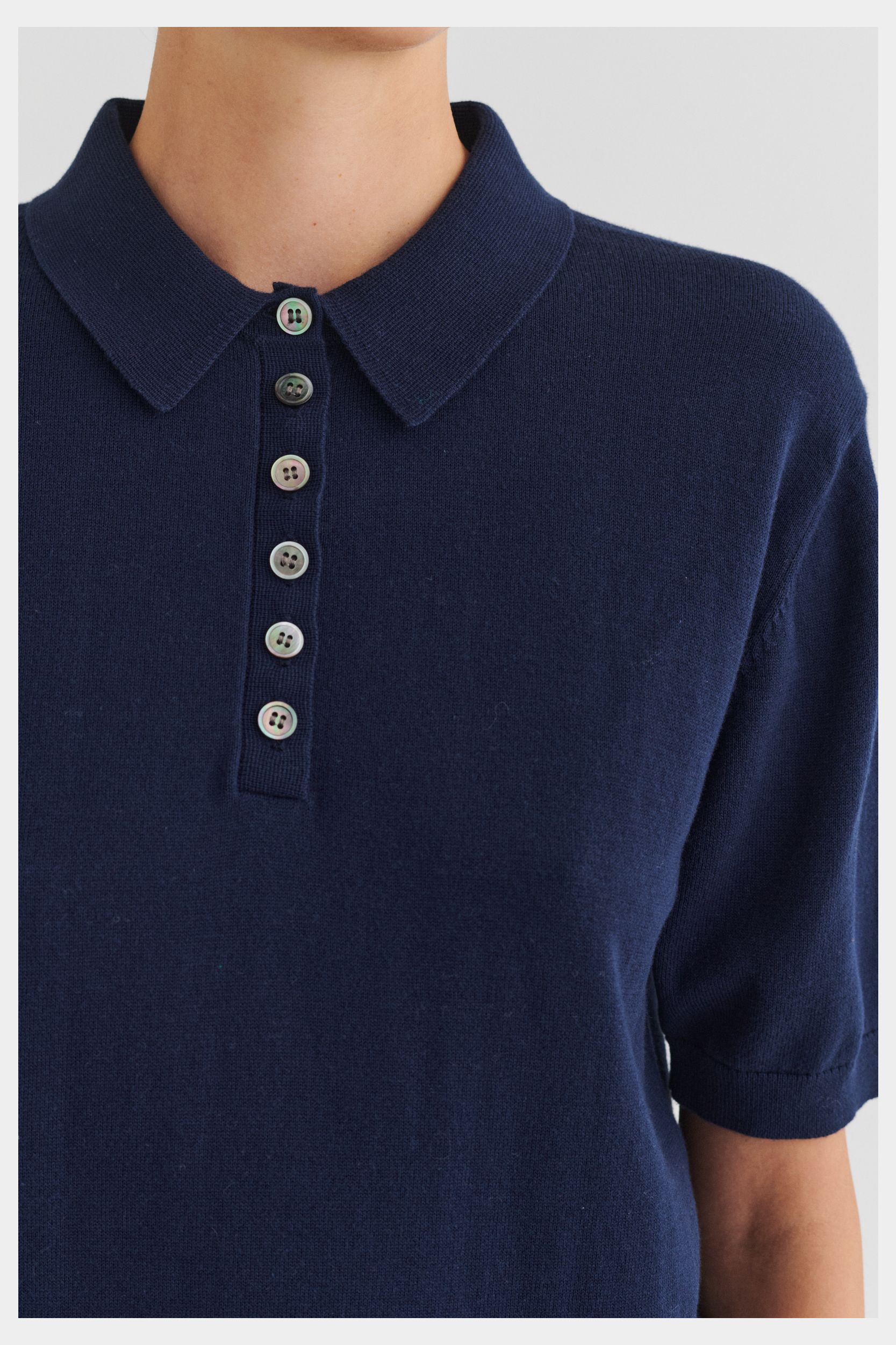 Denne kortærmede polo er strikket i single jersey og er lavet af økologisk bomuld. Poloen har en almindelig pasform og er detaljeret med skjortekrave, ribkanter og stolpelukning med perlemorsknapper.