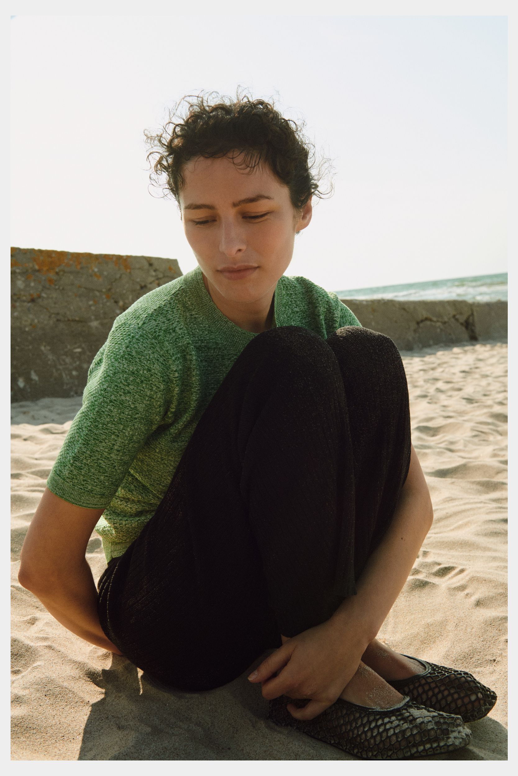 Den mørkhårede model er 175 cm høj og er iført str. S
