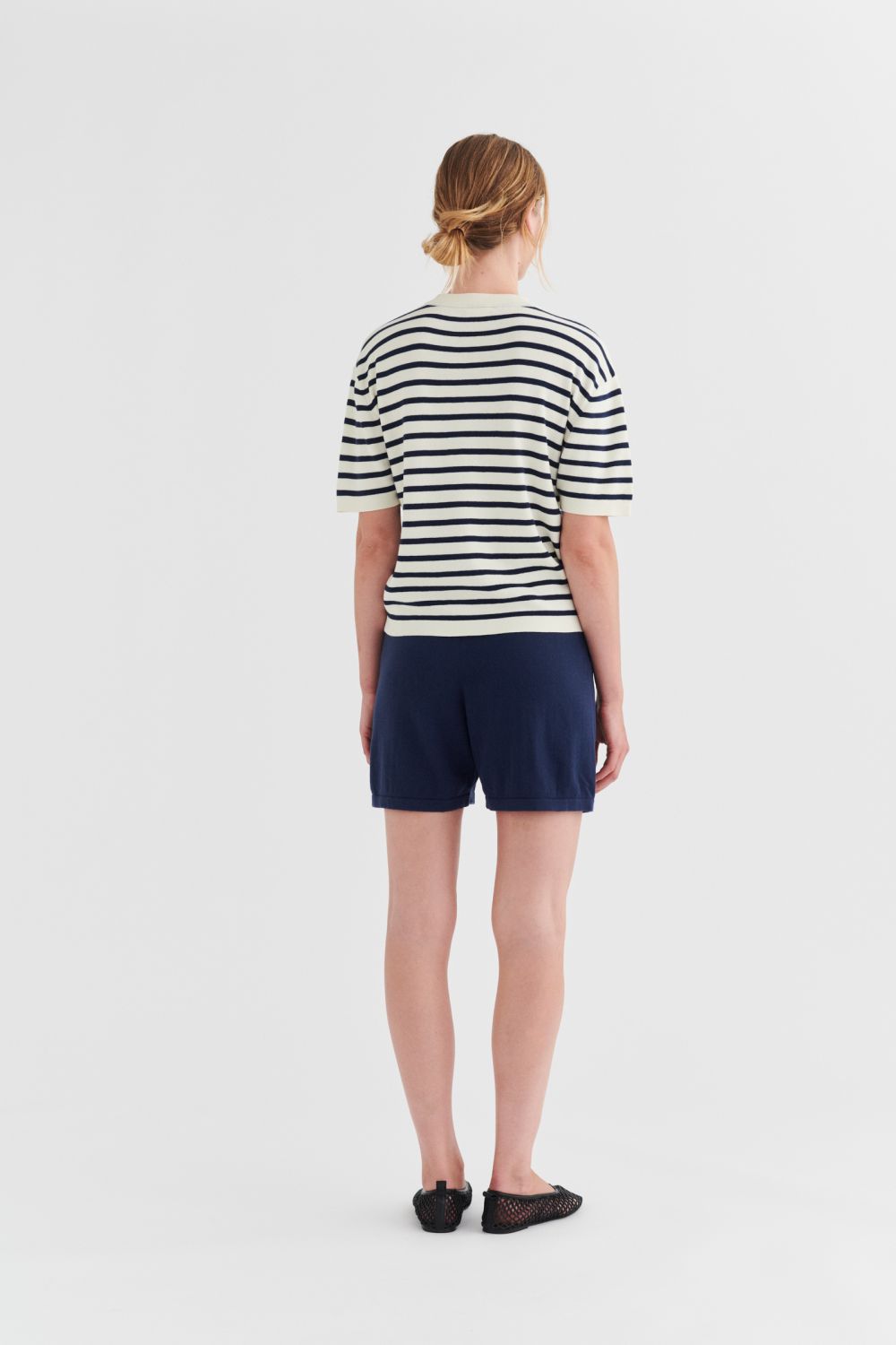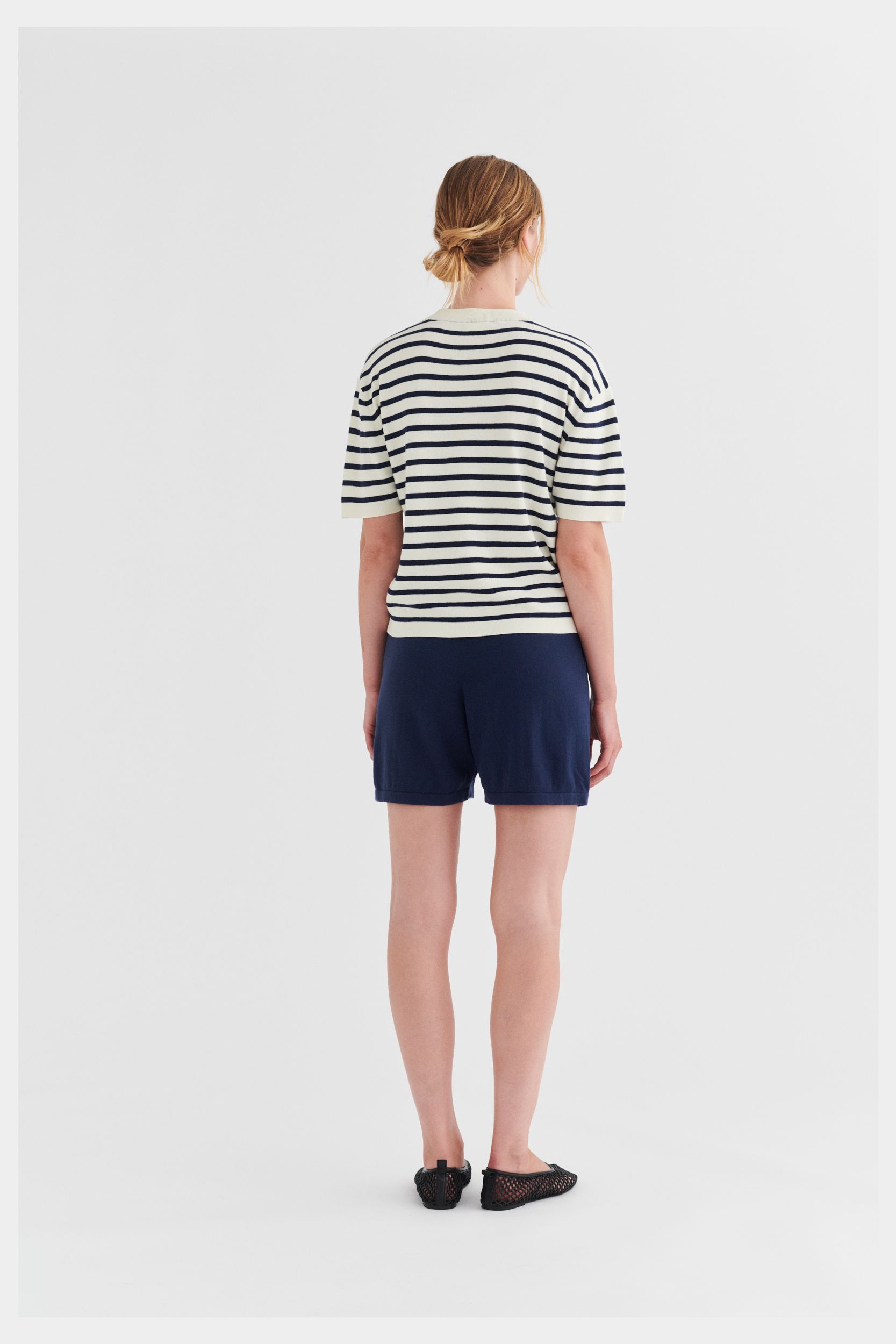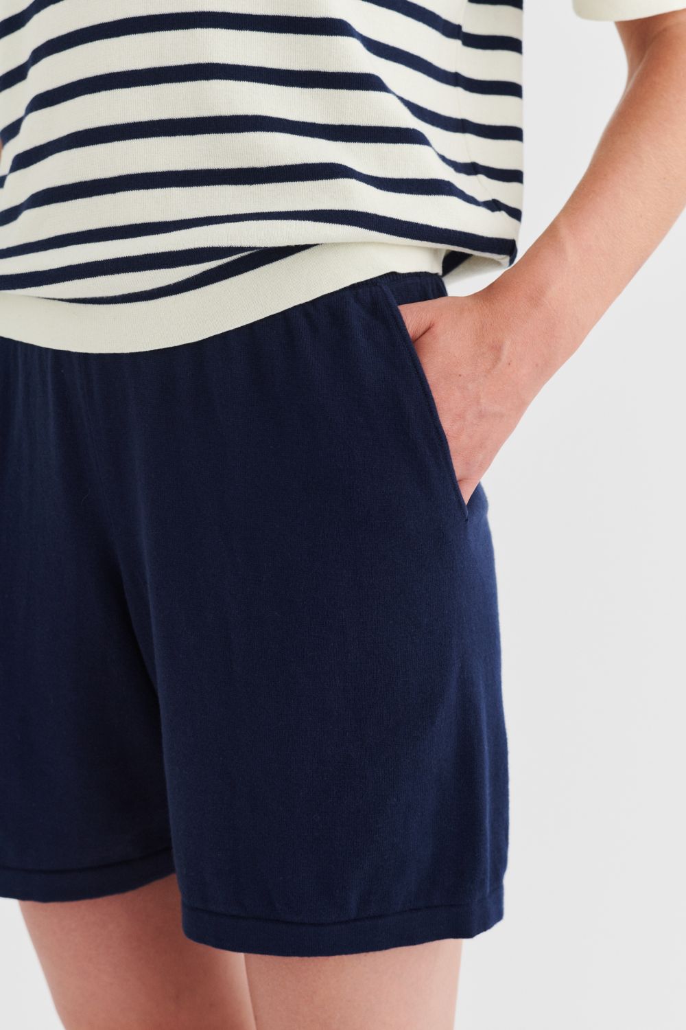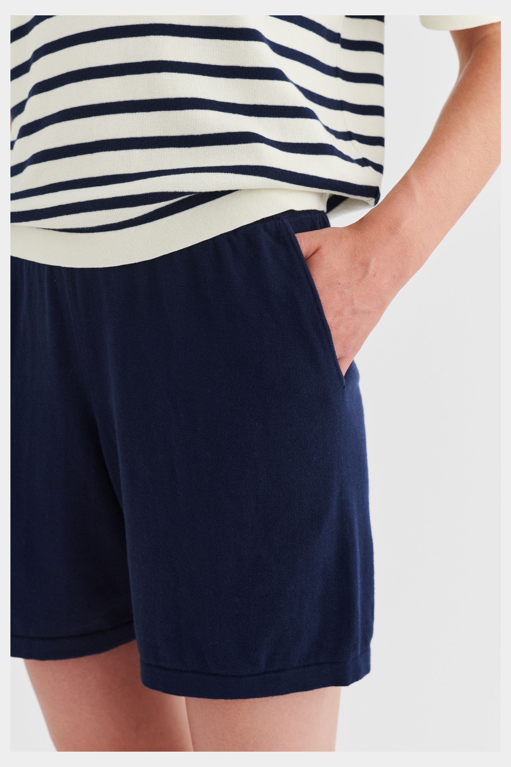Disse shorts er strikket i blød single jersey og har elastikkant i taljen, som sikrer en komfortabel pasform. De har en afslappet pasform med lavt skridt og brede, lige ben. Shortsene har sidelommer og ombukkede kanter og er lavet af økologisk bomuld.
