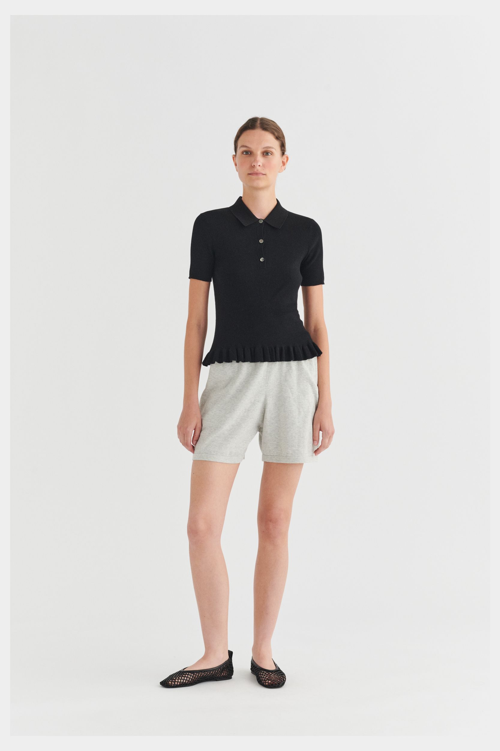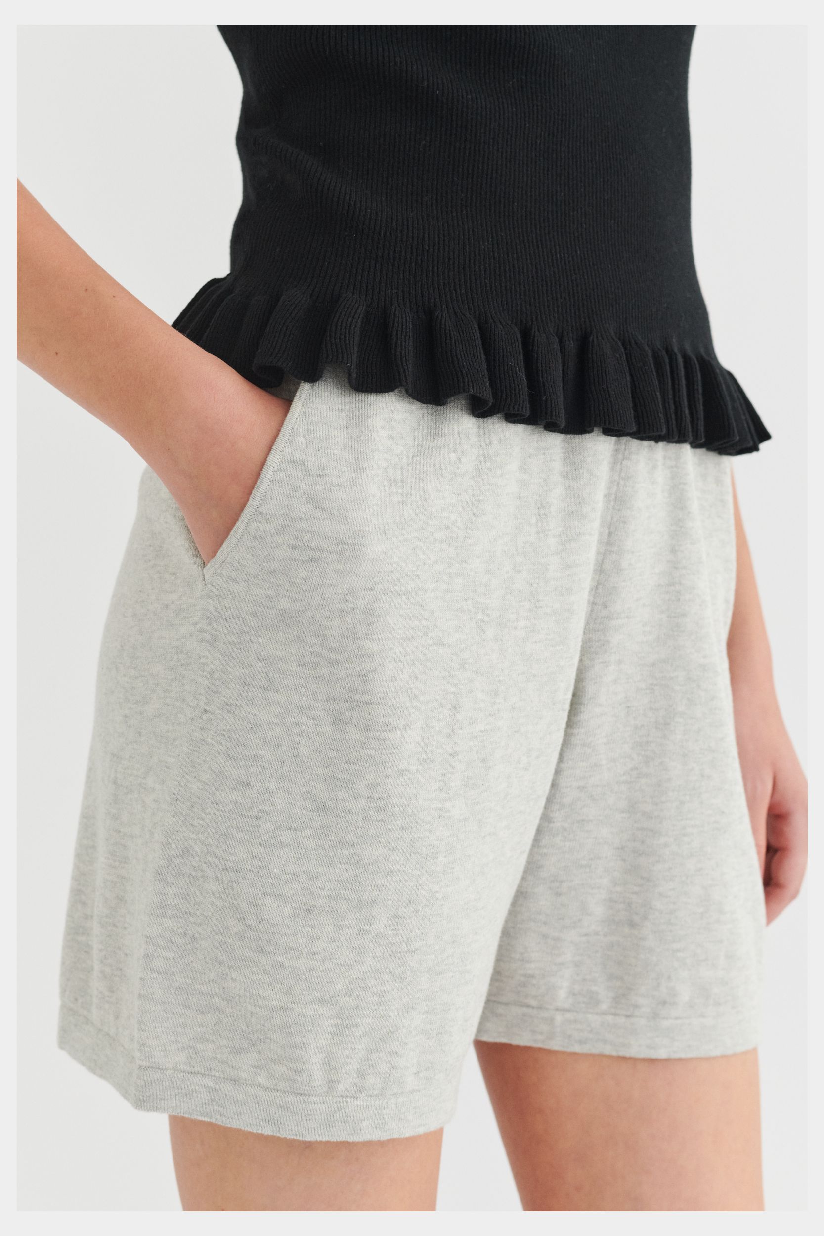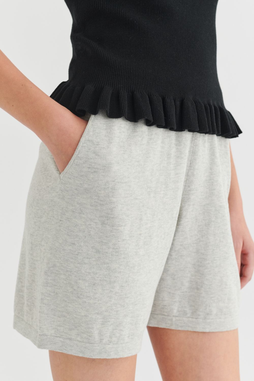Disse shorts er strikket i blød single jersey og har elastikkant i taljen, som sikrer en komfortabel pasform. De har en afslappet pasform med lavt skridt og brede, lige ben. Shortsene har sidelommer og ombukkede kanter og er lavet af økologisk bomuld.