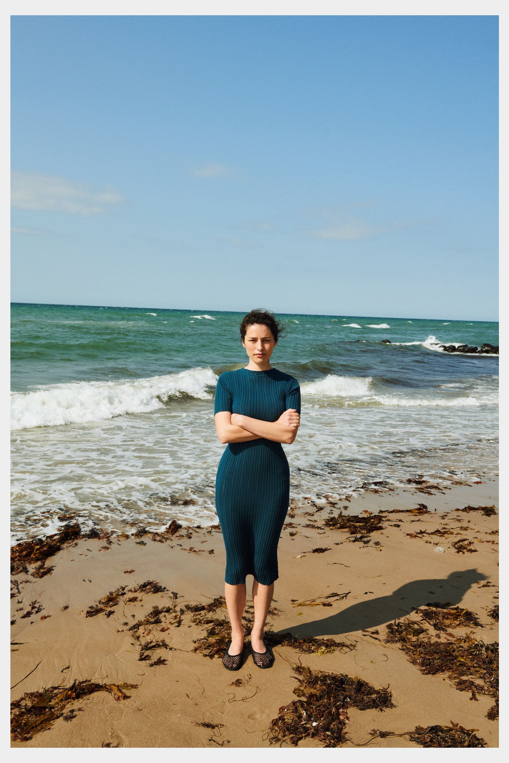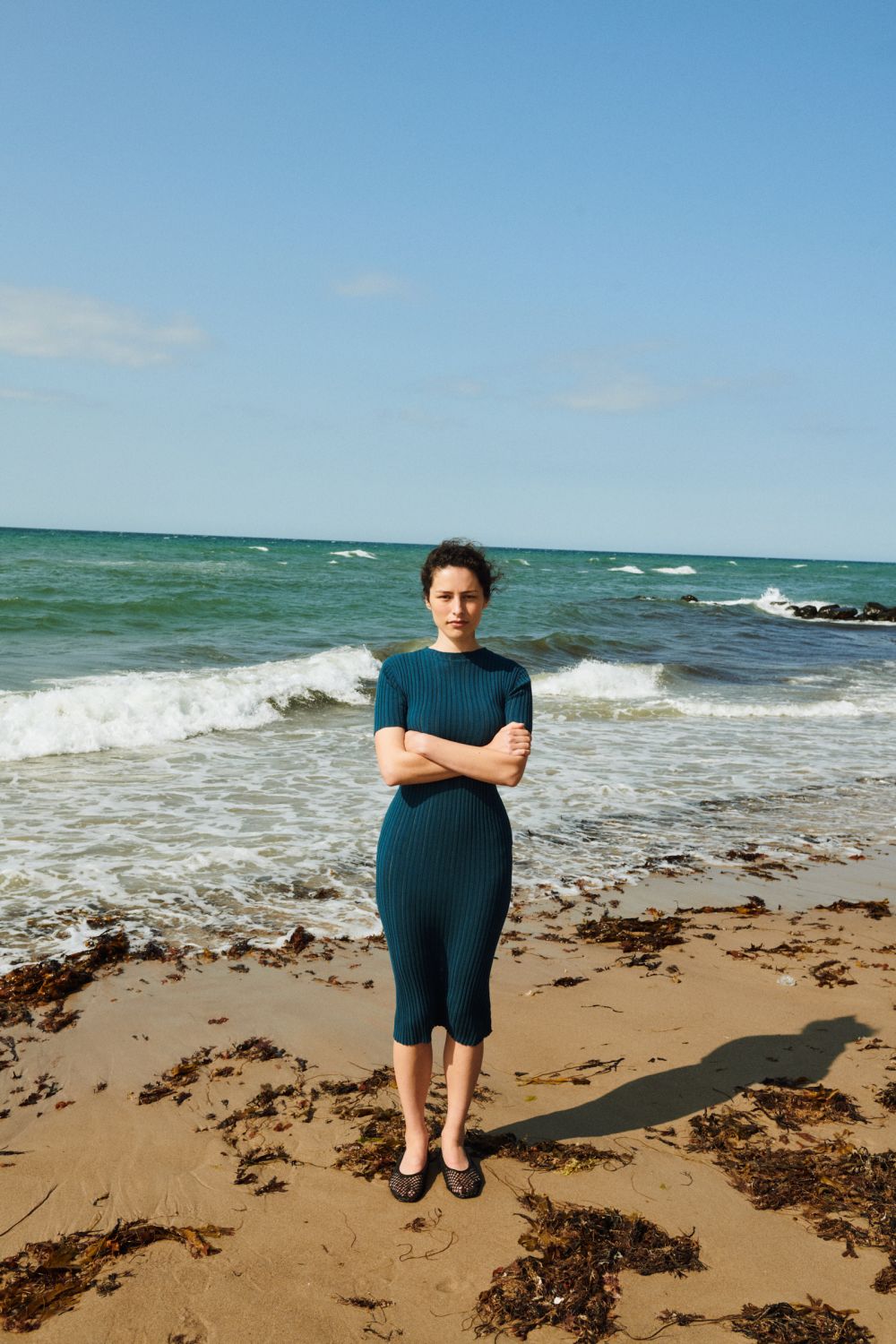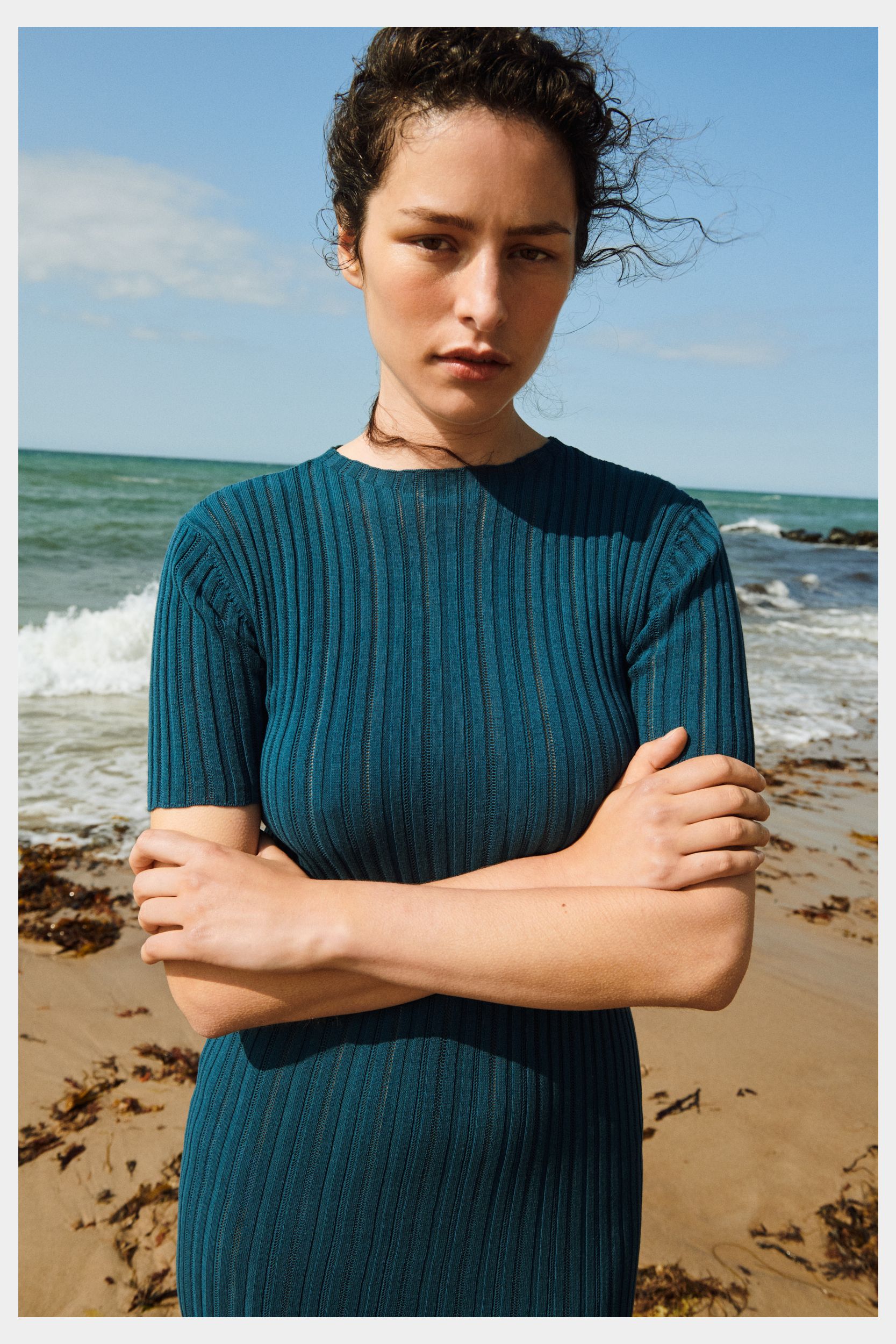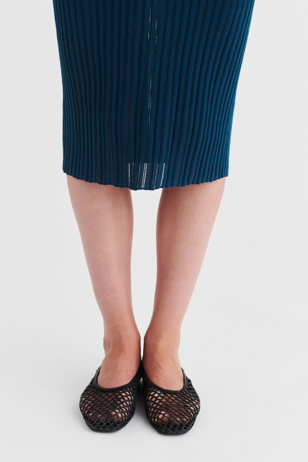 Denne kortærmede kjole er strikket i en fin pointelle ribstruktur og har en lige pasform. Den er detaljeret med høj hals, diskret finish på ærmerne og forneden og en længde til lige under knæet. Kjolen er strikket i et økologisk high-twist bomuldsgarn, som er spundet hårdere end vores klassiske bomuld, og giver stylen et fastere, skarpere og mere formstabilt udtryk.