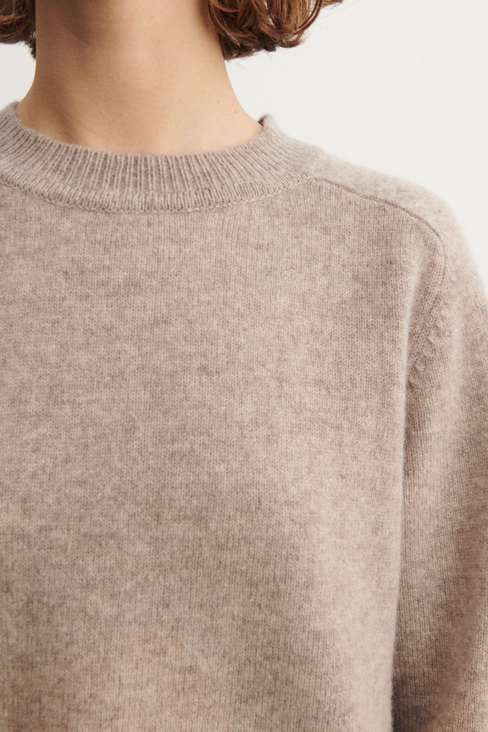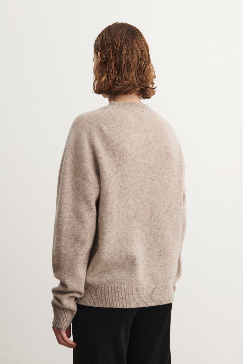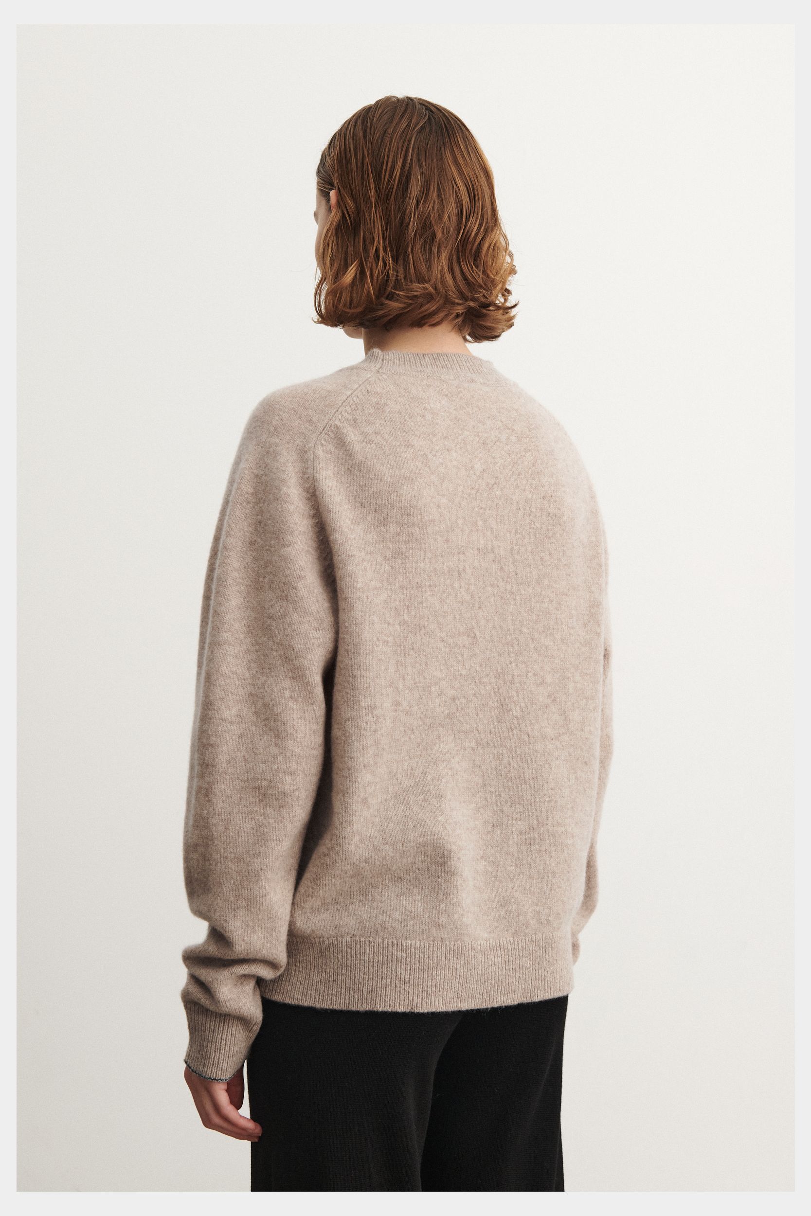 Denne bløde sweater er strikket i single jersey og har en løs pasform. Den er designet med rund hals, raglanærmer og ribkanter. Sweateren er lavet af en klassisk, let lodden lambswool og har en diskret melange detalje ved ærmekanten. Vores lambswool er fri for skadelig kemi og stammer fra får, der ikke er blevet udsat for mulesing.
