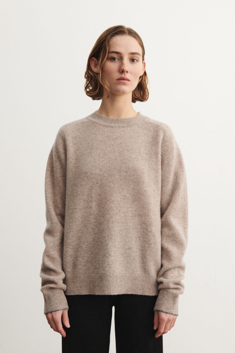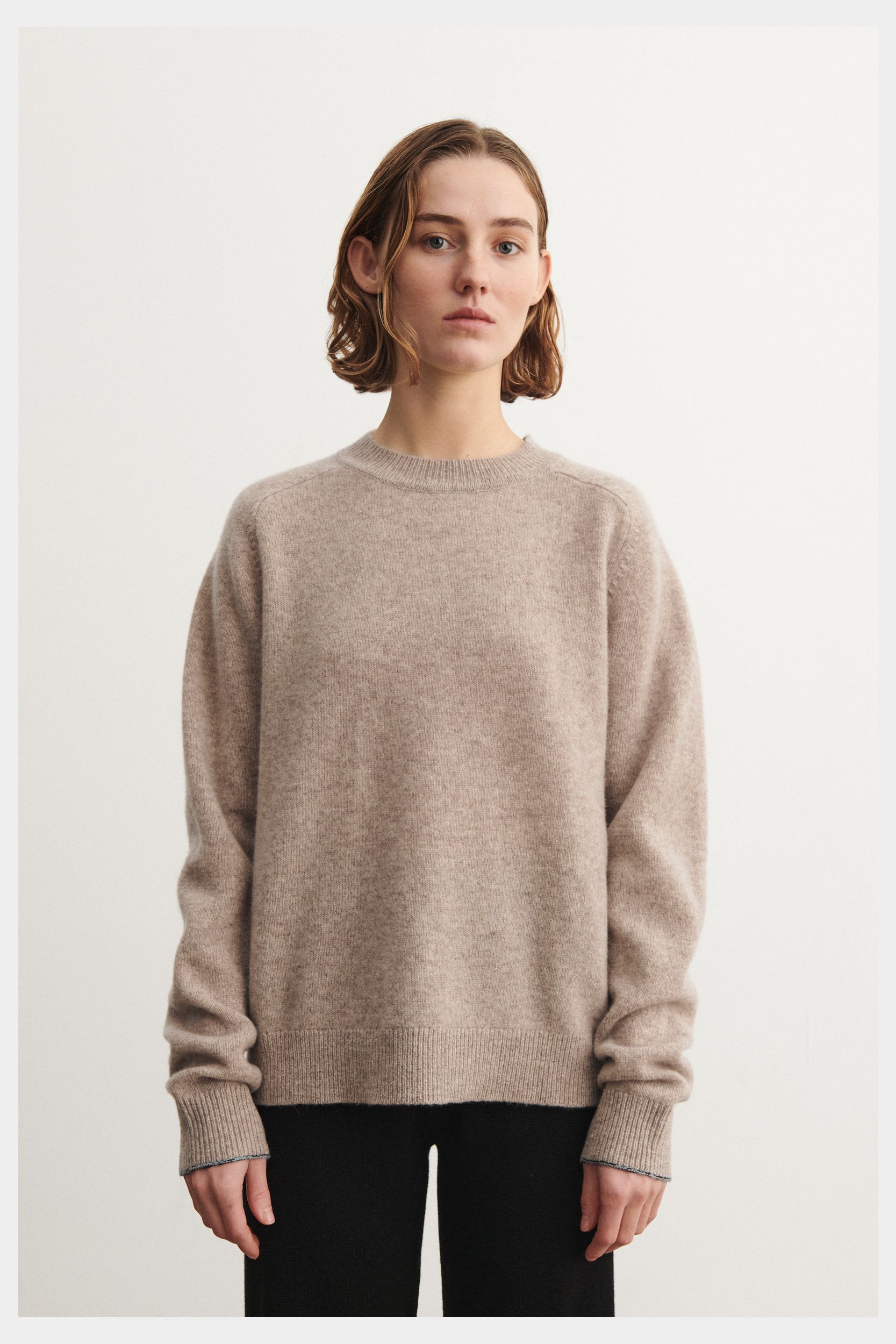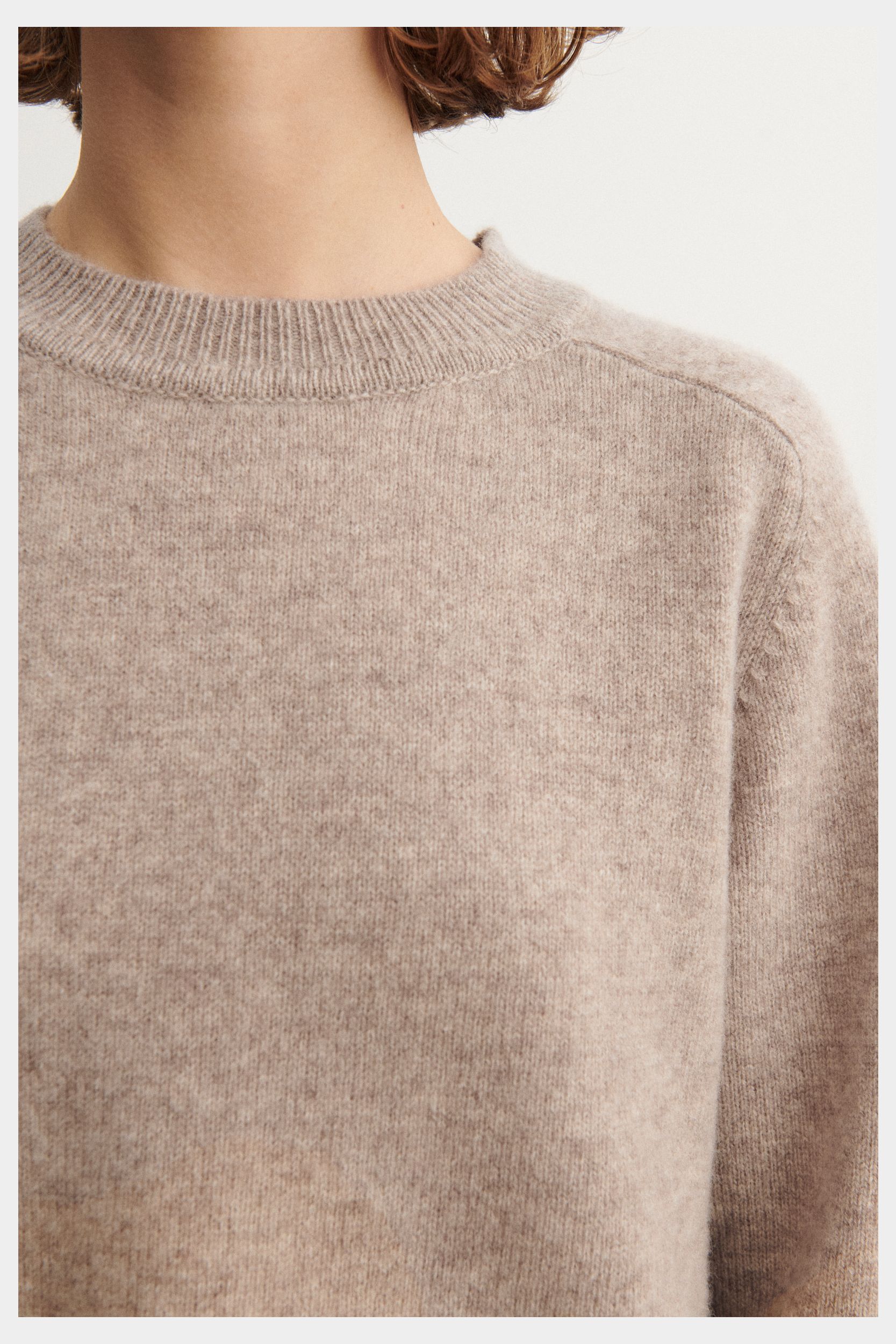 Denne bløde sweater er strikket i single jersey og har en løs pasform. Den er designet med rund hals, raglanærmer og ribkanter. Sweateren er lavet af en klassisk, let lodden lambswool og har en diskret melange detalje ved ærmekanten. Vores lambswool er fri for skadelig kemi og stammer fra får, der ikke er blevet udsat for mulesing.