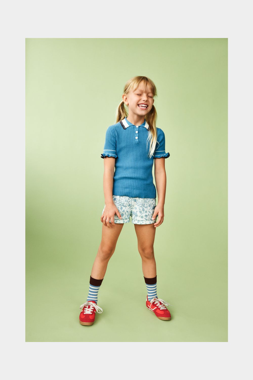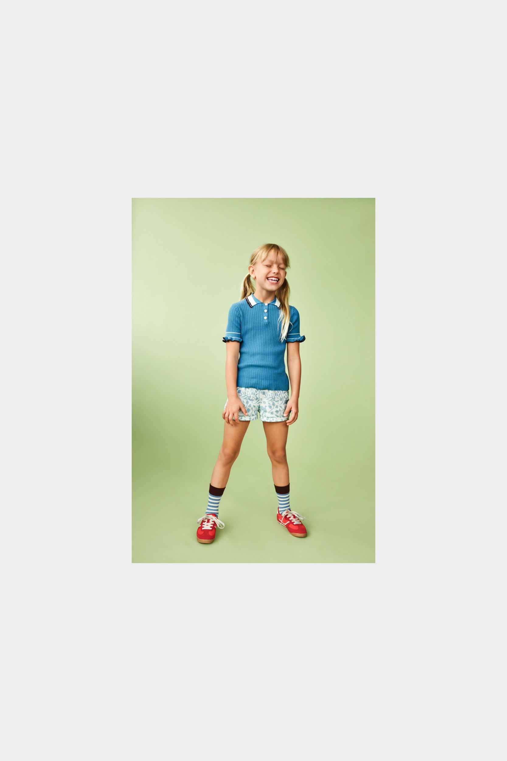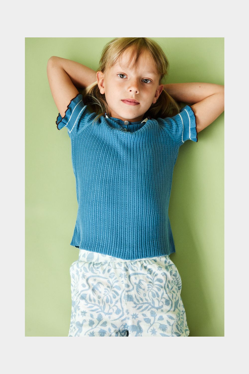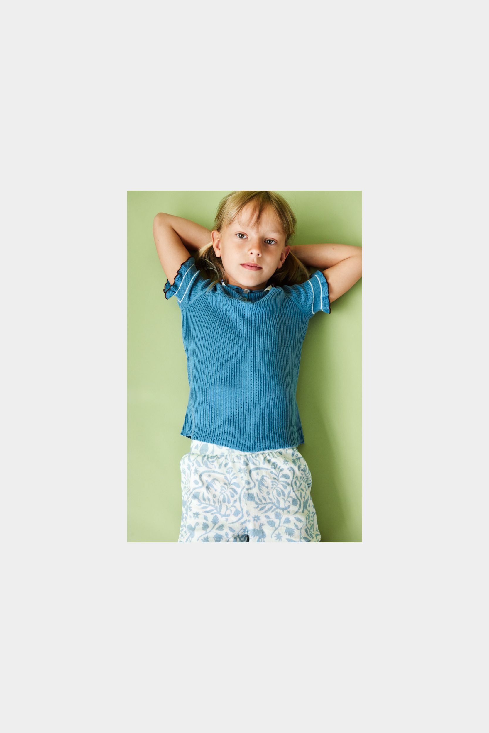 Disse shorts er strikket i let single jersey med print og har elastikkant i taljen, som sikrer en komfortabel pasform. De har en afslappet pasform med lige ben og ombukkede kanter. Shortsene fås i blomsterprint og et print, der er inspireret af traditionelt mexicansk broderi. De er lavet af økologisk bomuld.