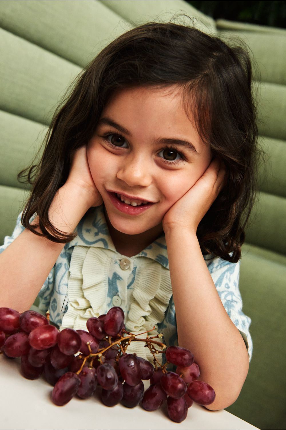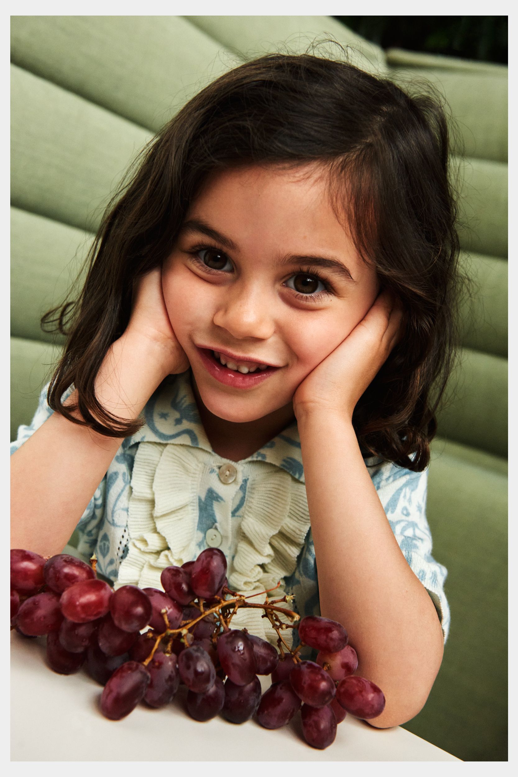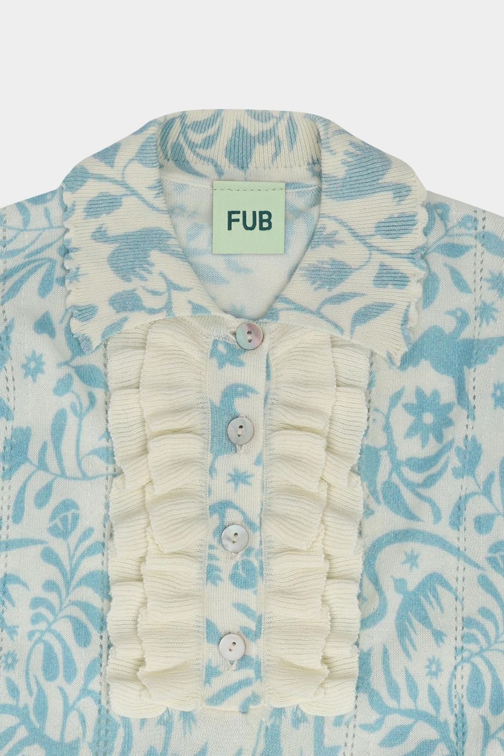 Denne knælange kjole med korte ærmer er strikket i soft single jersey med print. Kjolen har en lille krave med blondekant, knaplukning foran med perlemorsknapper og flæsedetaljer ved stolpelukningen. Kjolen har en løs pasform med bløde rynk ved taljen, som giver skørtet volumen. Kjolen fås i blomsterprint og et print, der er inspireret af traditionelt mexicansk broderi og er lavet af økologisk bomuld.