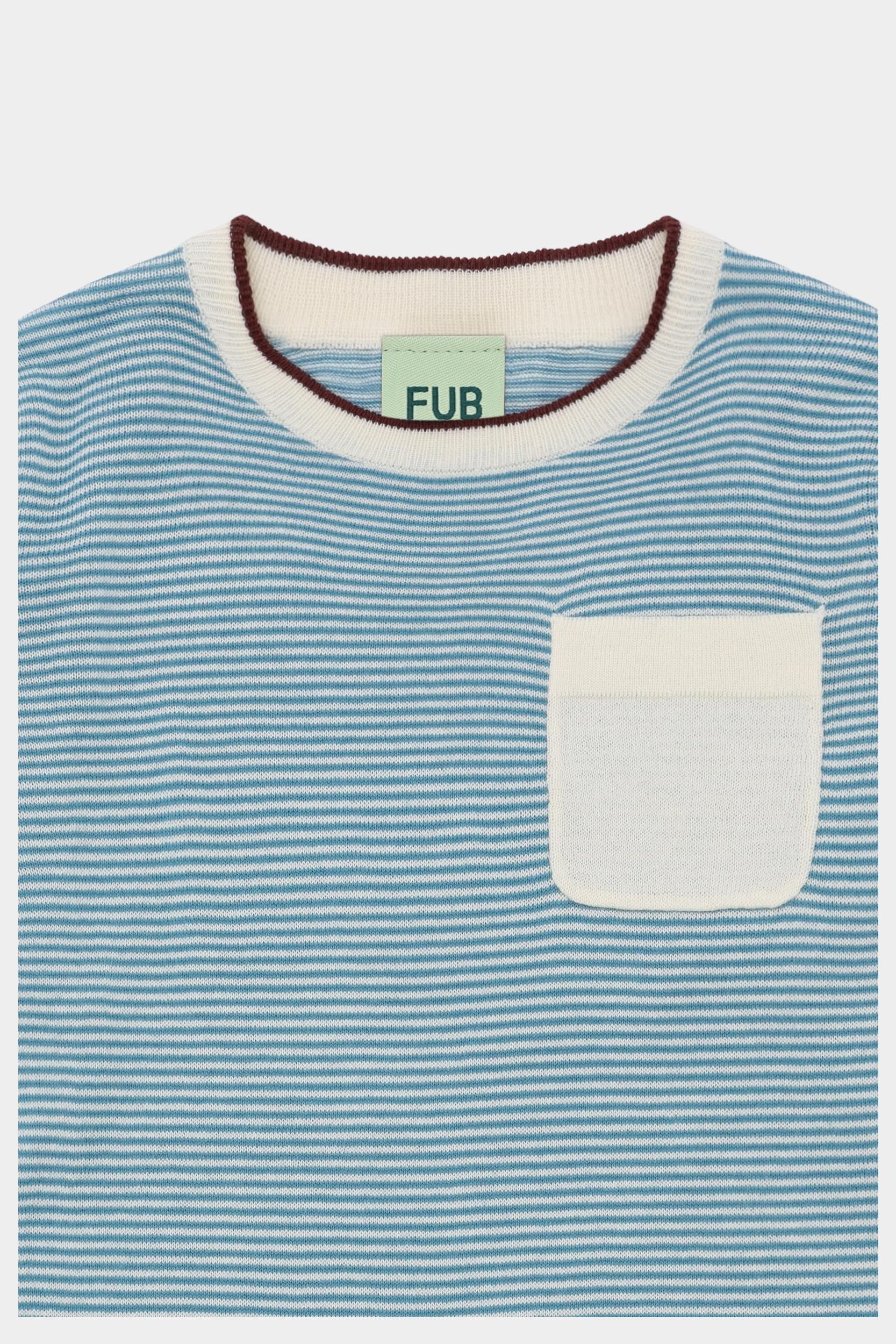 Denne bluse er strikket i let single jersey med striber og har kontrastfarvet kant ved hals og ærmekanter. Den er designet med rund ribstrikket hals og en lille lomme på brystet. Blusen har en løs pasform og er lavet af økologisk bomuld.