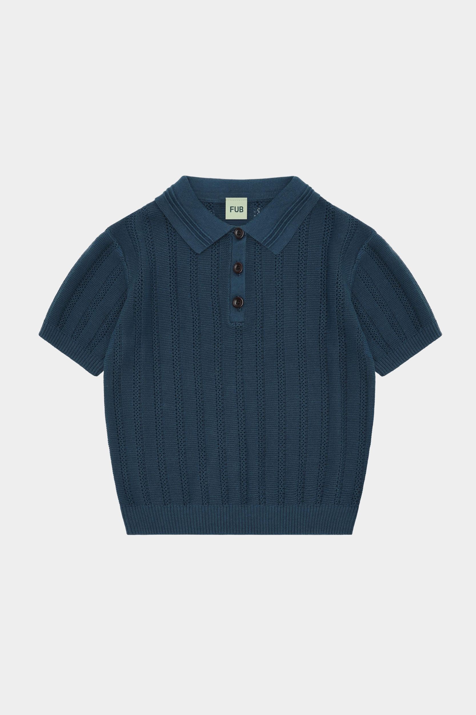 Denne kortærmede polo er strikket i en grafisk pointellestruktur. Den er designet med klassisk skjortekrave med dekorative detaljer, knaplukning med knapper af corozonød og ribkanter. Poloen har en almindelig pasform og er lavet af økologisk bomuld.