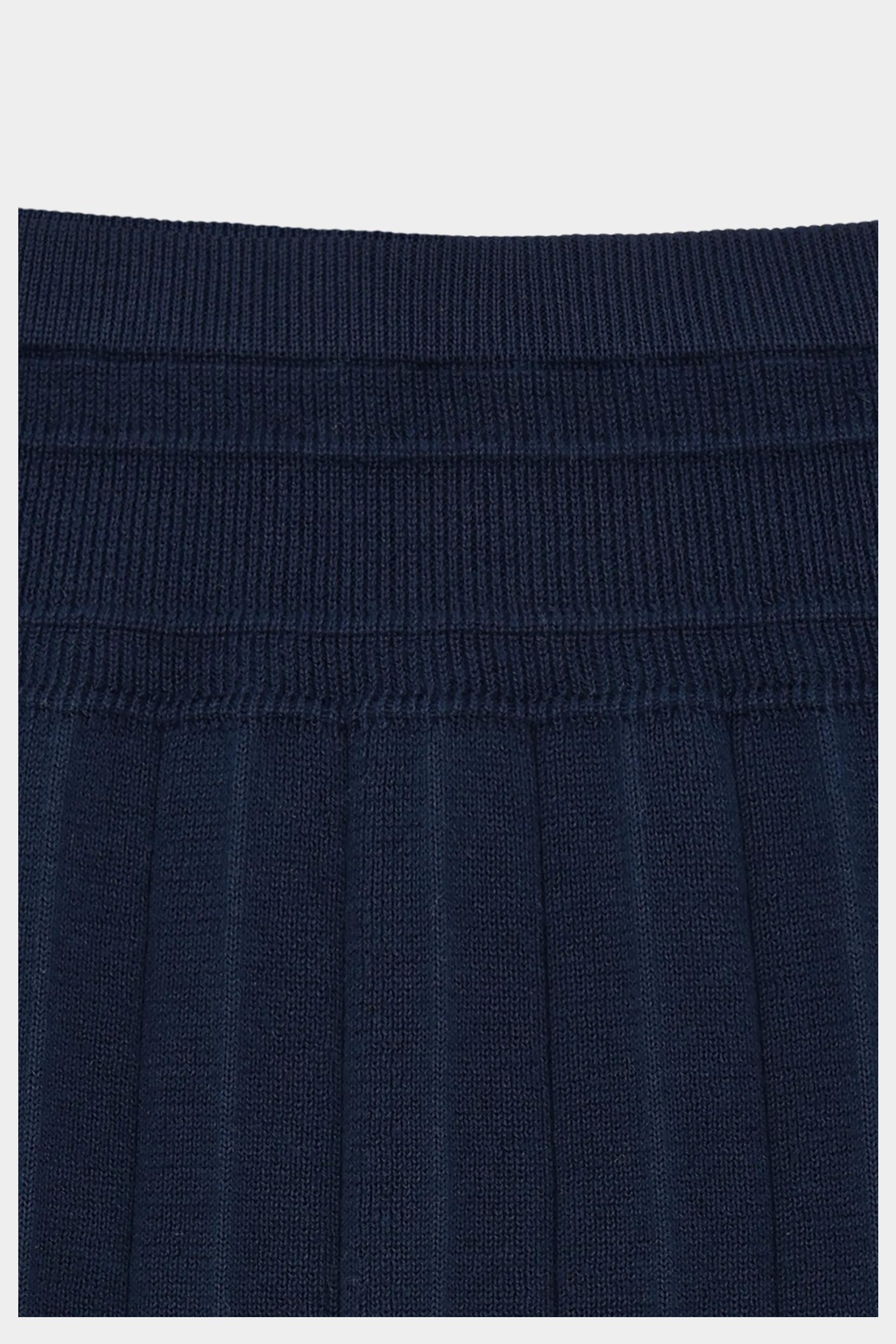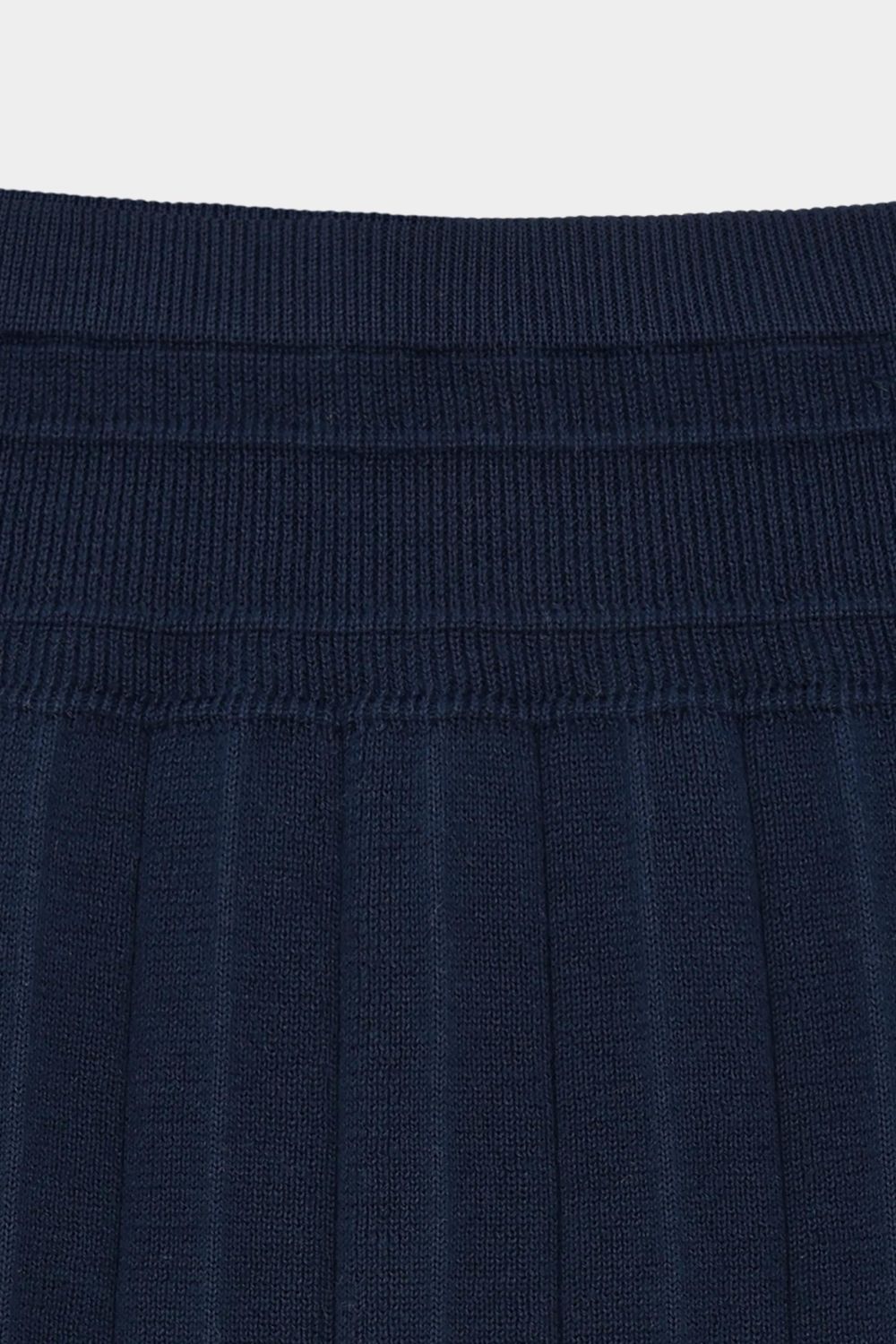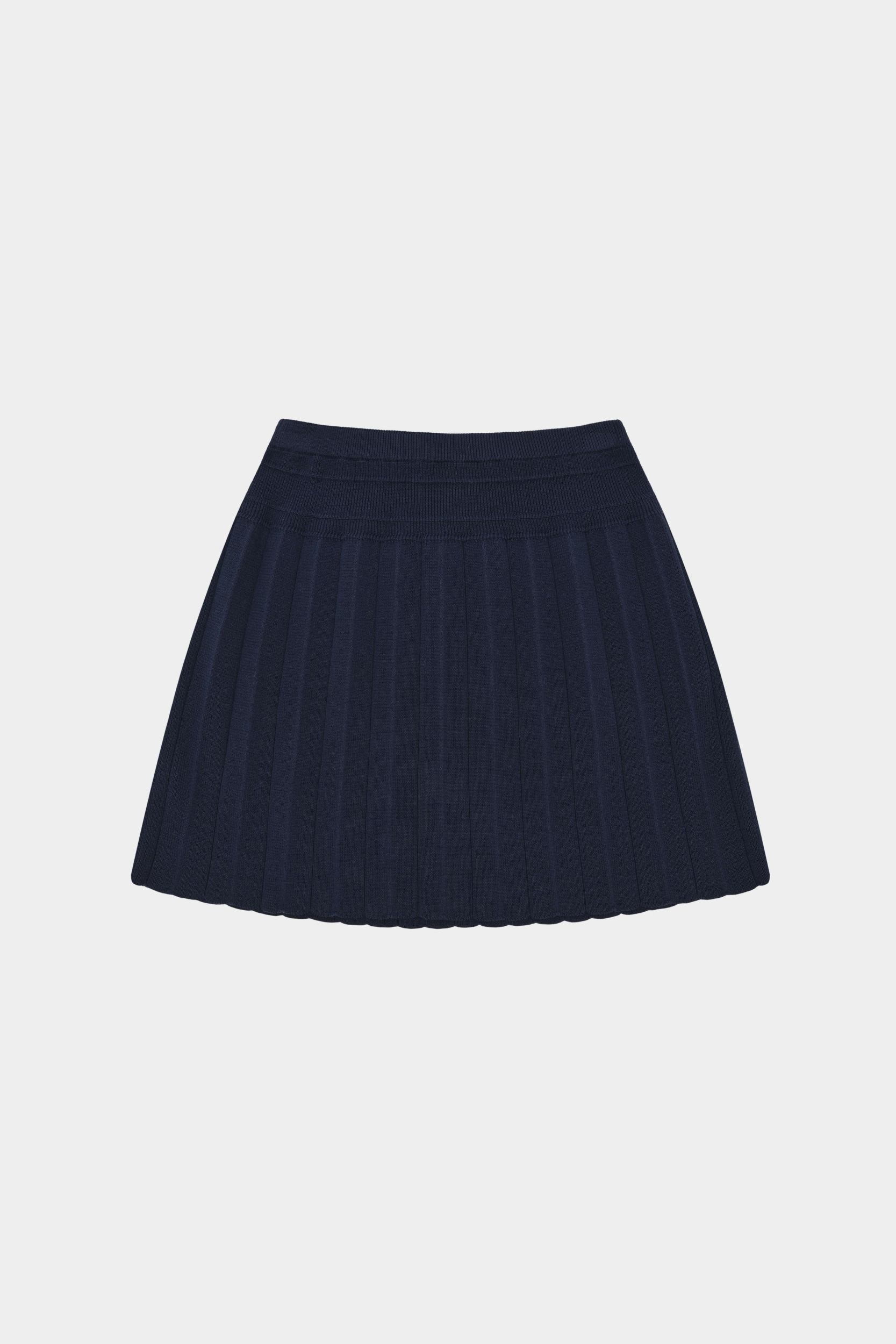 Denne knælange nederdel er strikket i en blød lægstruktur med et bredt ribstrikket panel foroven. Nederdelen har elastikkant i taljen, som sikrer en komfortabel pasform og er lavet af økologisk bomuld.