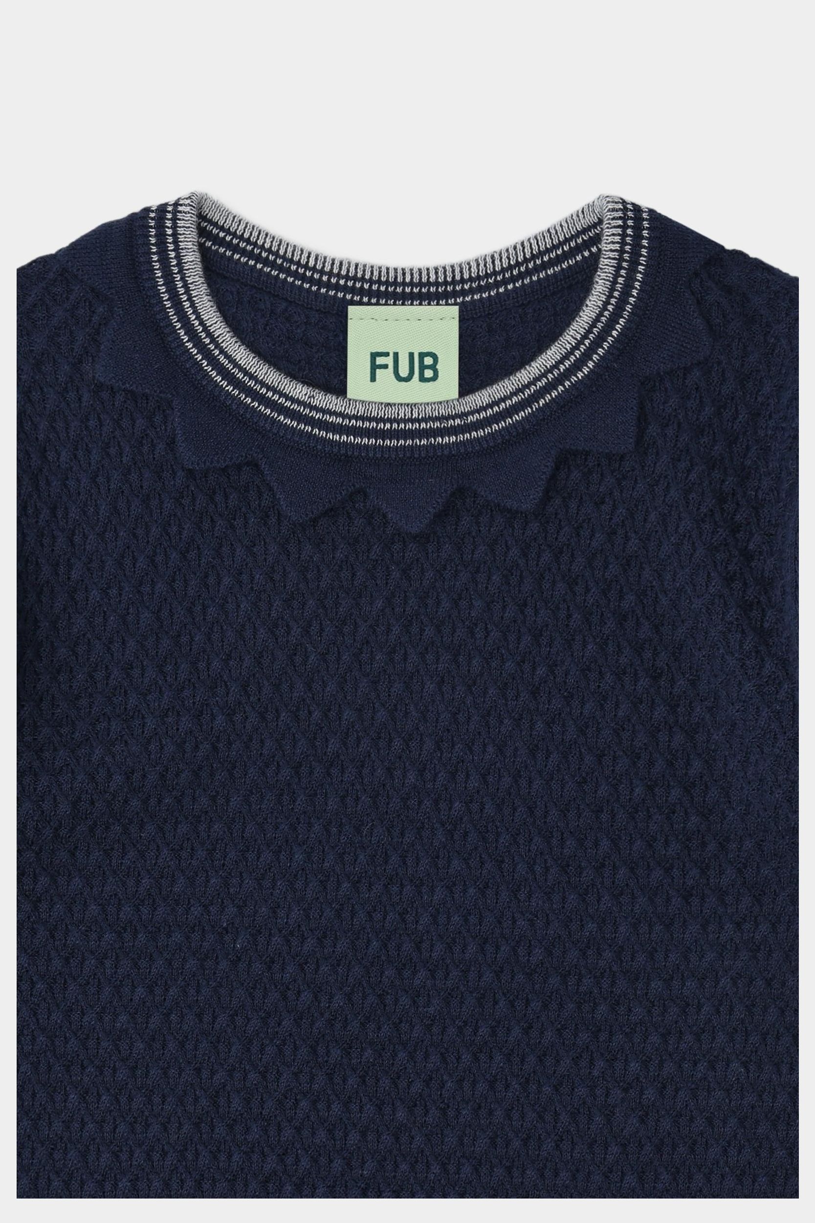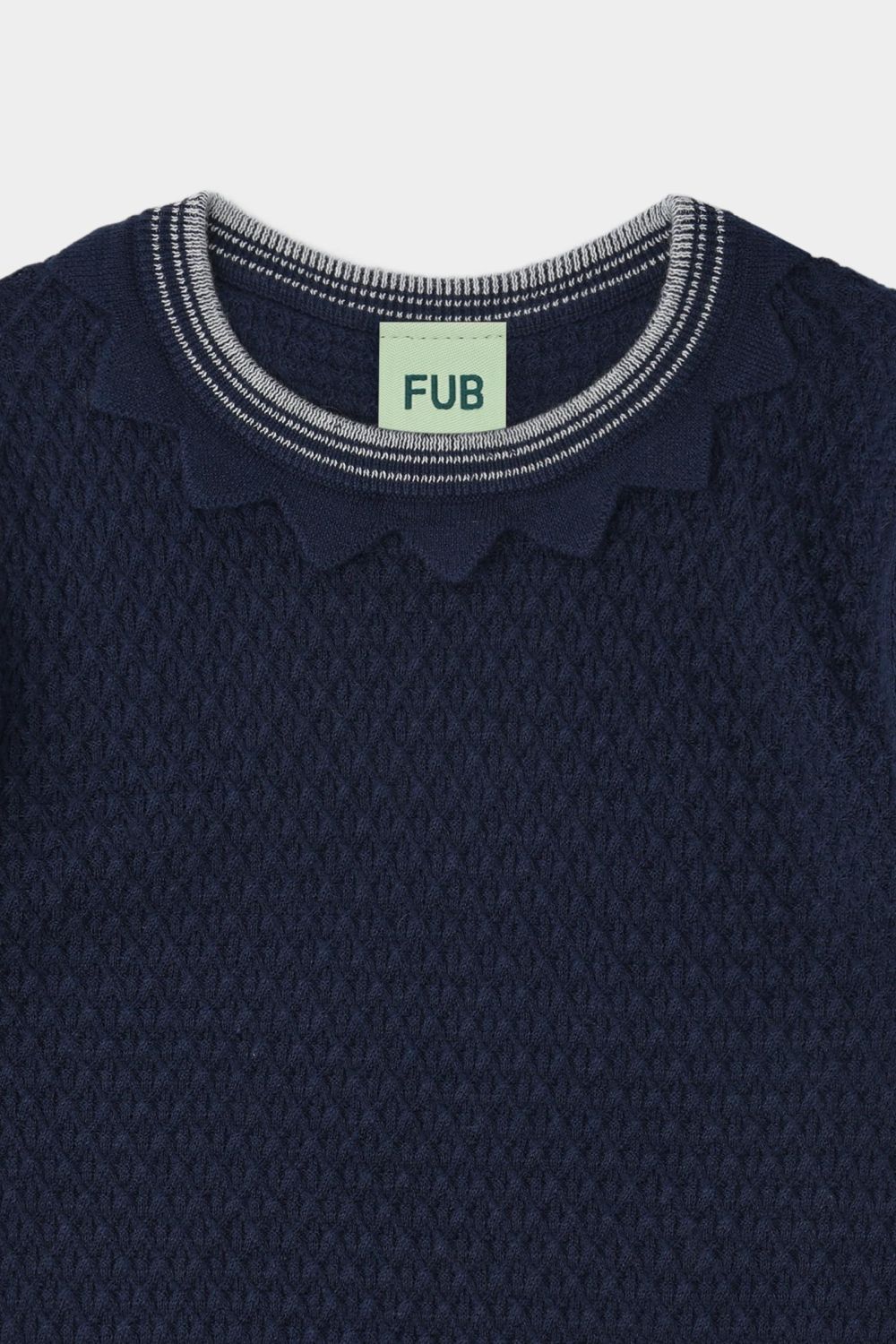 Denne kortærmede t-shirt er strikket i et vaflet strukturmønster. Den har korte pufærmer, en smal stribet halskant med strikket blondedetalje og dekorative stribede ribkanter. T-shirten har en almindelig pasform og er lavet af økologisk bomuld.