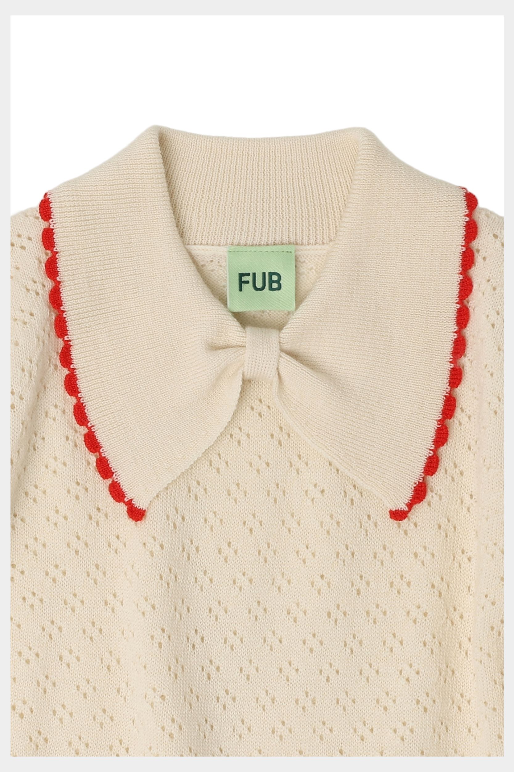 Denne kortærmede polo er strikket i en grafisk pointellestruktur og lavet af ekstra fin merinould. Den har en almindelig pasform, sløjfekrave med kontrastfarvet blondekant og ribkanter. Vores merinould er BLUESIGN® og RWS certificeret, fri for skadelig kemi og stammer fra får, der ikke har været udsat for mulesing.