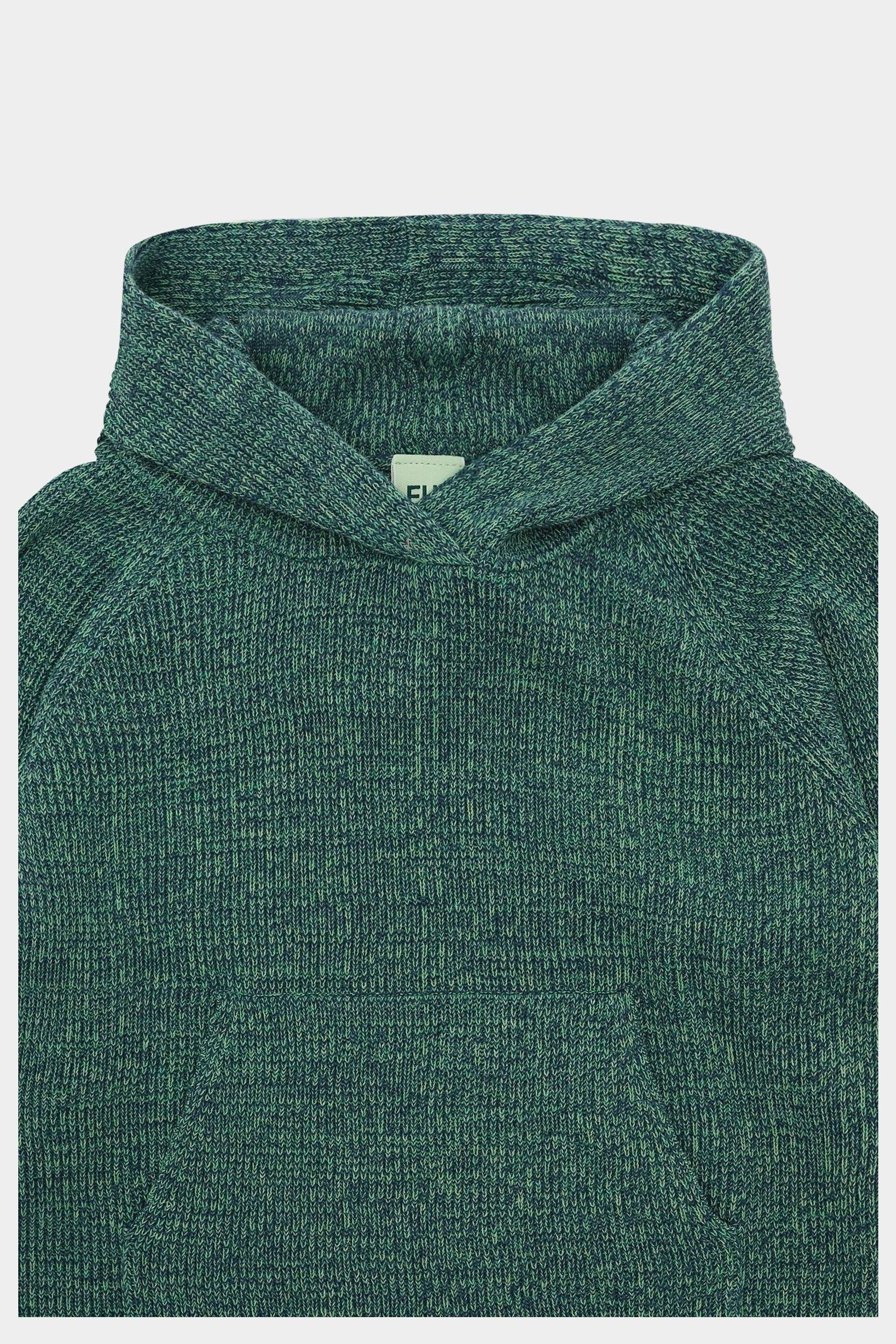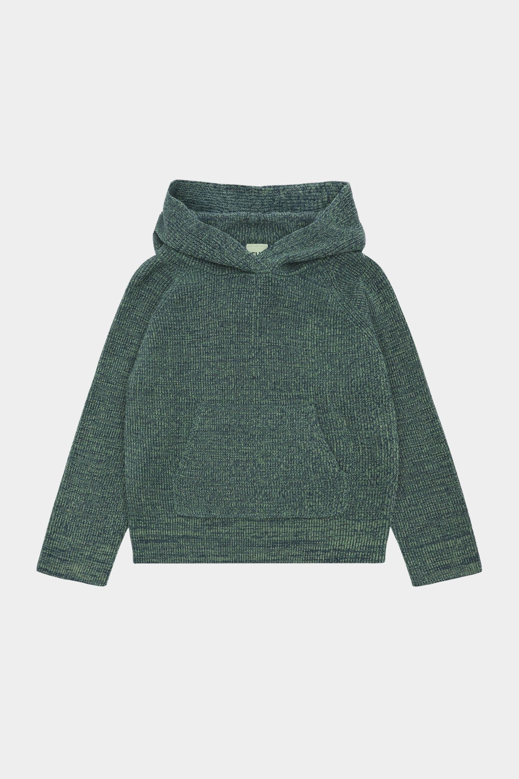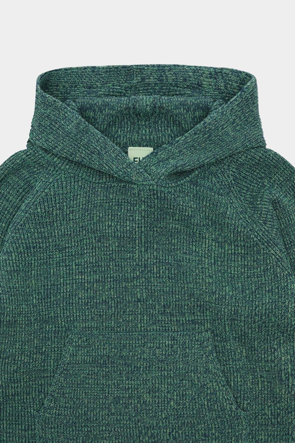 Denne hoodie er strikket i en klassisk ribstruktur og har en løs pasform med raglanærmer og lomme foran. Hoodien er designet med en rummelig facon og kan både bruges med en bluse under eller alene. Lavet af økologisk bomuld.