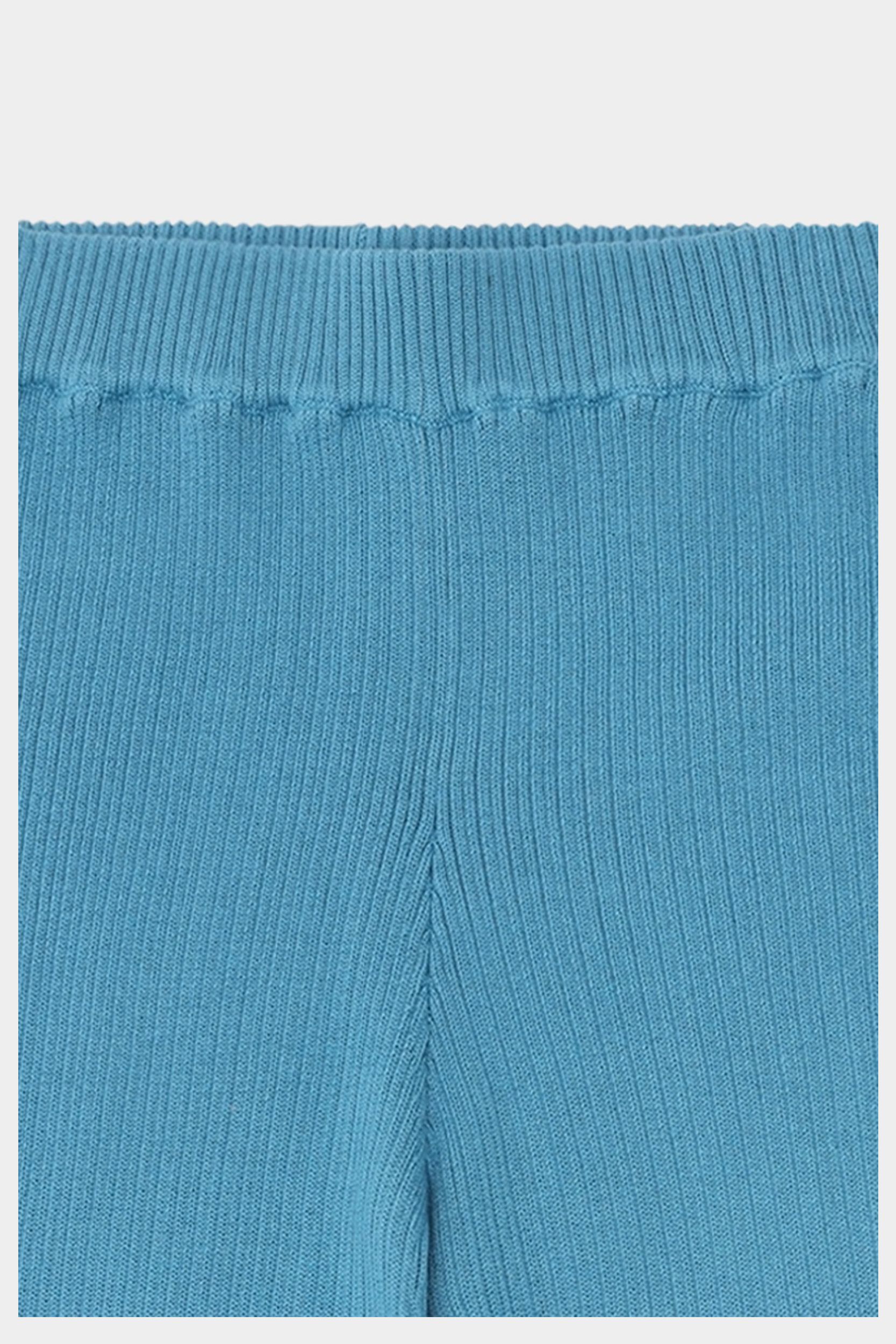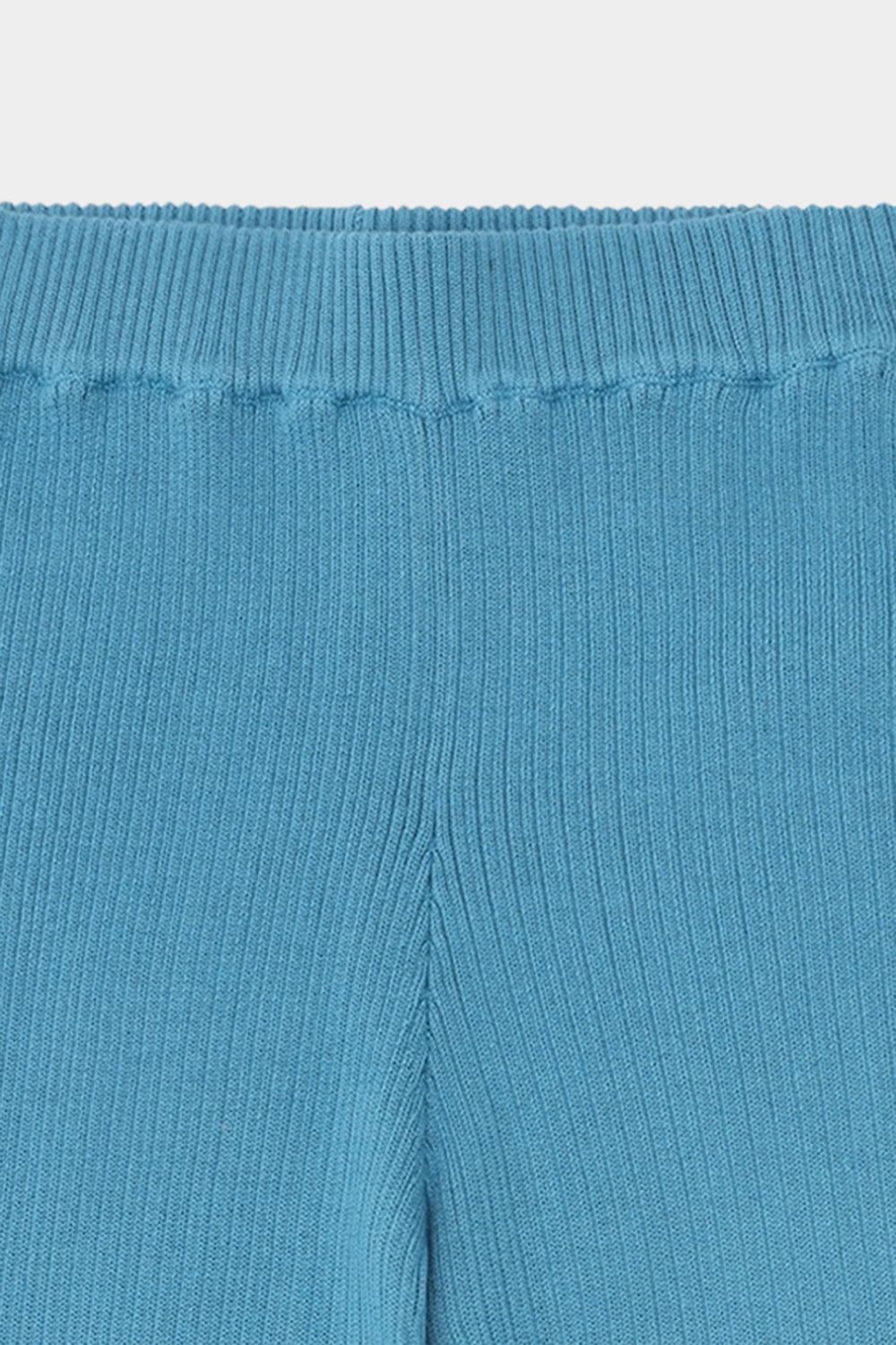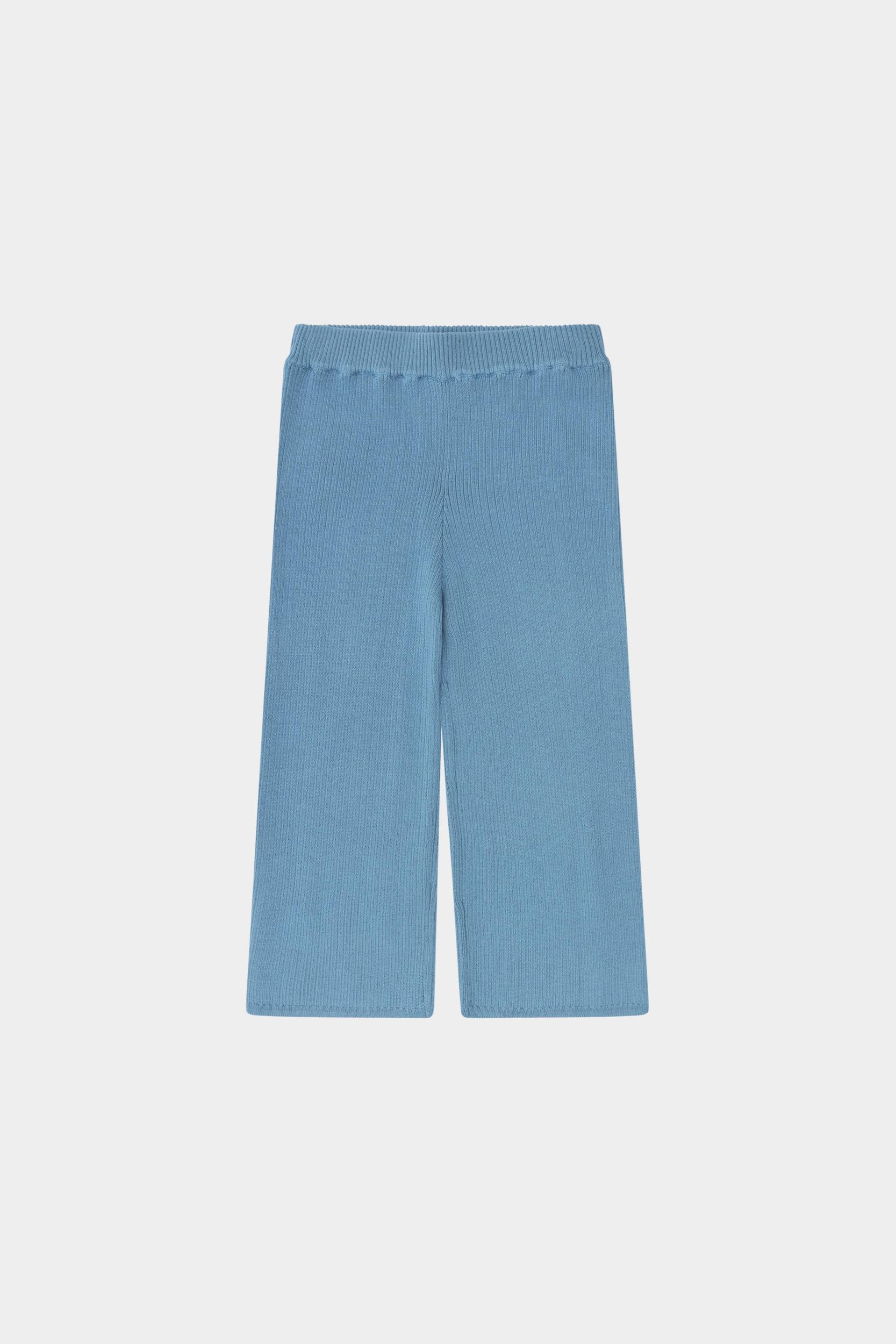 Disse bukser er strikket i en fast ribstruktur og har elastikkant i taljen, som sikrer en komfortabel pasform. De har en afslappet facon med lavt skridt og lige, brede ben. Bukserne er lavet af økologisk bomuld og er bløde og behagelige.