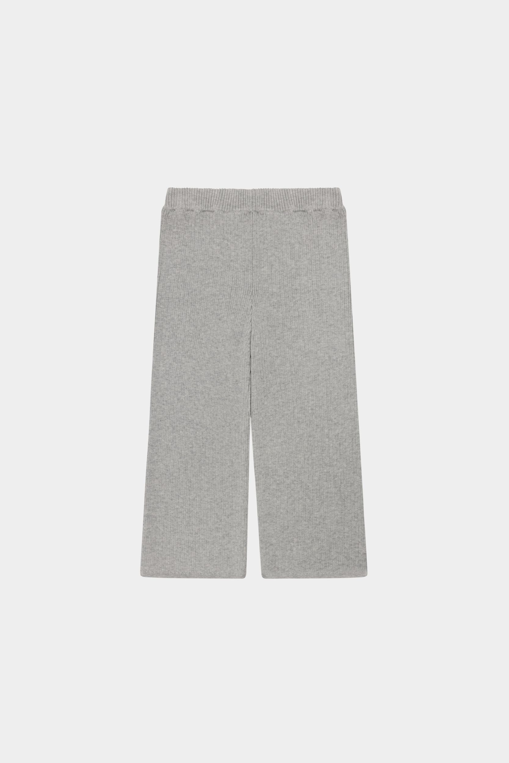 Disse bukser er strikket i en fast ribstruktur og har elastikkant i taljen, som sikrer en komfortabel pasform. De har en afslappet facon med lavt skridt og lige, brede ben. Bukserne er lavet af økologisk bomuld og er bløde og behagelige.