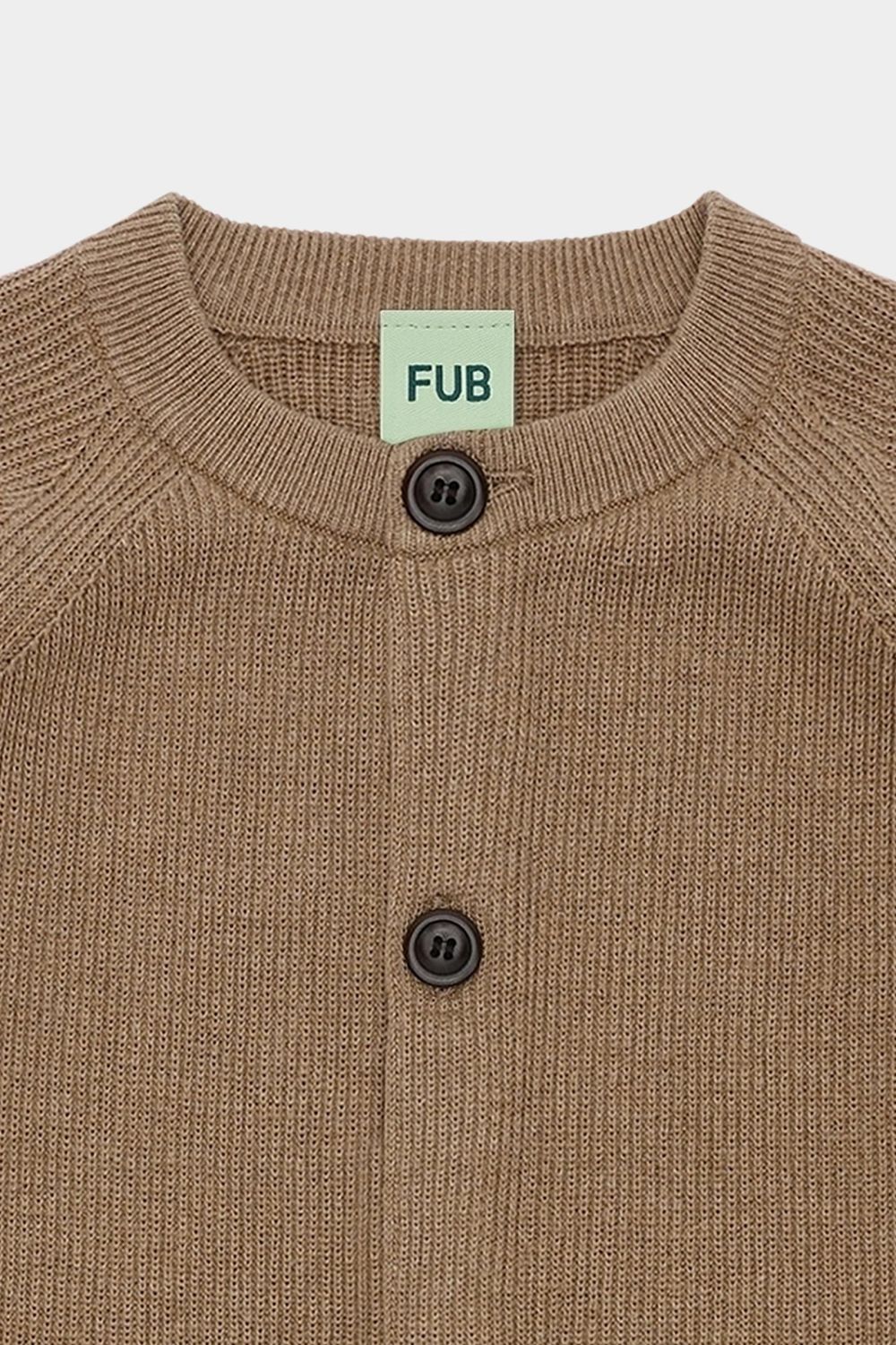 Denne cardigan er strikket i en klassisk ribstruktur og er designet med rund ribstrikket halskant, raglanærmer og en rummelig pasform. Cardiganen lukkes foran med knapper af corozonnød og er lavet af økologisk bomuld.
