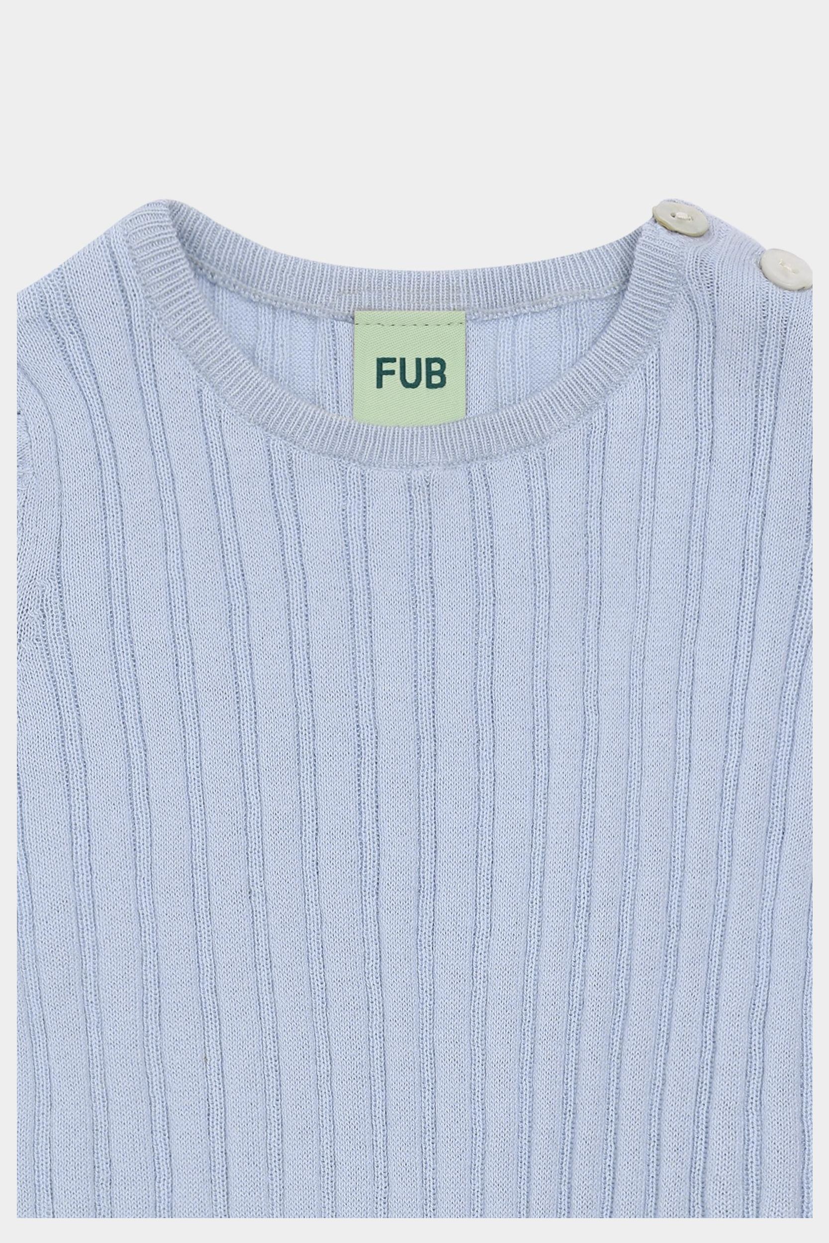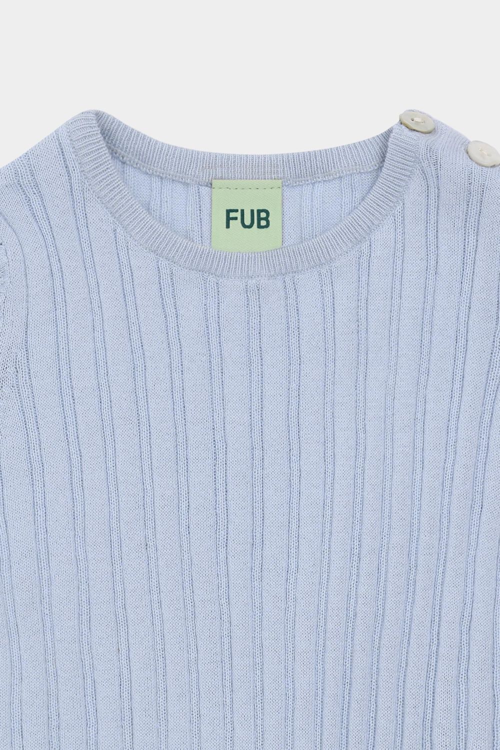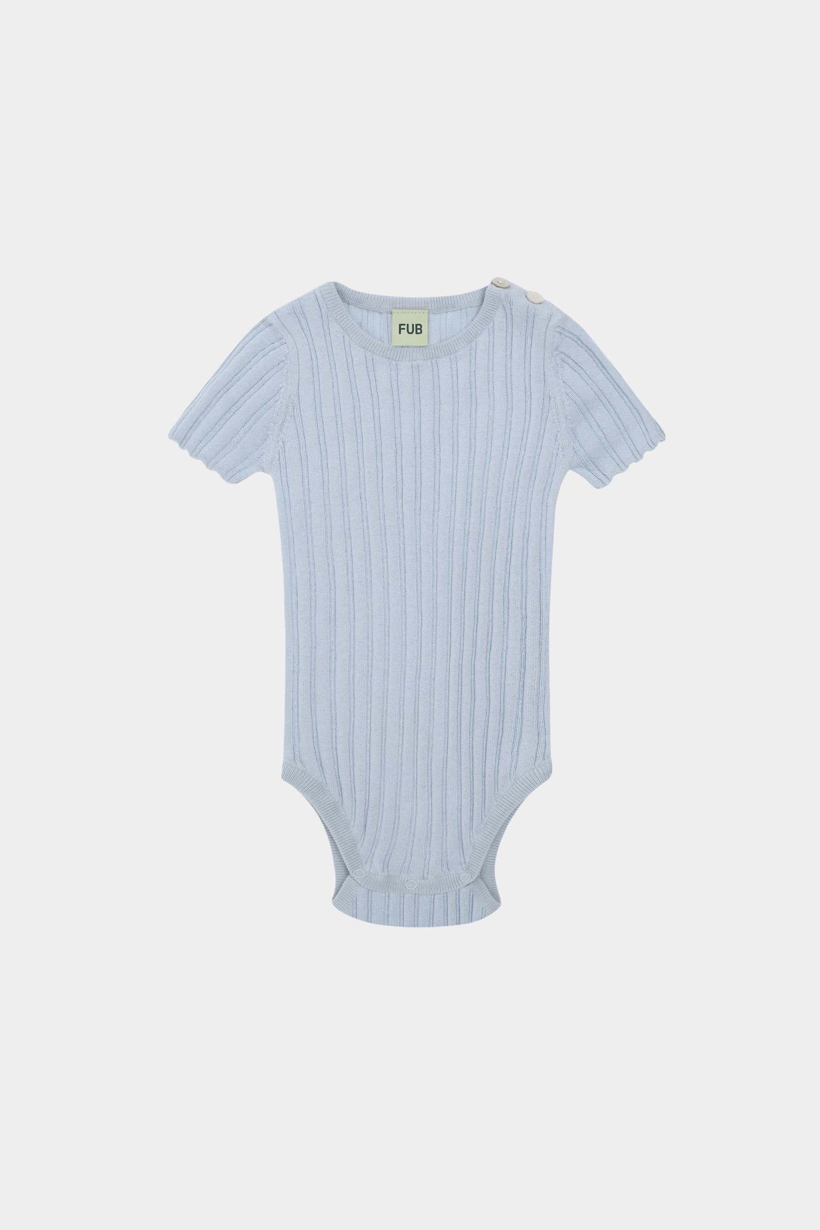 Denne bodystocking er strikket i en bred ribstruktur og har korte ærmer og rund hals. Bodyen har en praktisk lukning ved skulderen med perlemorsknapper og trykknapper forneden. Lavet af økologisk bomuld.