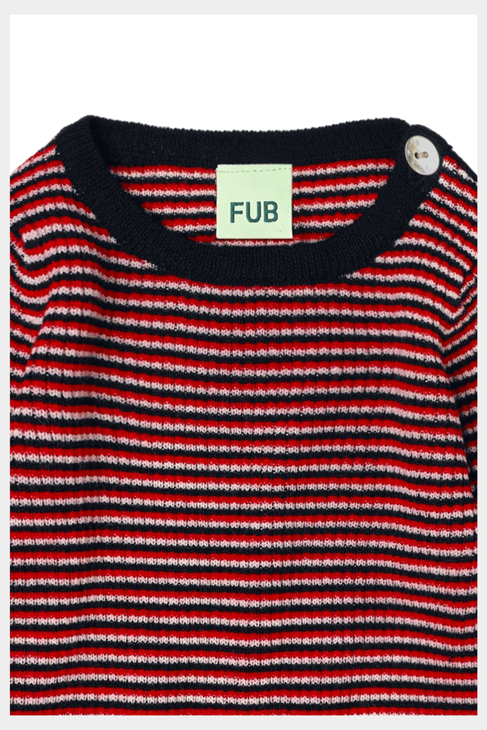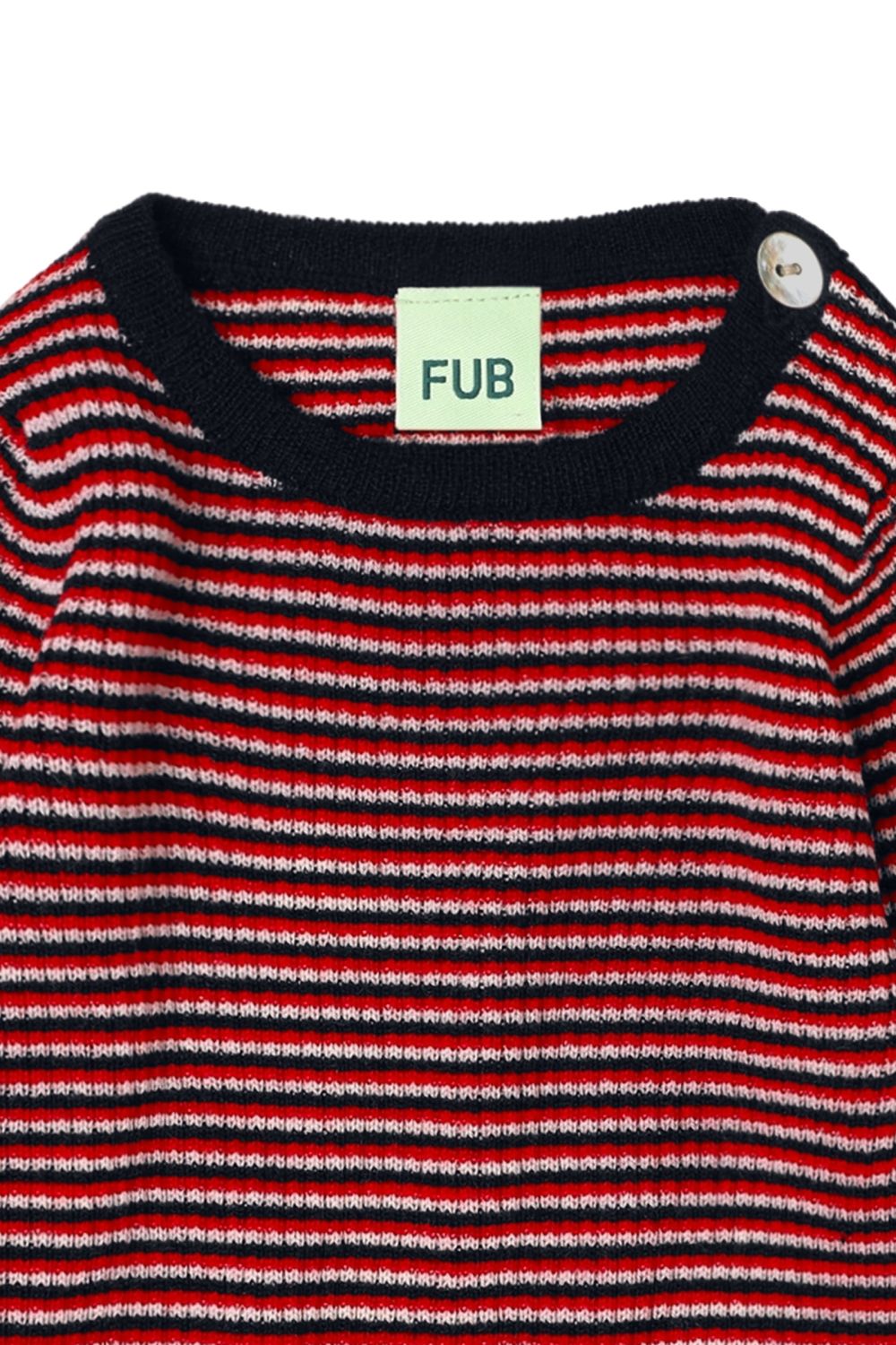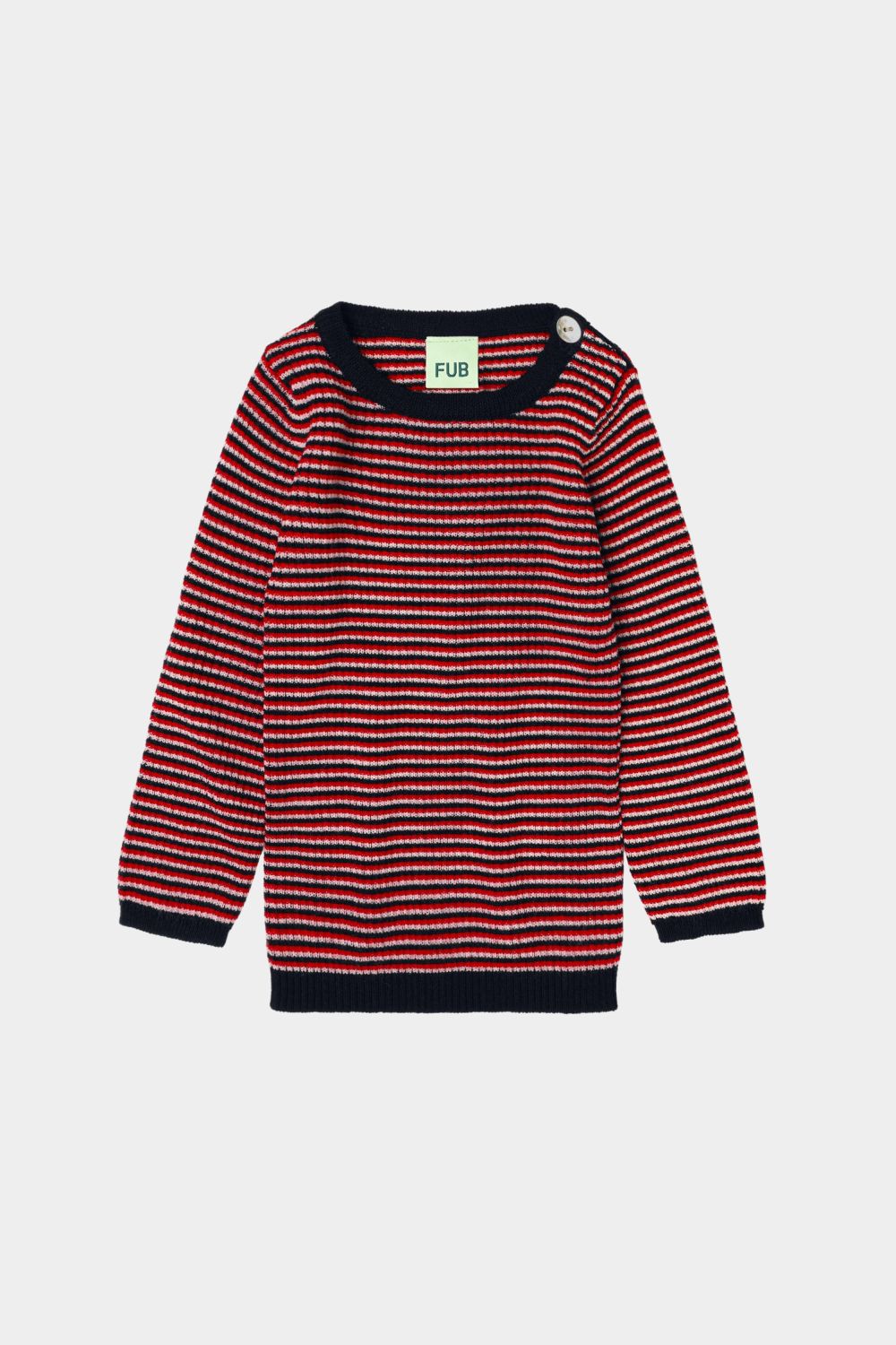 Denne langærmede babybluse, som er strikket i en klassisk ribstruktur, er en FUB klassiker. Blusen har en praktisk knaplukning på skulderen med perlemorsknapper. Den har en lige smal pasform og smalle ribkanter og er strikket i ekstrafin merinould. Vores merinould er BLUESIGN® og RWS certificeret, fri for skadelig kemi og stammer fra får, der ikke har været udsat for mulesing.