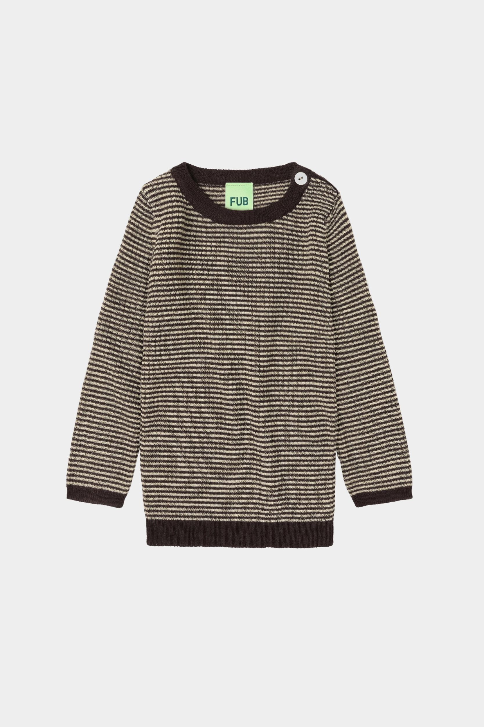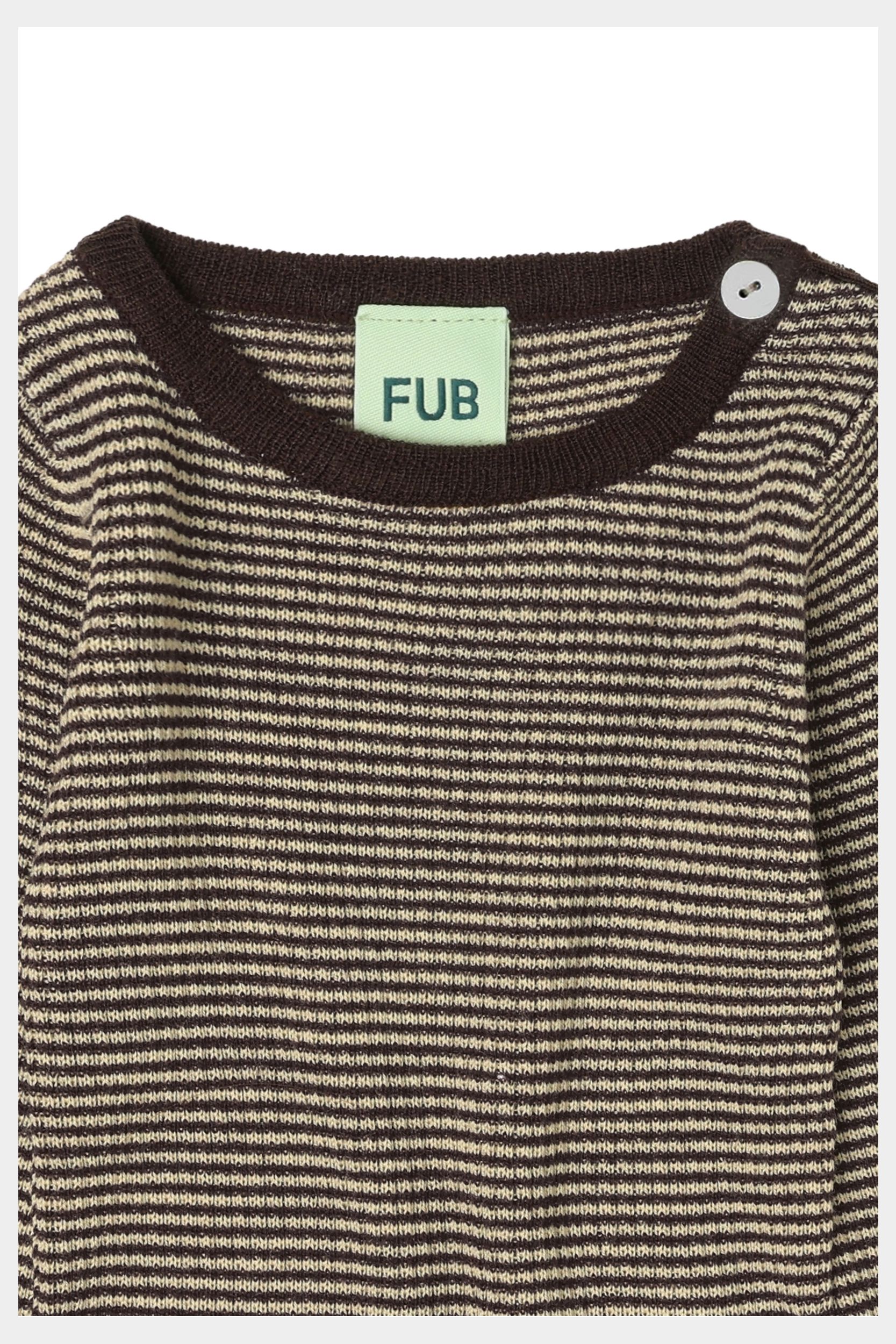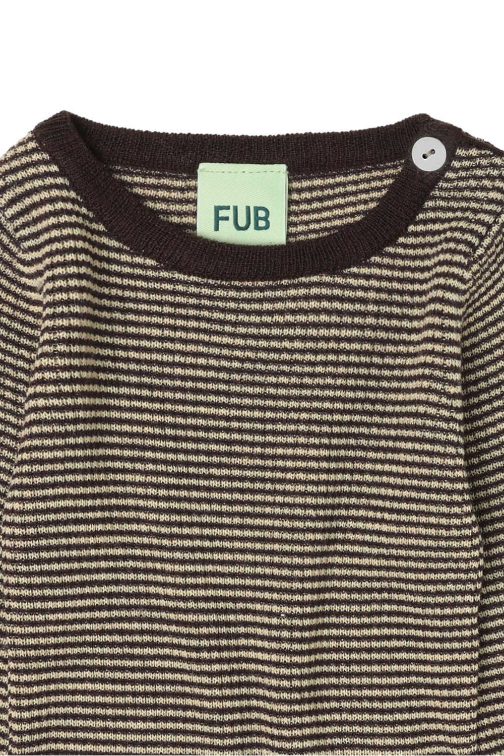 Denne langærmede babybluse, som er strikket i en klassisk ribstruktur, er en FUB klassiker. Blusen har en praktisk knaplukning på skulderen med perlemorsknapper. Den har en lige smal pasform og smalle ribkanter og er strikket i ekstrafin merinould. Vores merinould er BLUESIGN® og RWS certificeret, fri for skadelig kemi og stammer fra får, der ikke har været udsat for mulesing.