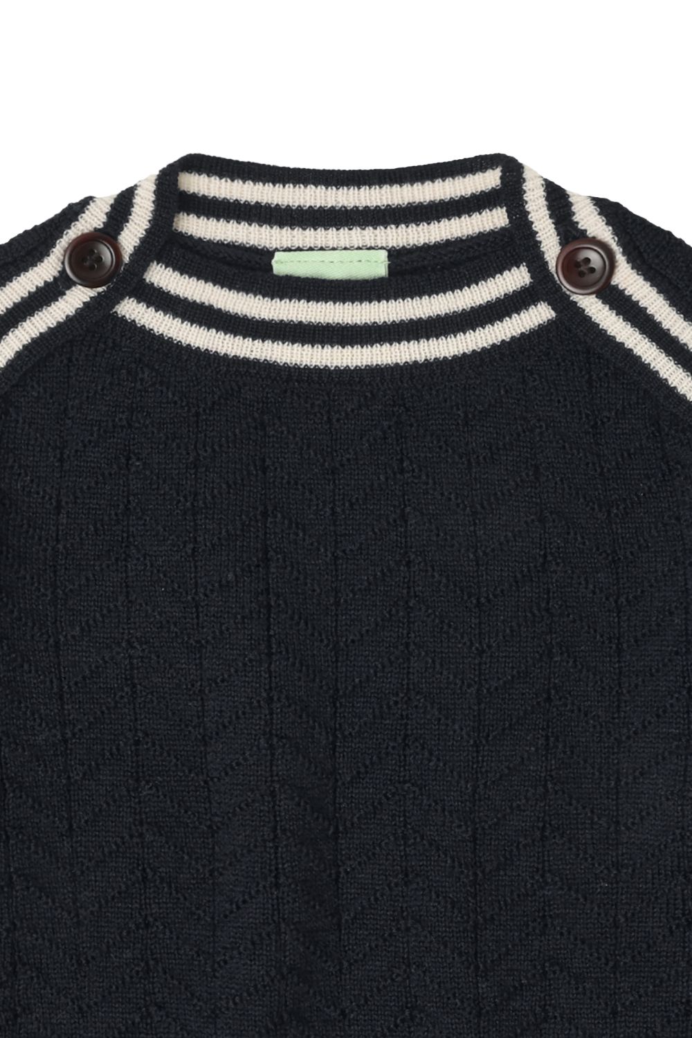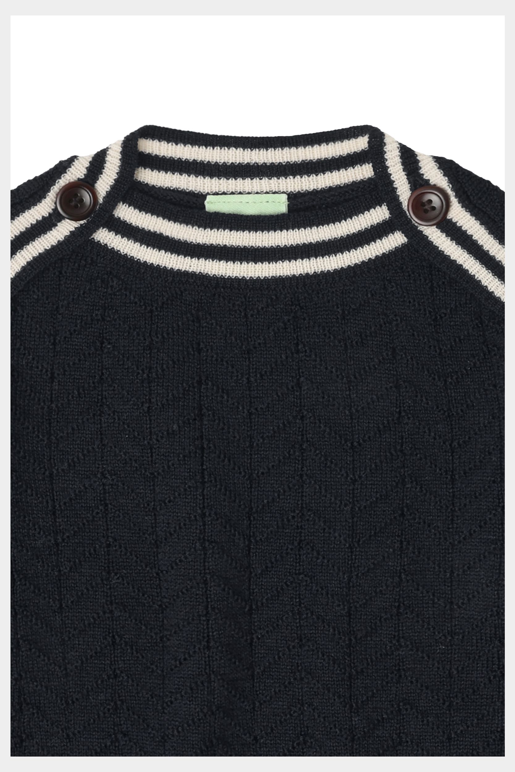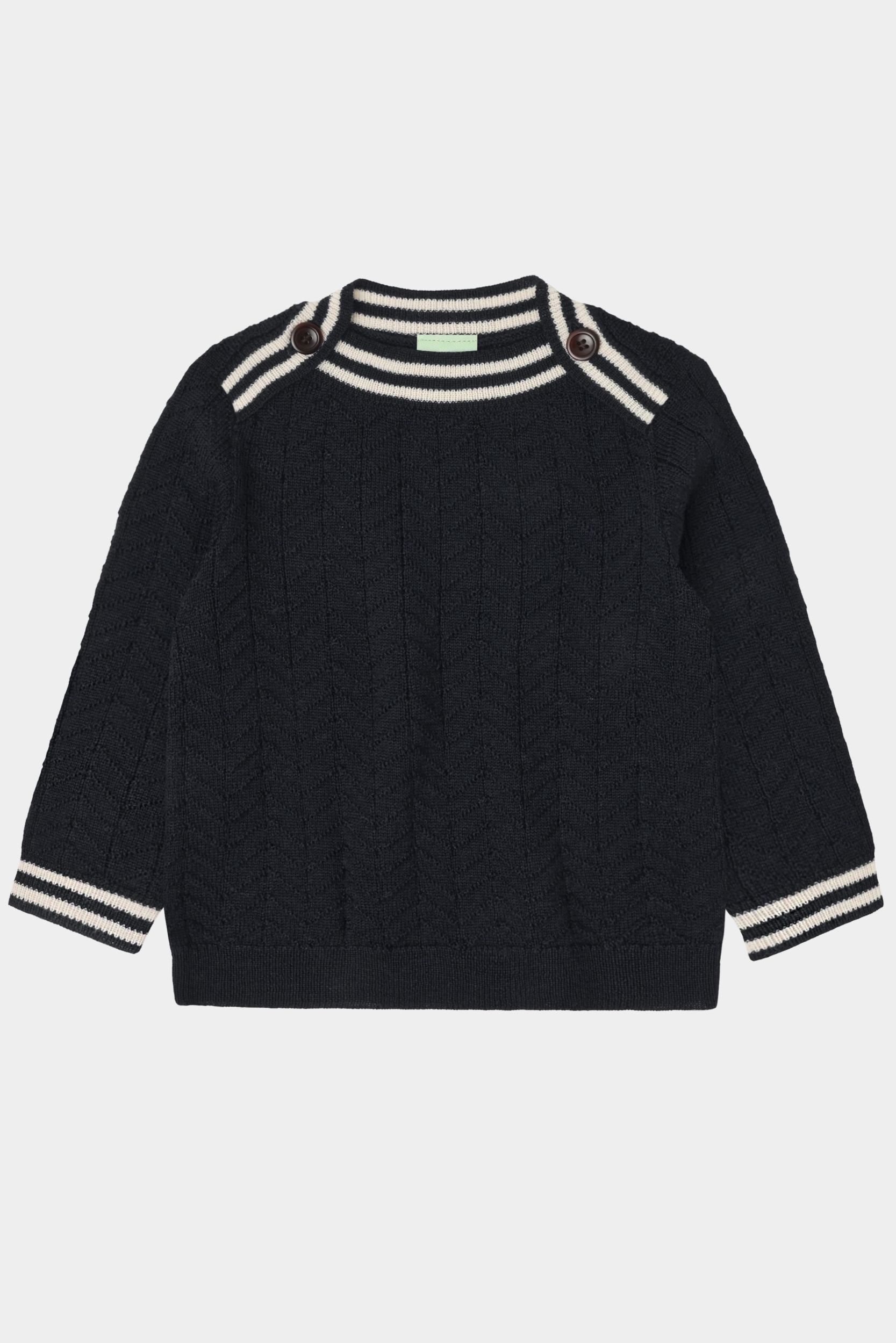 Denne bluse i ekstrafin merinould er strikket i et zigzag-mønster og har en almindelig pasform. Den har ribstrikket halsudskæring med en praktisk knaplukning med knapper af corozonød og ribstrikkede detaljer ved ærmekanterne og sømkanten forneden. Vores merinould er BLUESIGN® og RWS certificeret, fri for skadelig kemi og stammer fra får, der ikke har været udsat for mulesing.