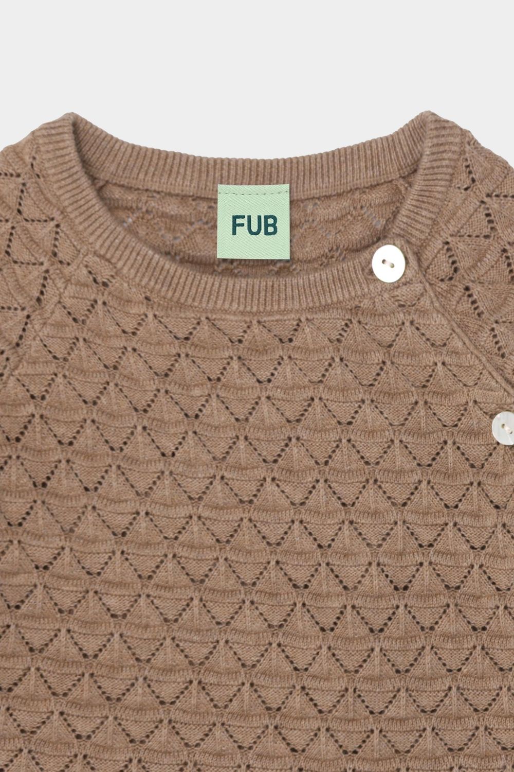 Denne cardigan er strikket i et grafisk pointellemønster og er designet med rund hals, en rummelig pasform og raglanærmer. Cardiganen har en asymmetrisk lukning med perlemorsknapper og er lavet af økologisk bomuld.