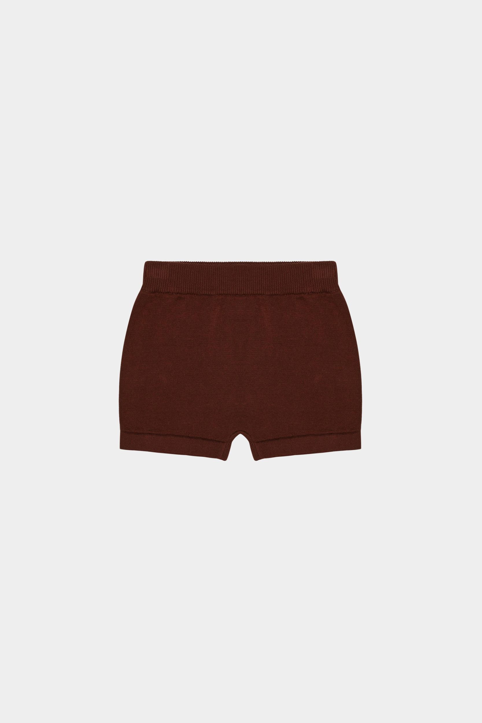 Disse babyshorts er strikket i let single jersey og har elastikkant i taljen, som sikrer en komfortabel pasform. De er bløde og behagelige og har en afslappet pasform med lige ben og ombukkede kanter. Shortsene er lavet af økologisk bomuld.