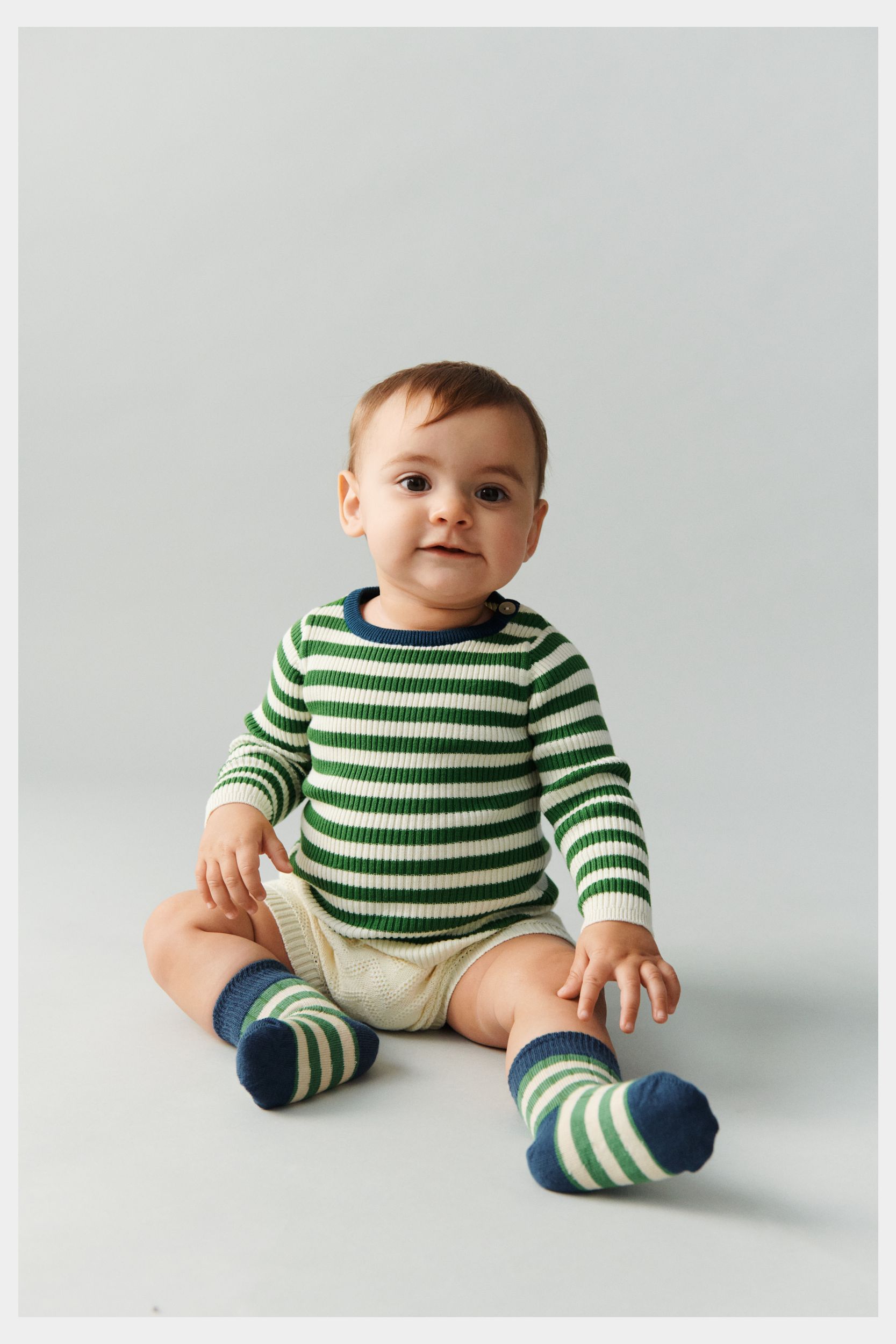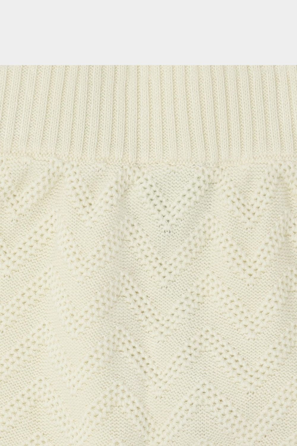 Disse babyshorts er strikket i en grafisk zigzag pointellestruktur og har elastikkant i taljen, som sikrer en komfortabel pasform. De er bløde og behagelige og har en afslappet pasform med lavt skridt og 2x2 ribkanter ved talje og benkant. Shortsene er lavet af økologisk bomuld.