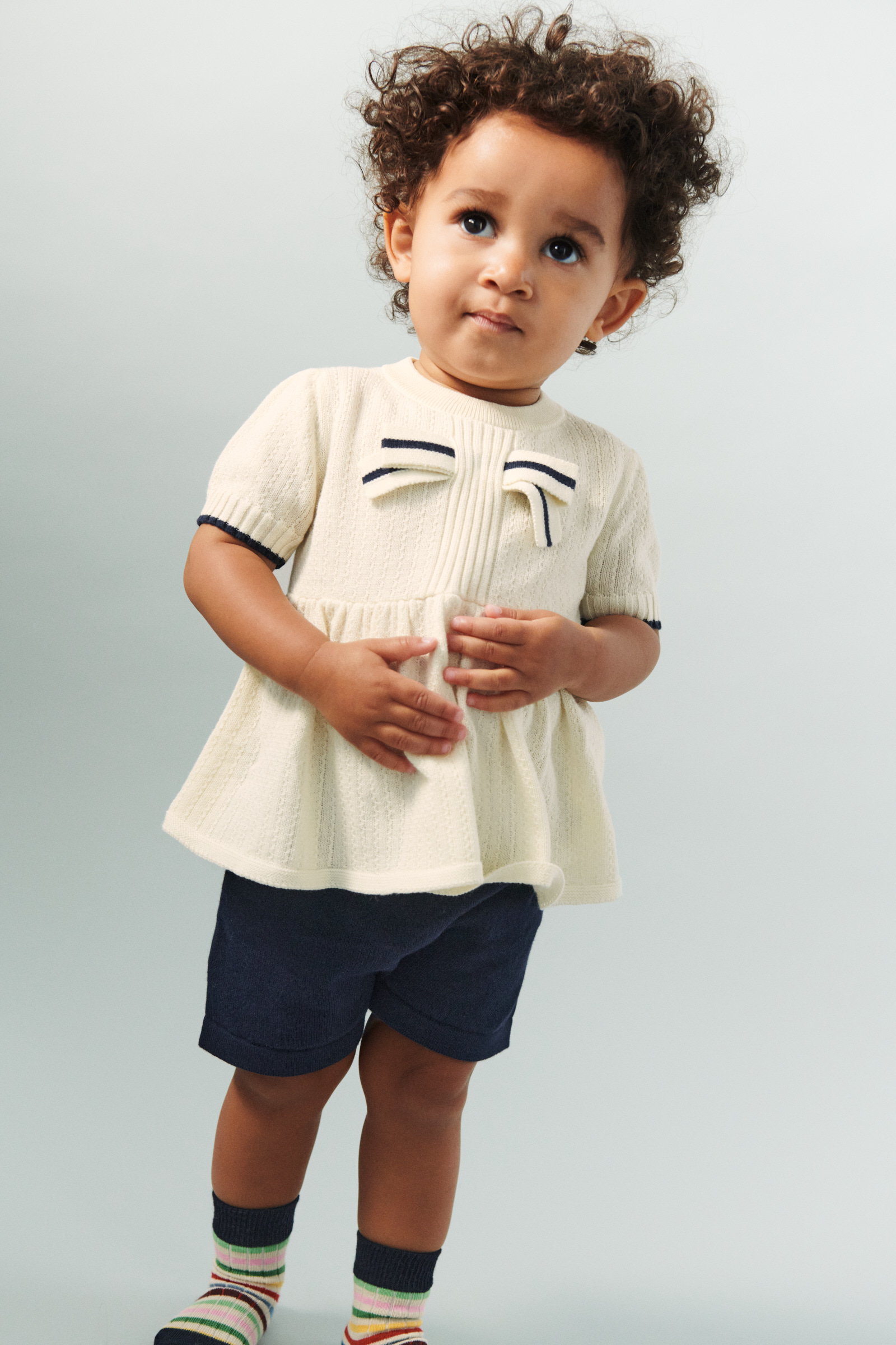 Shorts og selebukser fra FUB Baby er fremstillet i let, GOTS-certificeret bomuld og designet til bevægelse og leg. Elastiske taljer, justerbare seler og bløde strikkede kvaliteter sikrer en god pasform hele dagen. Udtrykket er klassisk med striber, melange og strukturer, der nemt kan kombineres med kollektionens overdele.