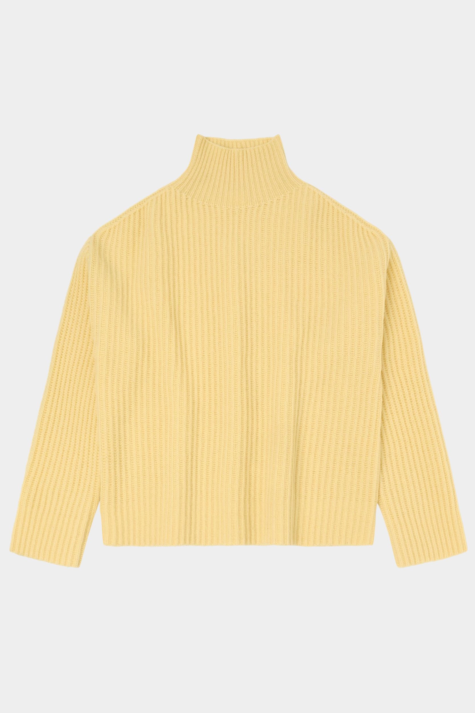 This sweater is knitted in a thick rib structure and has a loose fit. It features a high neckline and dropped shoulders and is made from classic, slightly hairy lambswool. Our lambswool is free from harmful chemicals and source from non-mulesed sheep.