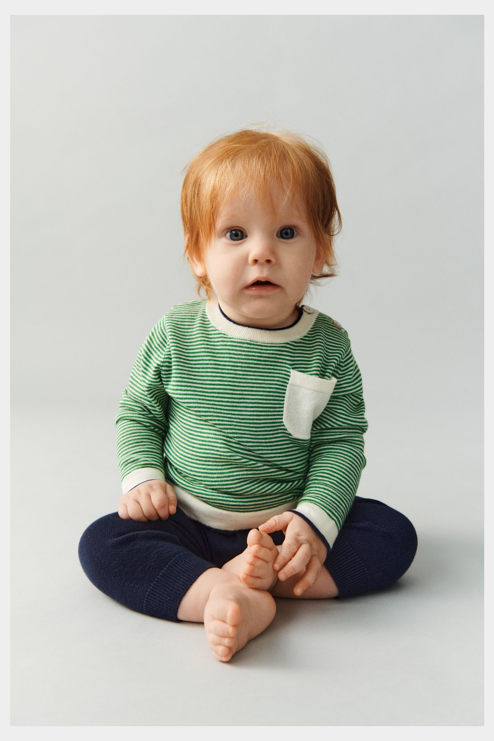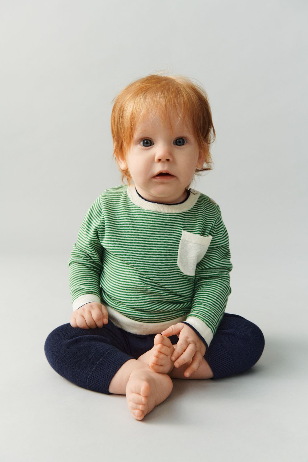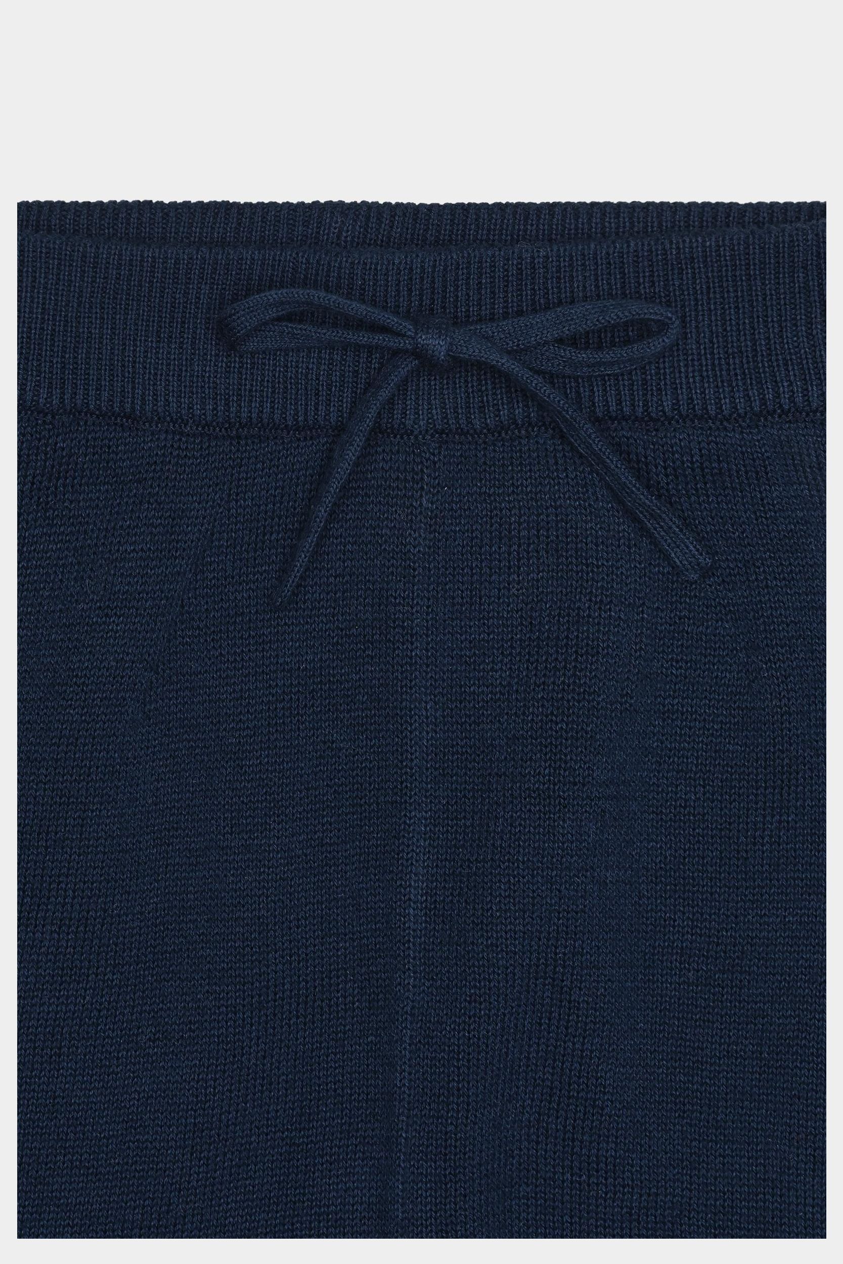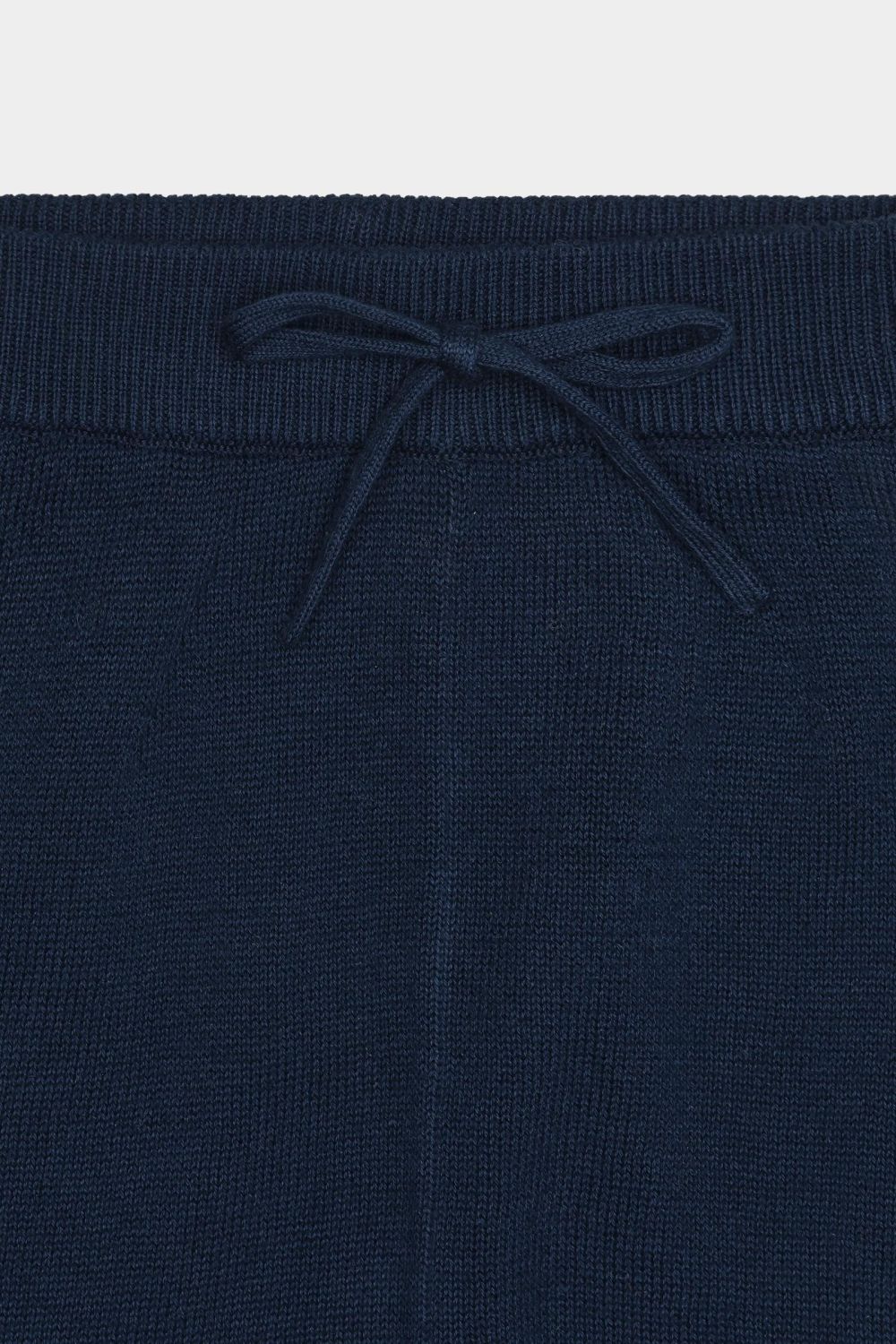 Cut with a loose fit, low crotch, and straight legs with rib cuffs, these baby pants feature a decorative drawstring bow and a ribbed elasticated waistband that ensures a comfortable and adjustable fit. The pants are made from organic cotton and are knitted in a soft single jersey.